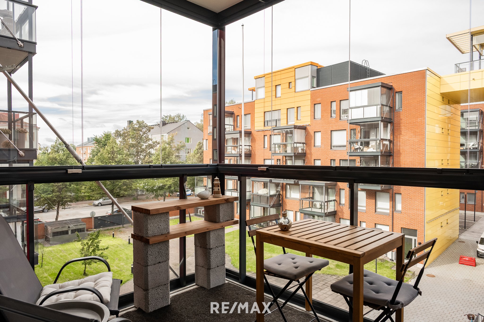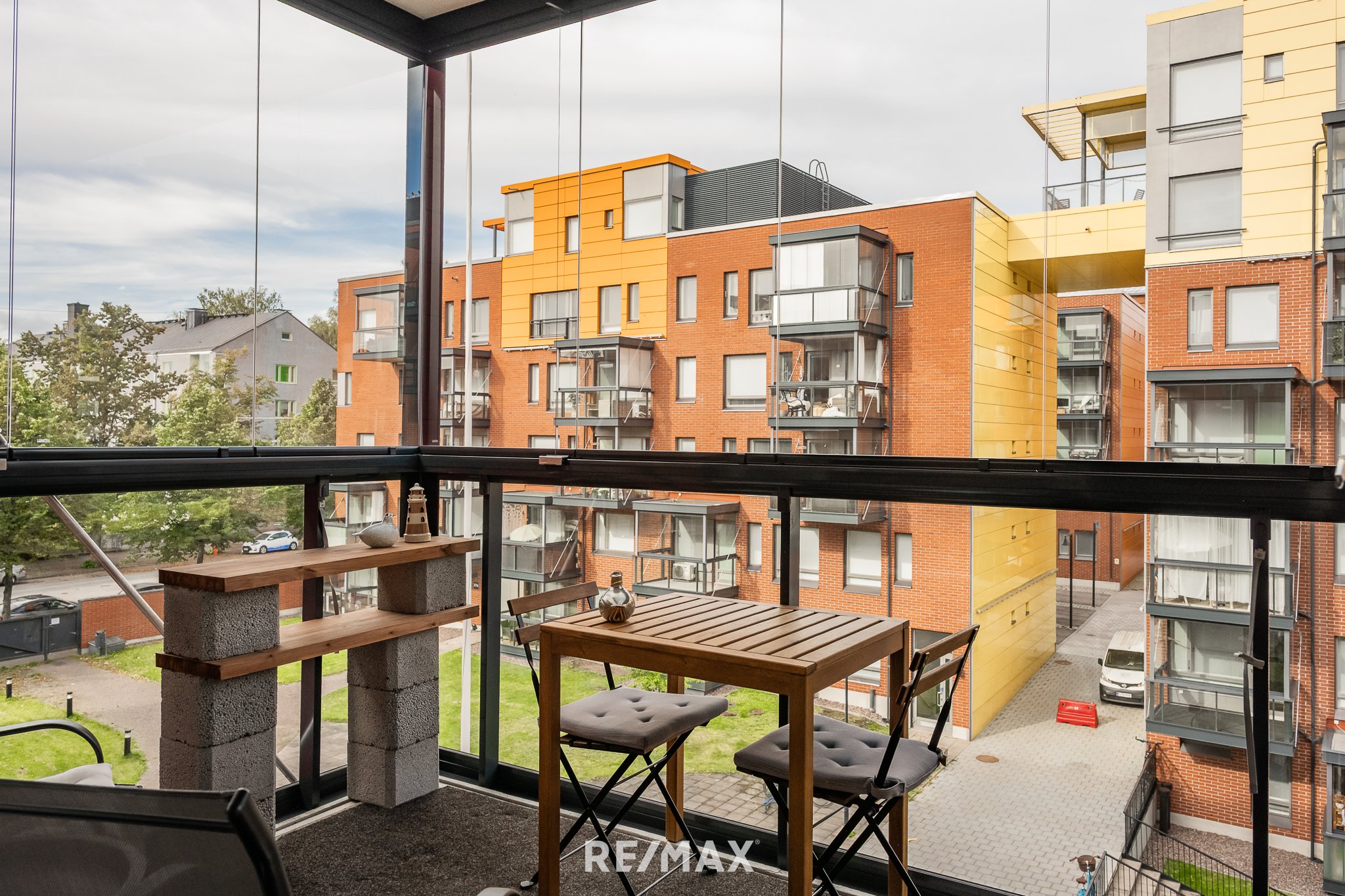 Asunto on hyvässä kunnossa ja sen tilava, lasitettu parveke avautuu rauhalliselle sisäpihalle.