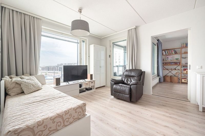 Valoisa ja tilava kolmio Jätkäsaaressa tarjoaa upeat merinäköalat ja modernia asumismukavuutta. Tämä 69 neliömetrin asunto sijaitsee vuonna 2017 valmistuneen talon neljännessä kerroksessa, ja se on loistava valinta perheelle, joka arvostaa kaupunkiasumisen helppoutta ja mukavuutta.