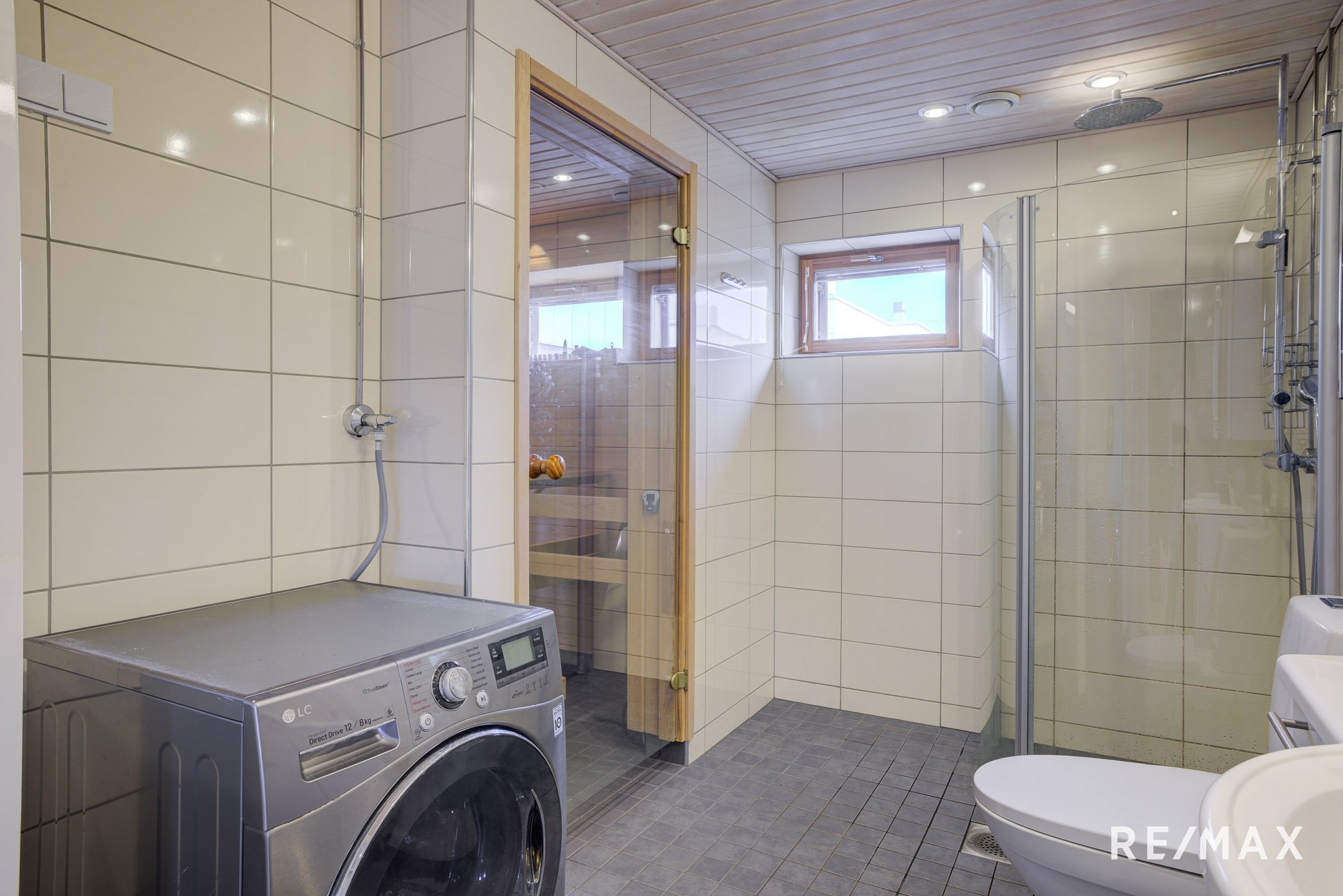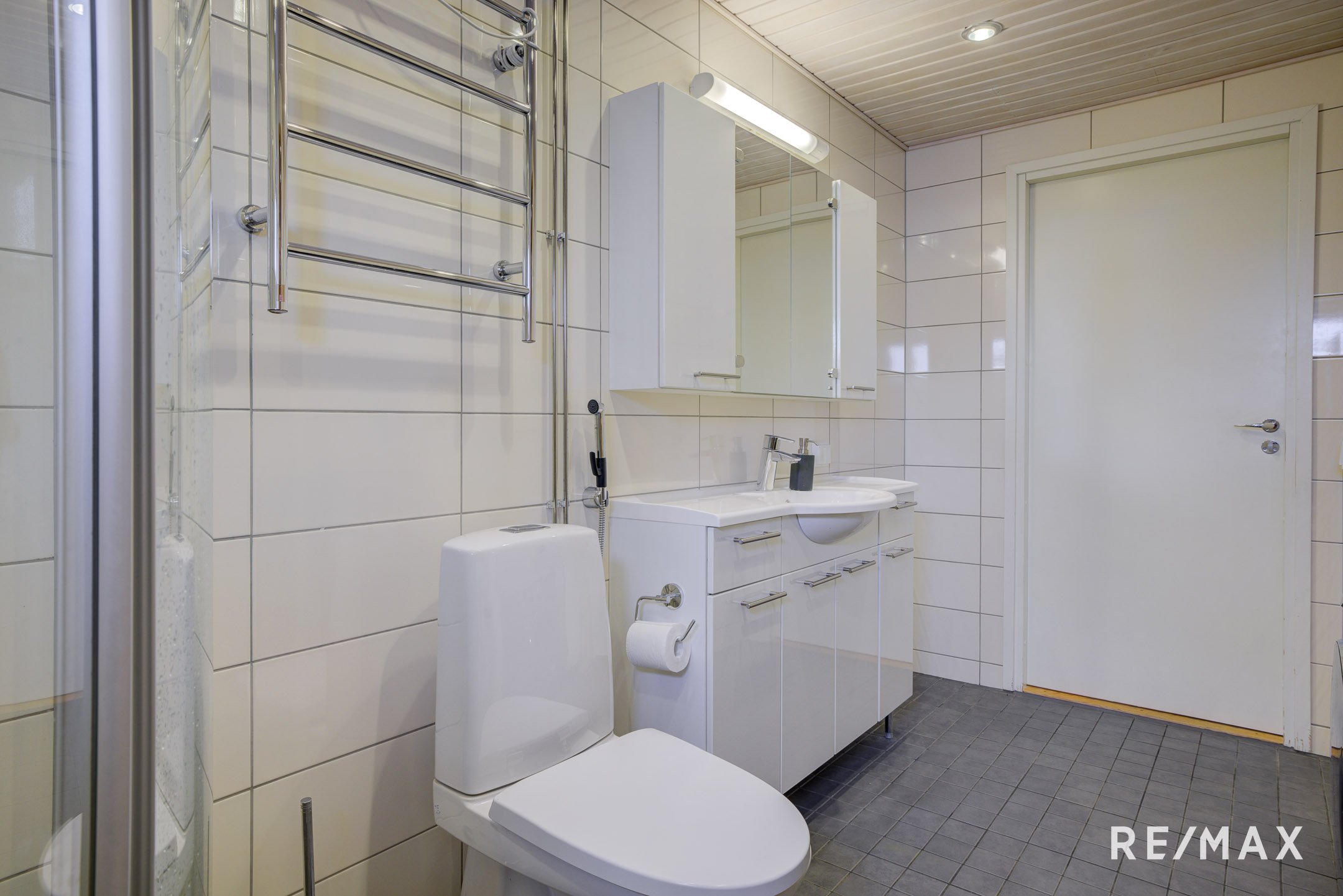 *Kylpyhuone on tilava sekä se on varustettu myös wc:llä ja kodinhoitotilalla.
