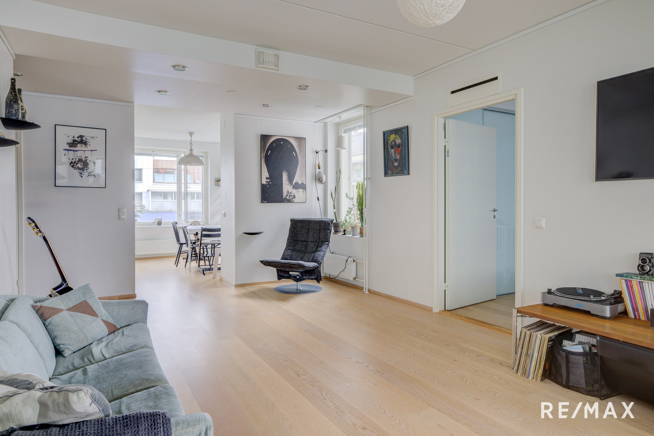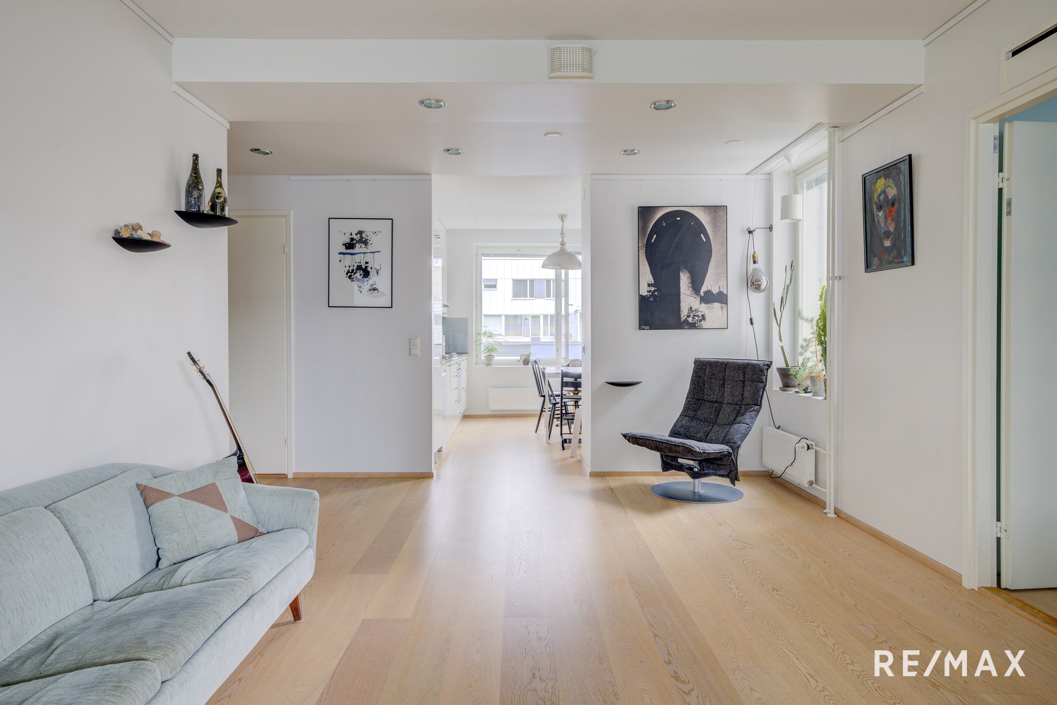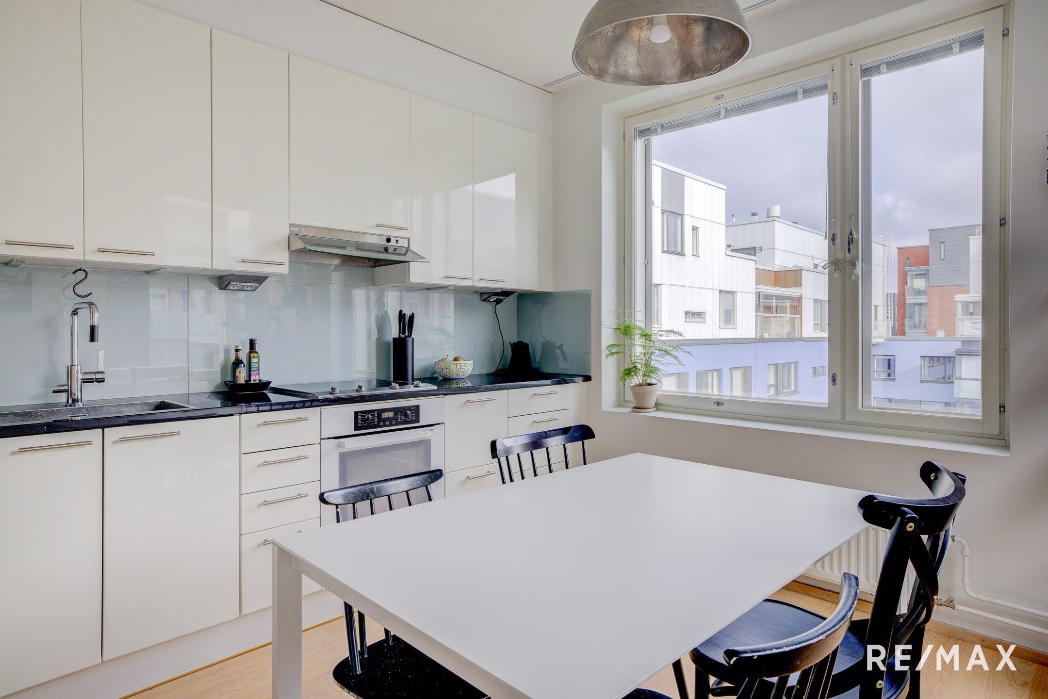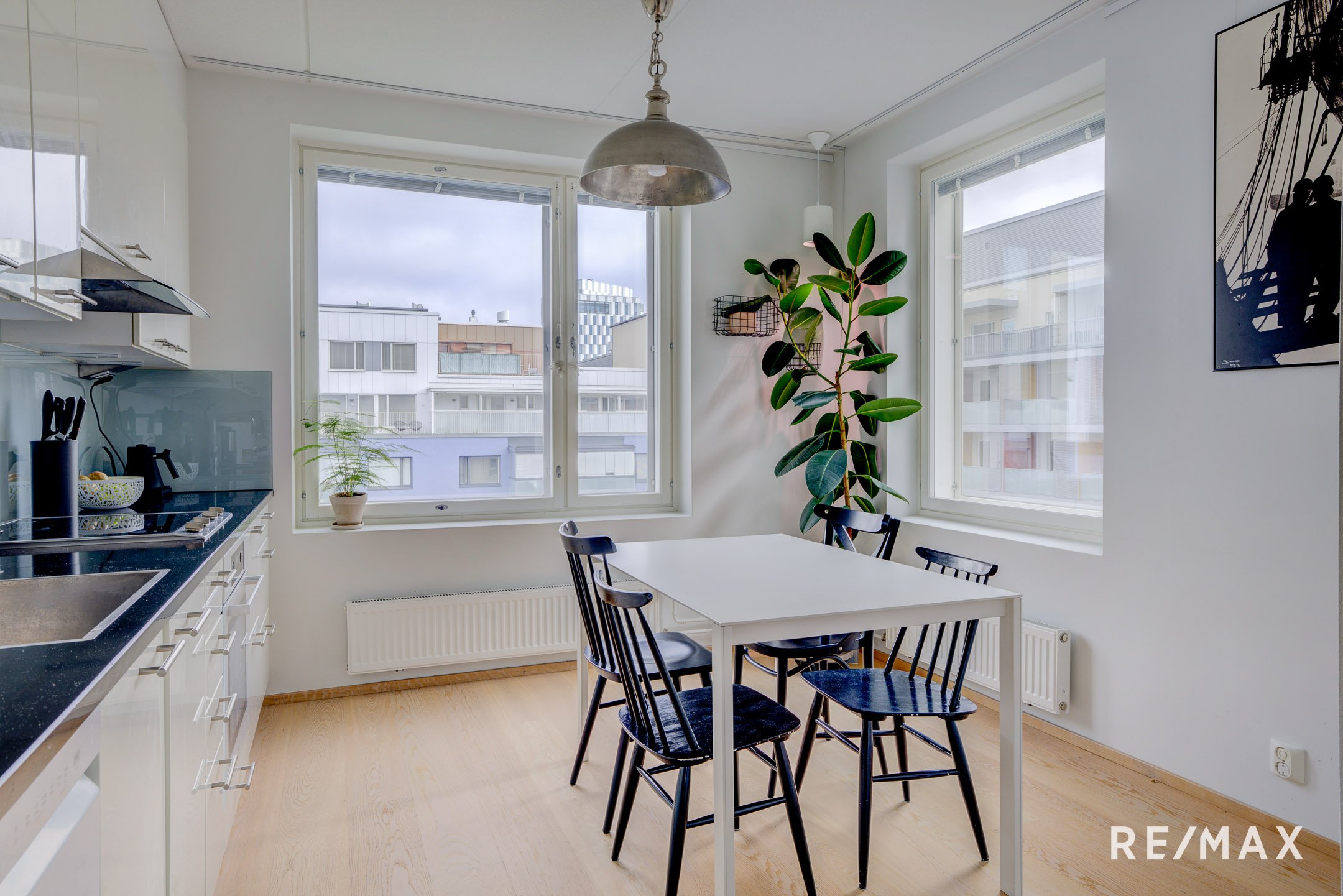 Tervetuloa tutustumaan tähän hissitalon 6/8 kerroksen avaraan ja hyväkuntoiseen 87 m2:n läpitalon huoneistoon merellisellä Jätkäsaaren asuinalueella!