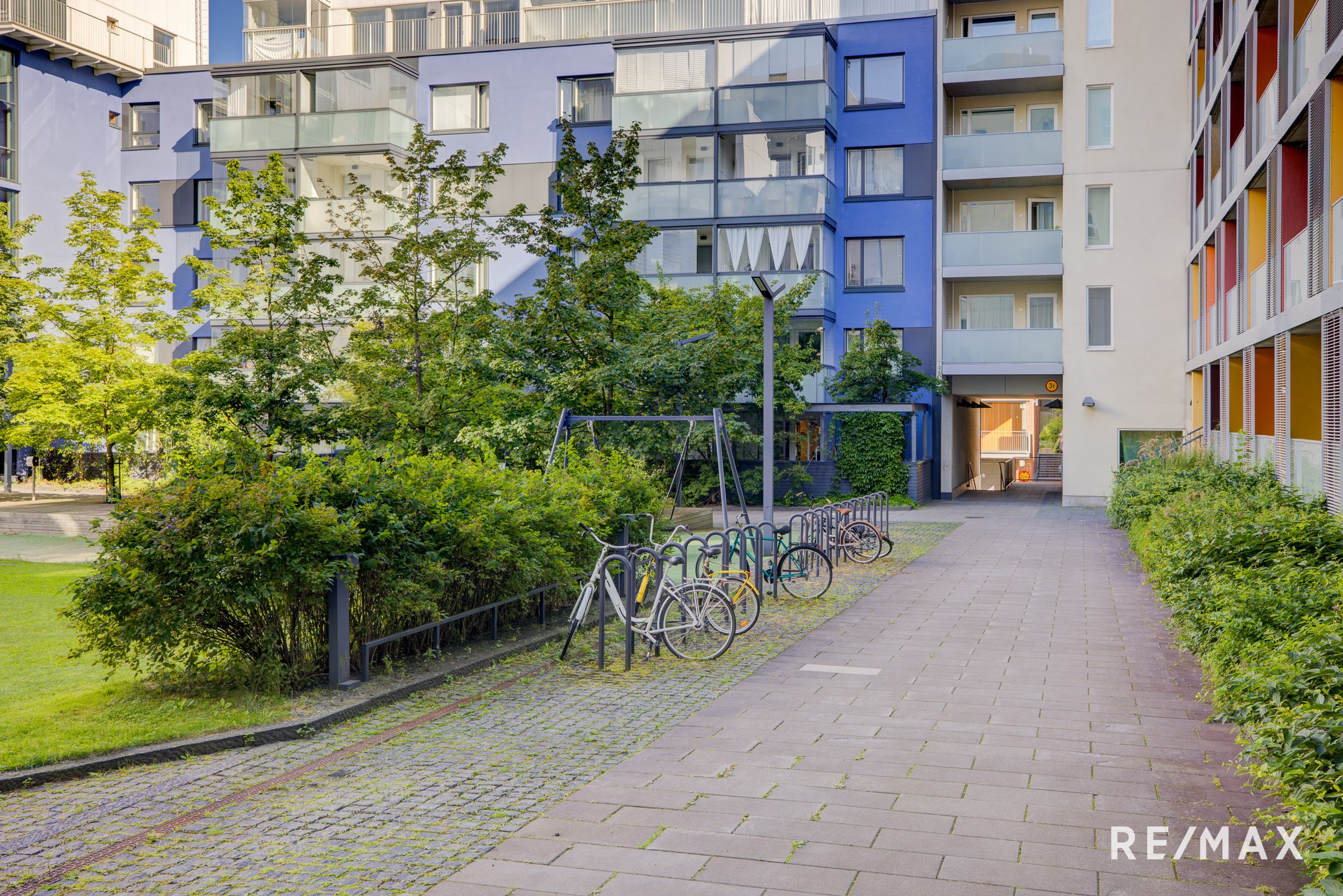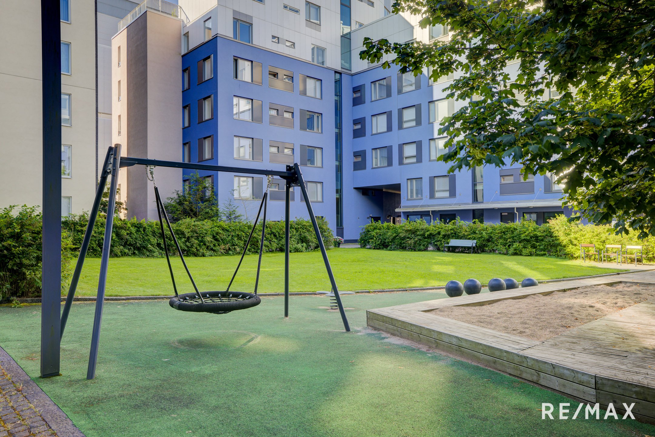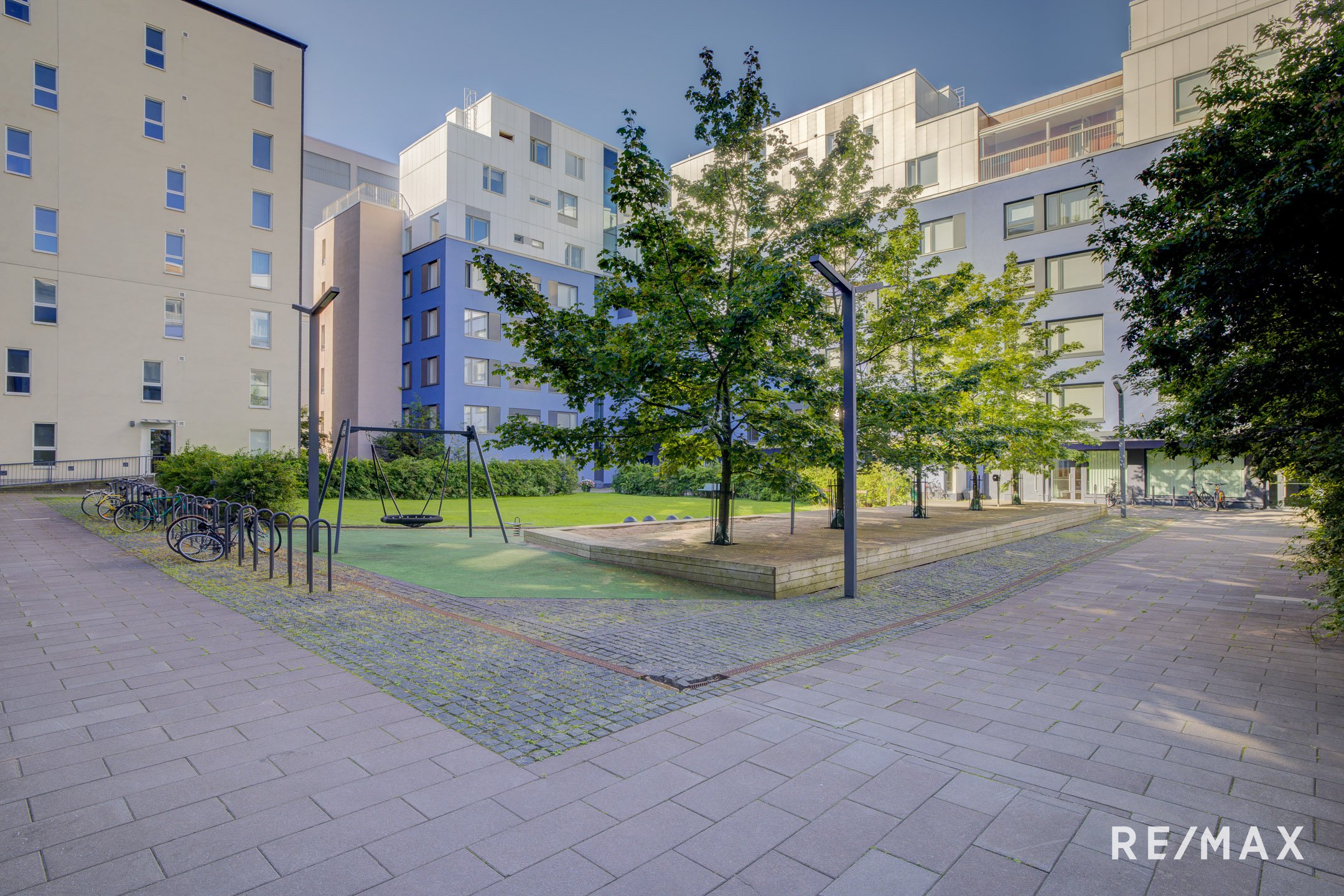 Yhtiöllä on myös yhdessä viereisten yhtiöiden kanssa puistomainen, viihtyisä ja suojaisa korttelipiha-alue, jossa on kivat leikkimahdollisuudet perheen pienimmille.