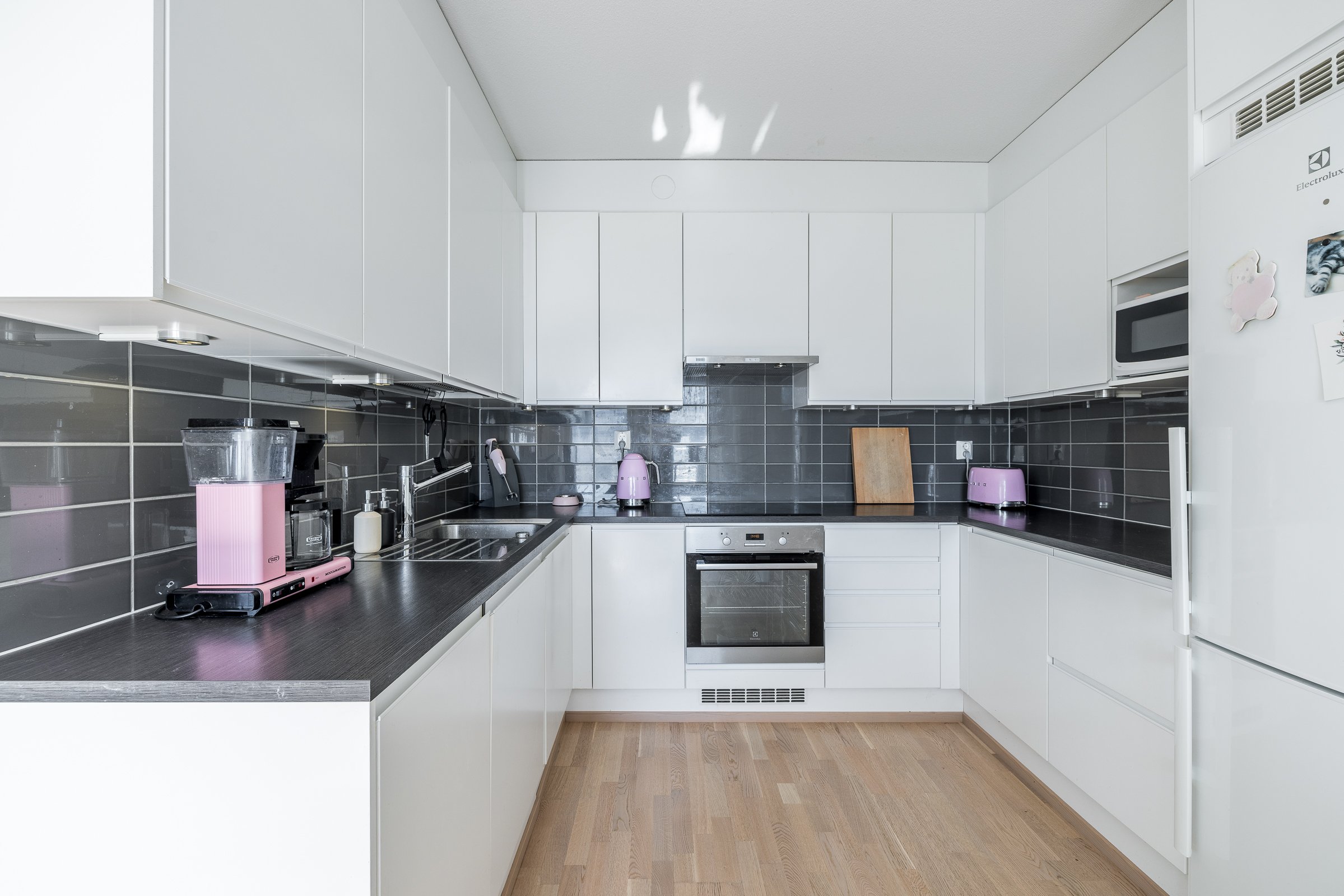 Kalasatama on nopeasti kehittyvä alue, jossa palvelut ovat kävelyetäisyydellä. Lähistöllä sijaitseva kauppakeskus REDI tarjoaa yli 200 liikettä ja ravintolaa. Liikkuminen on vaivatonta: metro, raitiovaunu ja kattavat pyöräilyreitit ovat lähellä, ja merelliset ulkoilualueet, kuten Mustikkamaa, sijaitsevat aivan nurkan takana. Tämä koti tarjoaa modernia asumista keskeisellä sijainnilla, yhdistäen kaupungin palvelut ja merellisen ympäristön parhaat puolet.