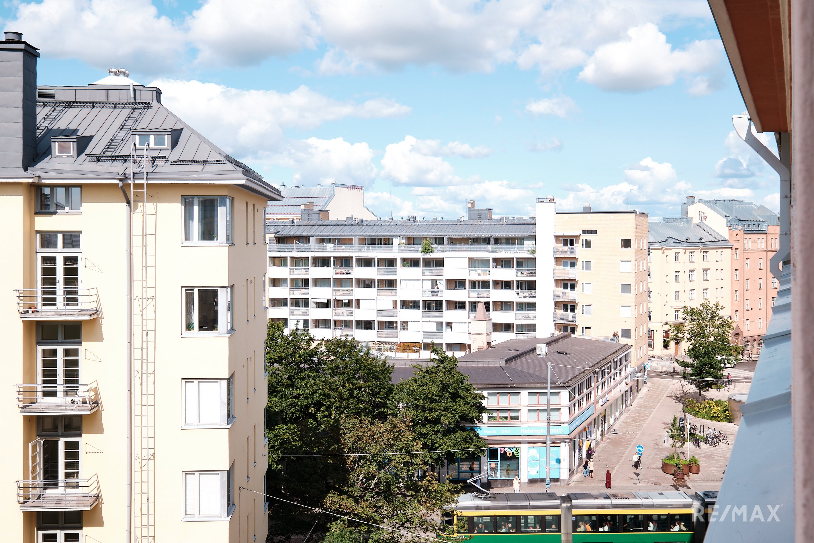 Ylimmän, 6/6 kerroksen valoisa kaksio Torkkelinmäen kupeessa.