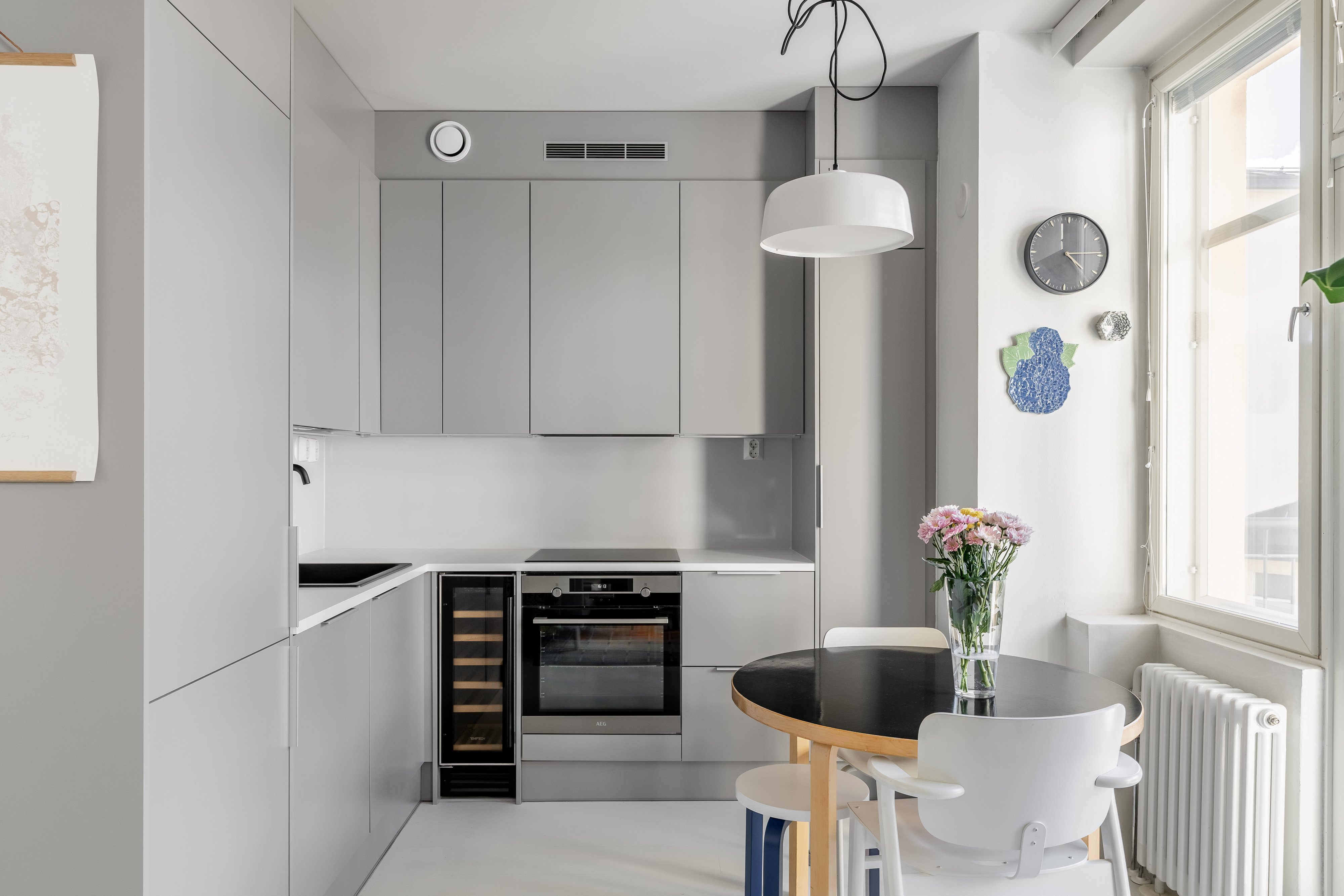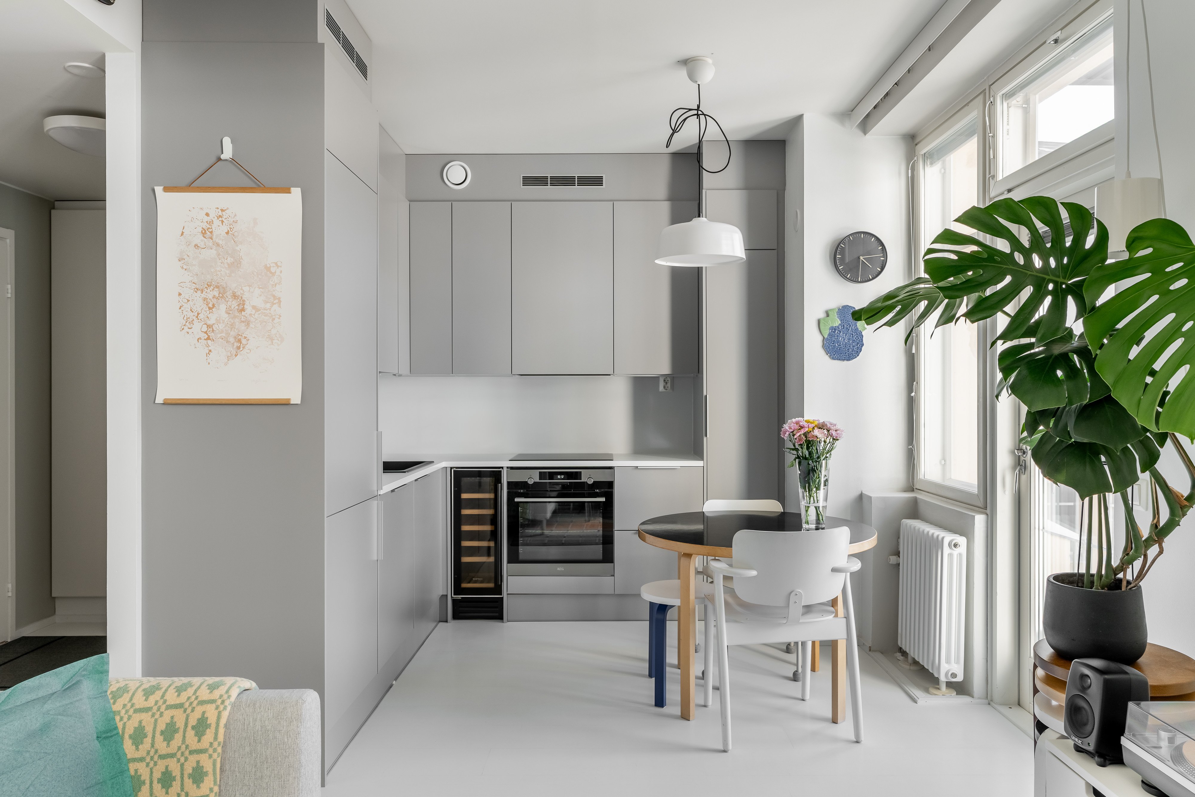 Tilava kylpyhuone, pienen huoneen kokoinen alkovi, Puustellin avokeittiö sekä oma sisäpihalle avautuva parveke tarjoavat asumiseen viihtyisät ja käytännölliset puitteet. Hyväkuntoisessa asunnossa on kaikki tarpeellinen käytännönläheiseen asumiseen. Järkevästi suunniteltu asunto kylpee luonnonvalossa, ja tilaan nähden avarassa keittiössä on aidosti puitteet viihtyä myös ruoanlaiton parissa.