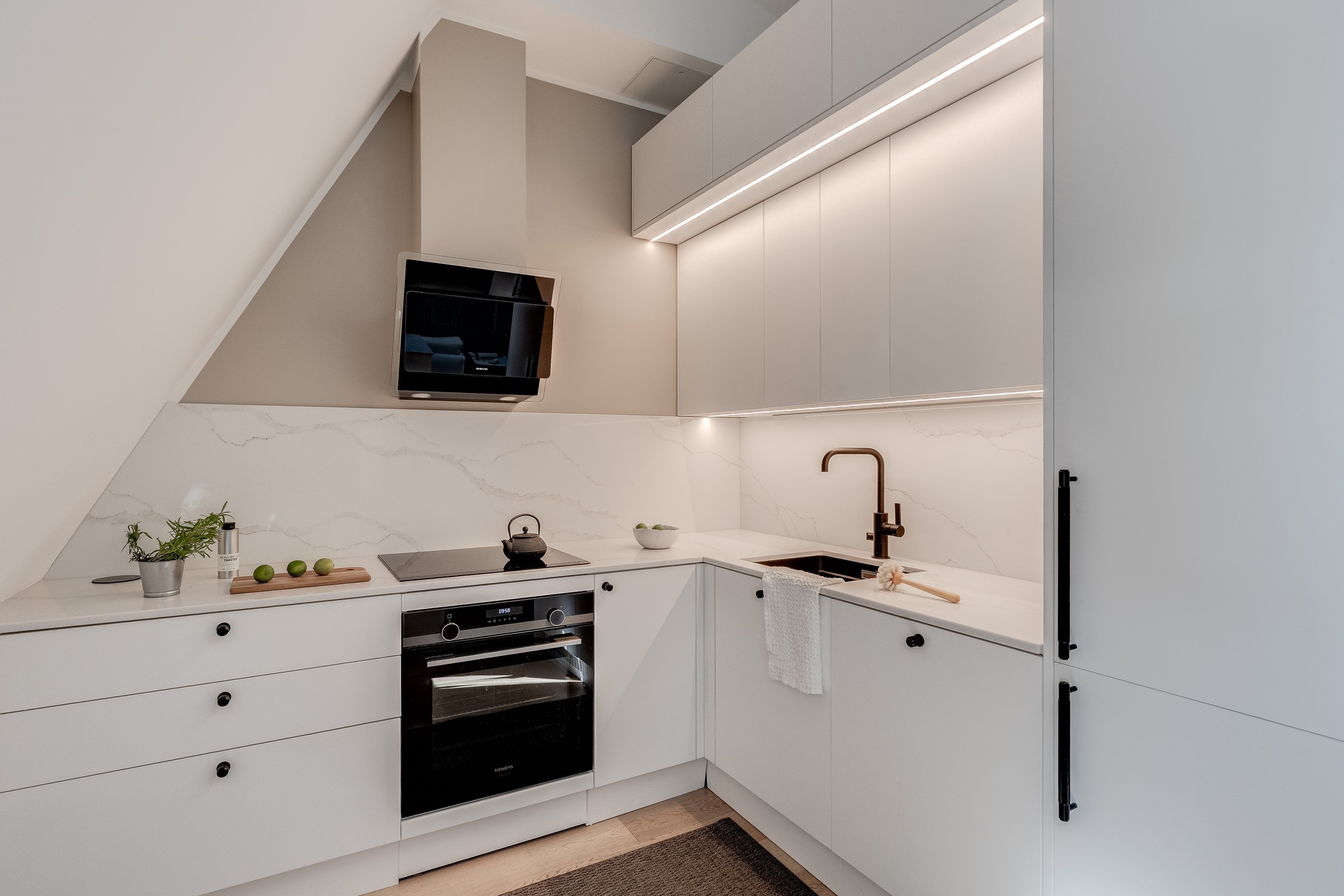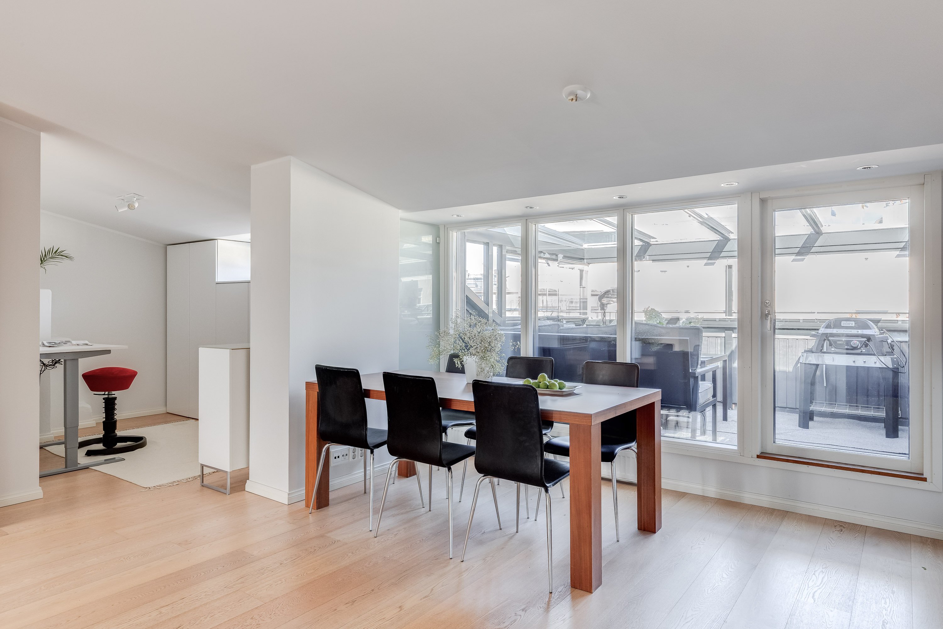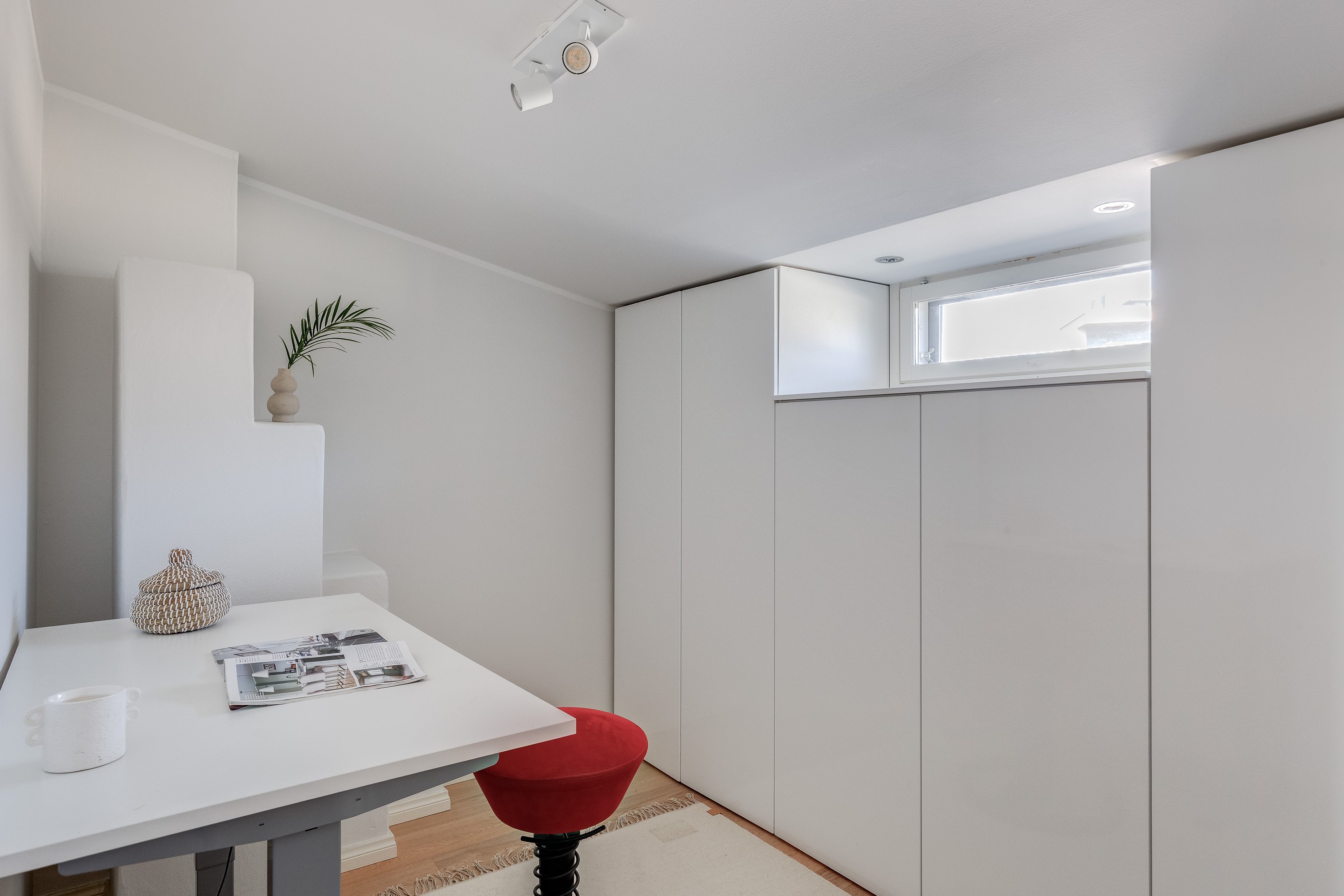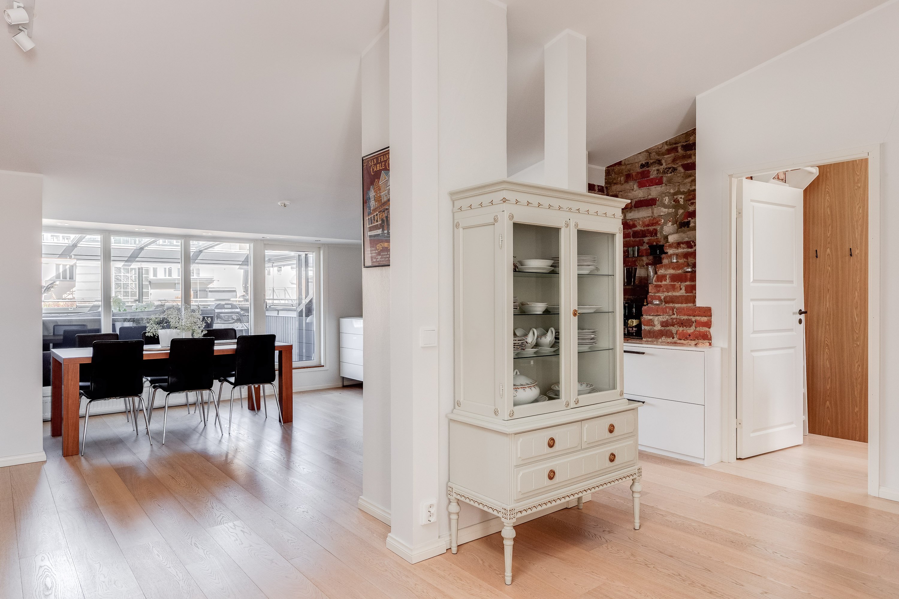 Tyylikäs, vuonna 2021 laadukkaasti remontoitu avokeittiö tarjoaa erinomaiset puitteet ruoanlaittoon. Tilava olohuone-avokeittiökokonaisuus luo avaruutta ja tekee kodista ihanteellisen paikan niin arkeen kuin juhlaan. Hienoa tunnelmaa tähän läpitalon huoneistoon tuo kattoikkunat sekä osittain näkyviin jätetyt tiiliseinät. Yhden reilun kokoisen makuuhuoneen lisäksi huoneiston työhuoneen voi tarvittaessa muuttaa toiseksi makuuhuoneeksi. Moderni sauna tuo ihanaa lisäluksusta arkeen. Huoneiston kruunaa upea, lasitettu terassi, josta avautuu hieno sisäpihakorttelinäkymä. Terassin katto on myös lasitettu ja se tuo tilaan lisää valoa ja avaruutta. Täällä voit nauttia illasta ystävien kanssa keskellä kaupungin vilskettä mutta kuitenkin täysin omassa rauhassa.