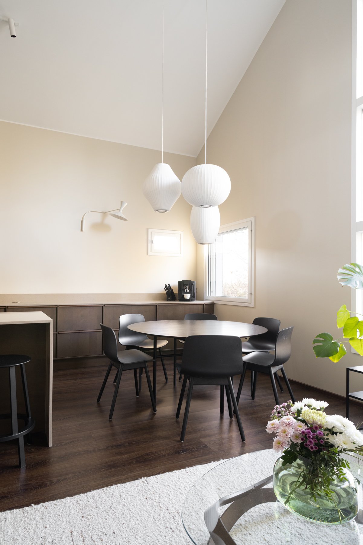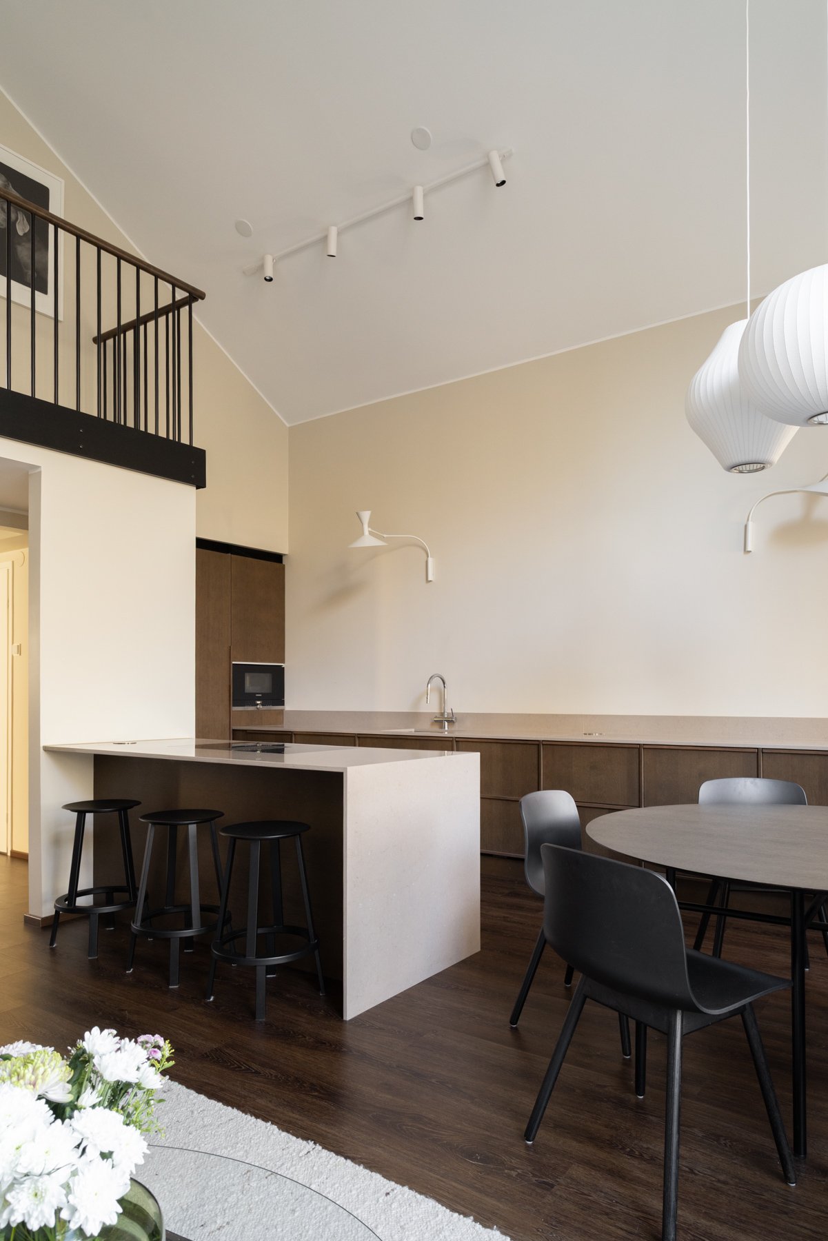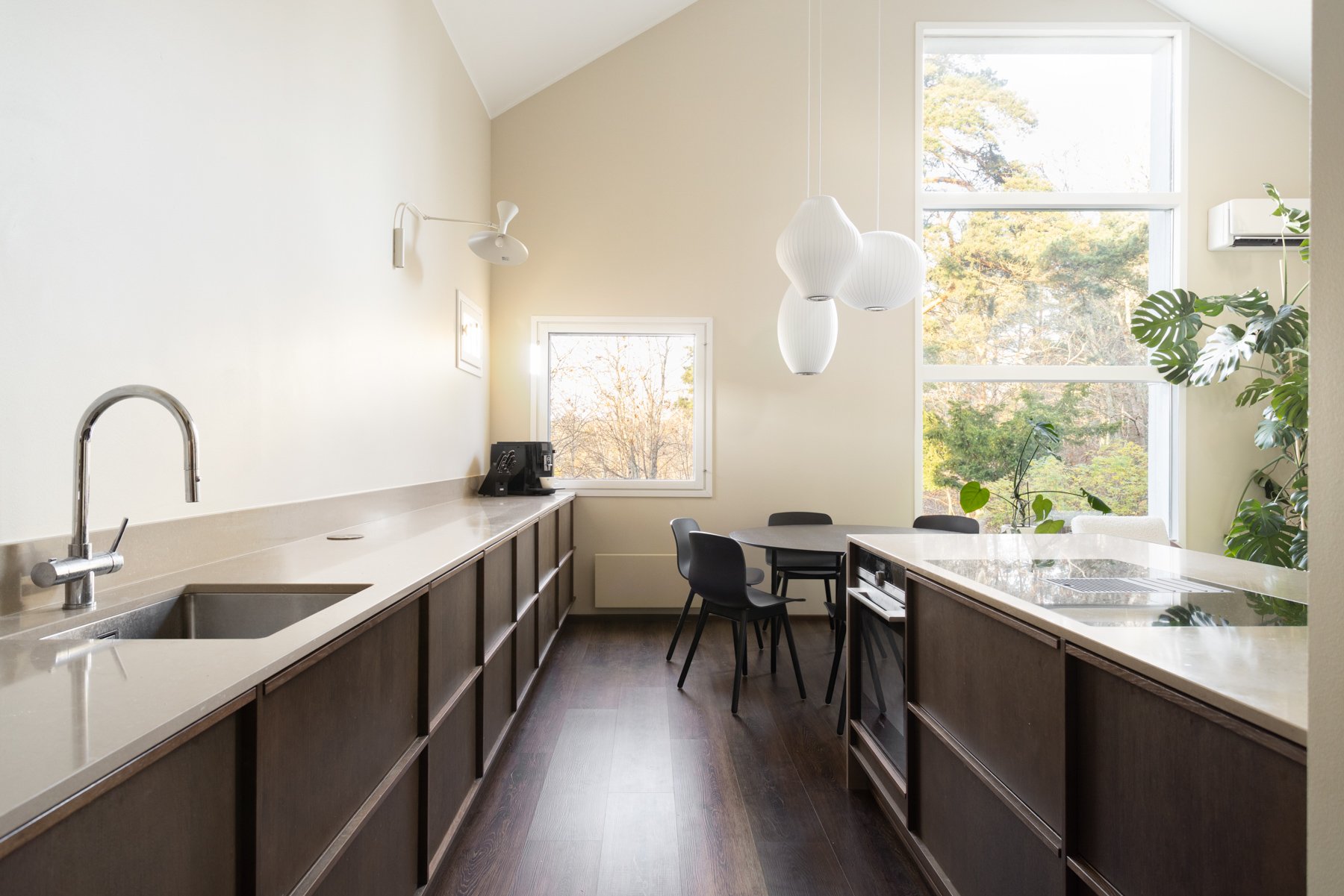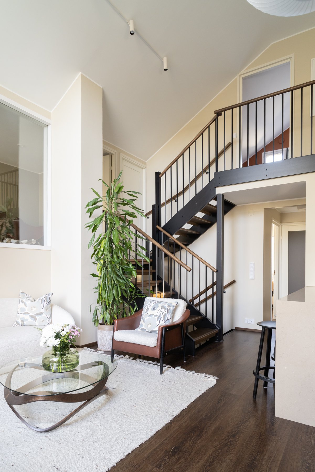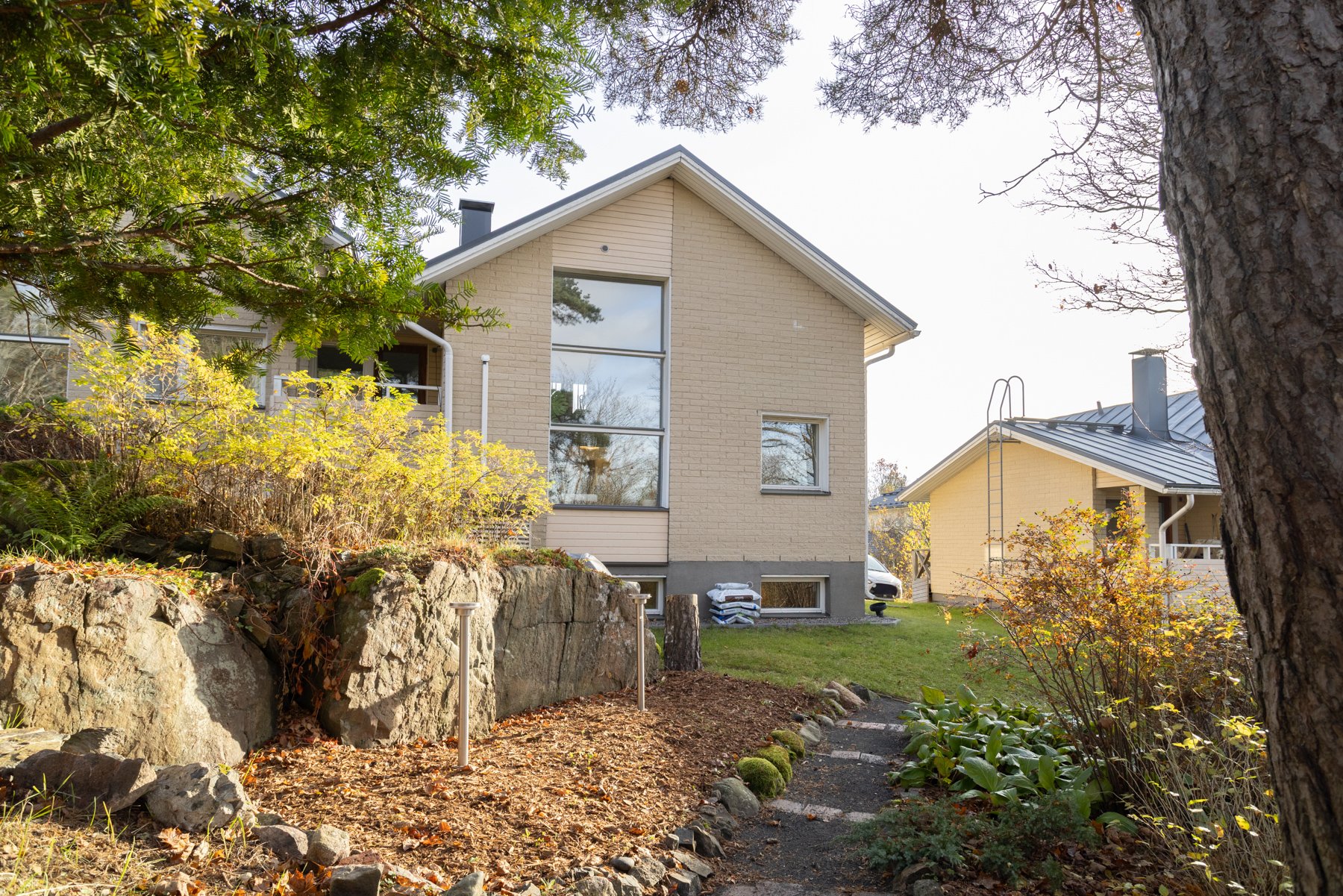 Asunnossa on viisi makuuhuonetta, joista yksi toimii erinomaisesti työ- tai viherhuoneena. Alakerrassa on takkahuone, joka voi toimia toisena olohuoneena tai lisämakuuhuoneena. Moderni avokeittiö kivitasoineen ja saarekkeineen on varustettu laadukkailla kodinkoneilla, mikä tekee ruoanlaitosta nautinnollista.