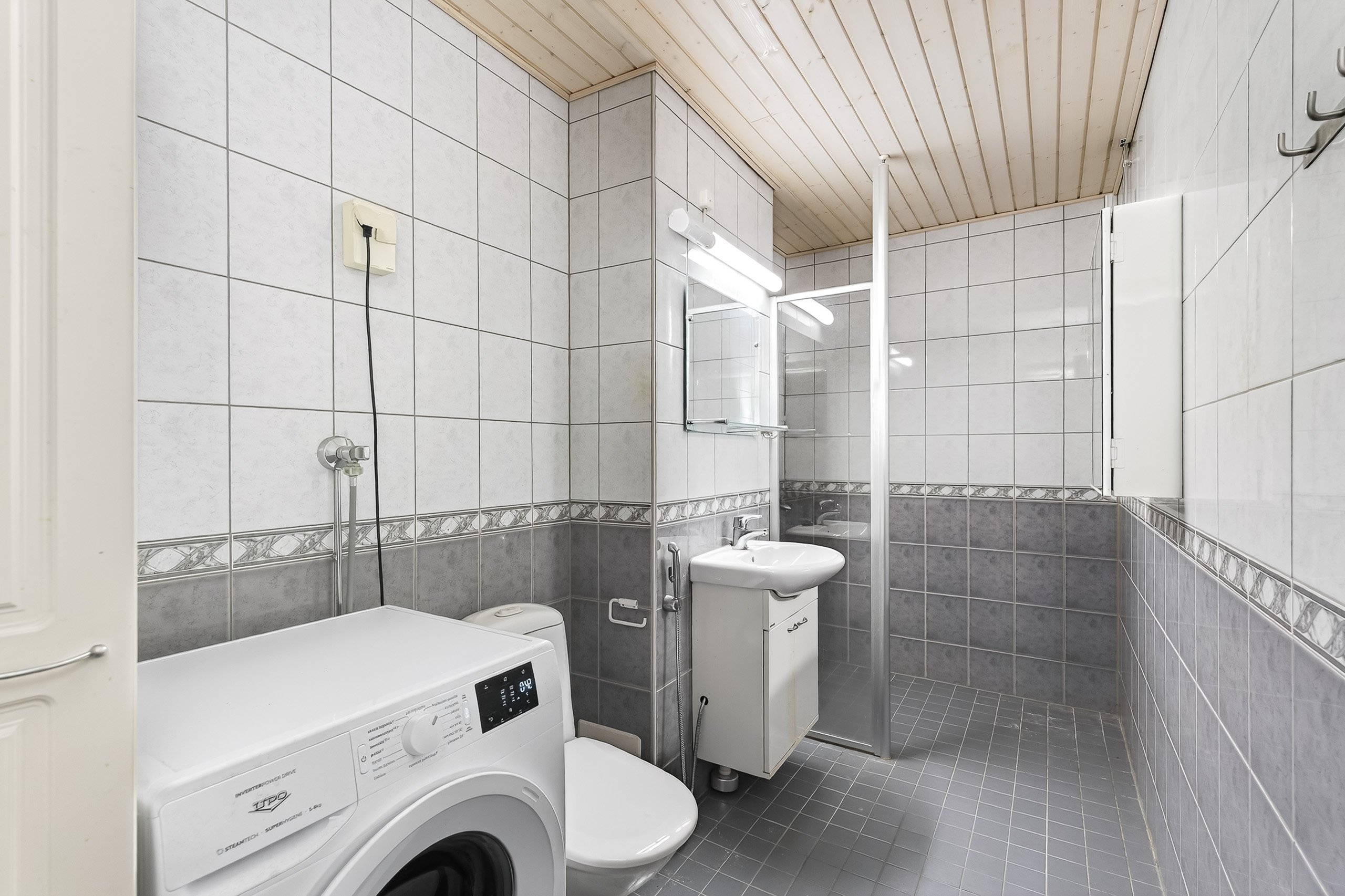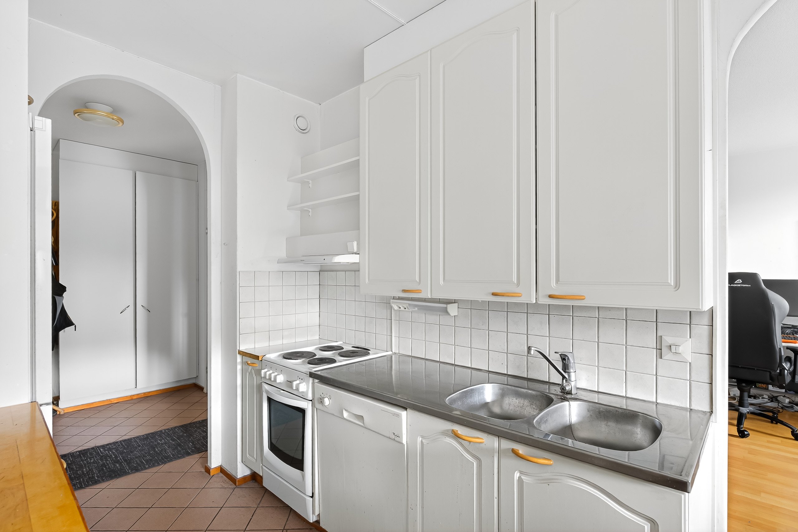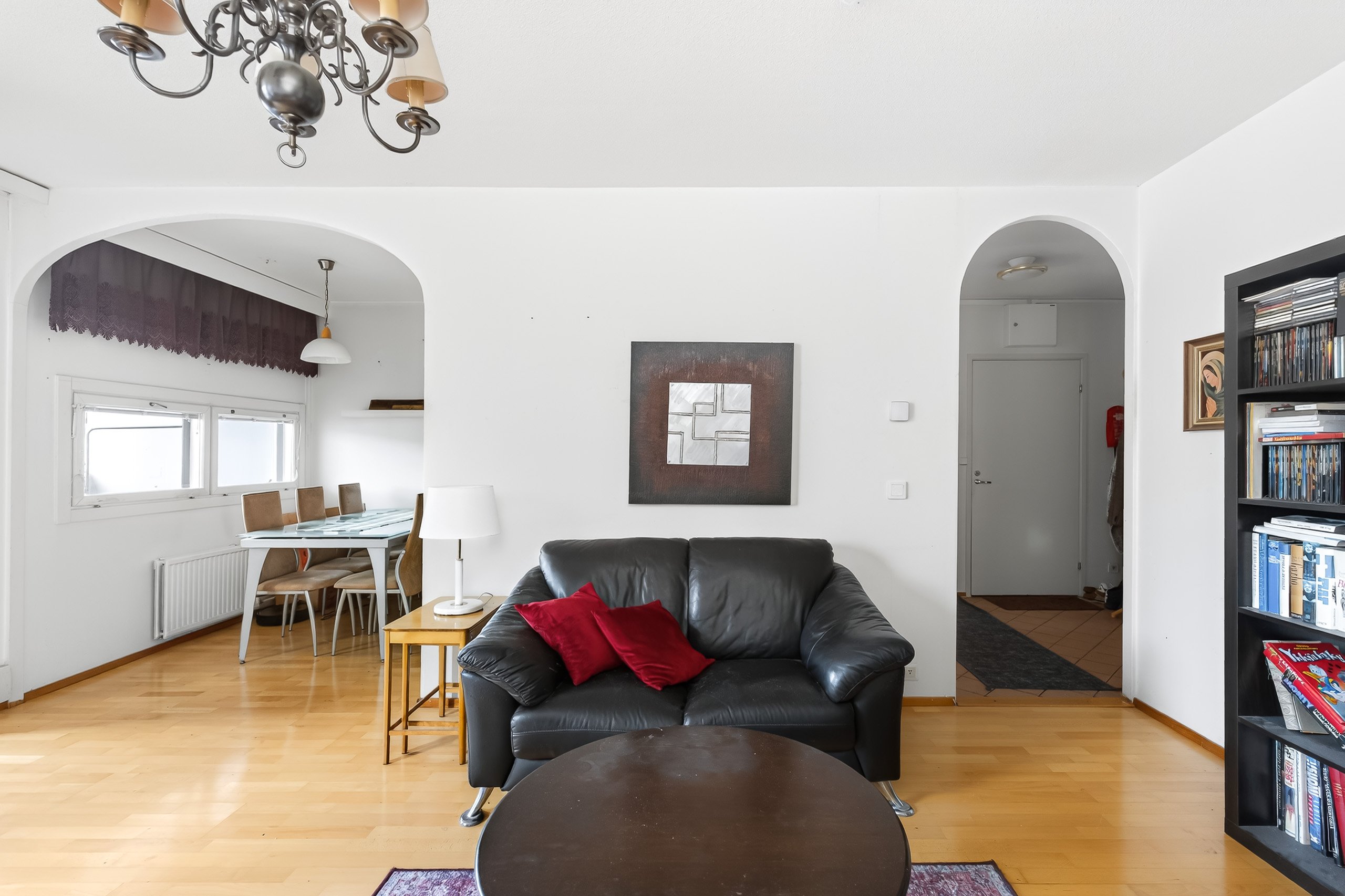 Tässä kodissa ei ole hukkaneliöitä eikä turhia käytäviä. Eteisessä on tila naulakolle ja kaapille. Olohuone on tilava ja lasitettu parveke on olohuoneen jatkeena. Keittiössä on kaikki tarvittavat laitteet, kuten astianpesukone ja jääkaappipakastin. Ruokailutila on avoin keittiön ja olohuoneen yhteydessä. Kylpyhuone on remontoitu vuonna 2013. Makuuhuoneessa on tilaa parisängylle ja vaatekaappeja on reilusti.