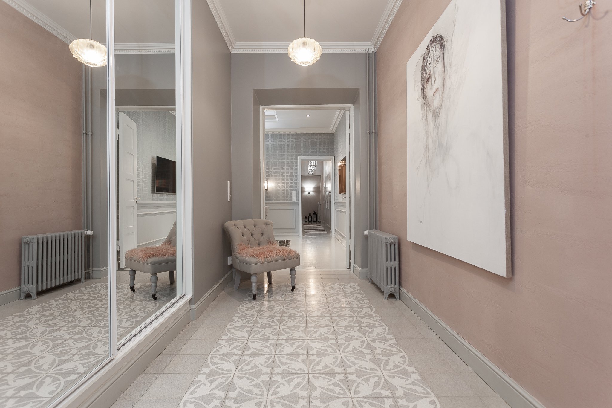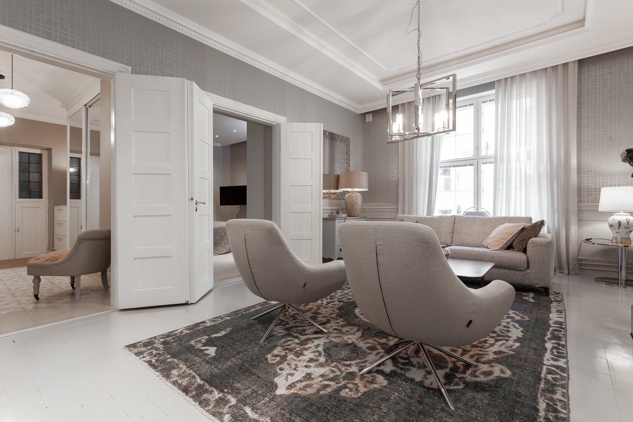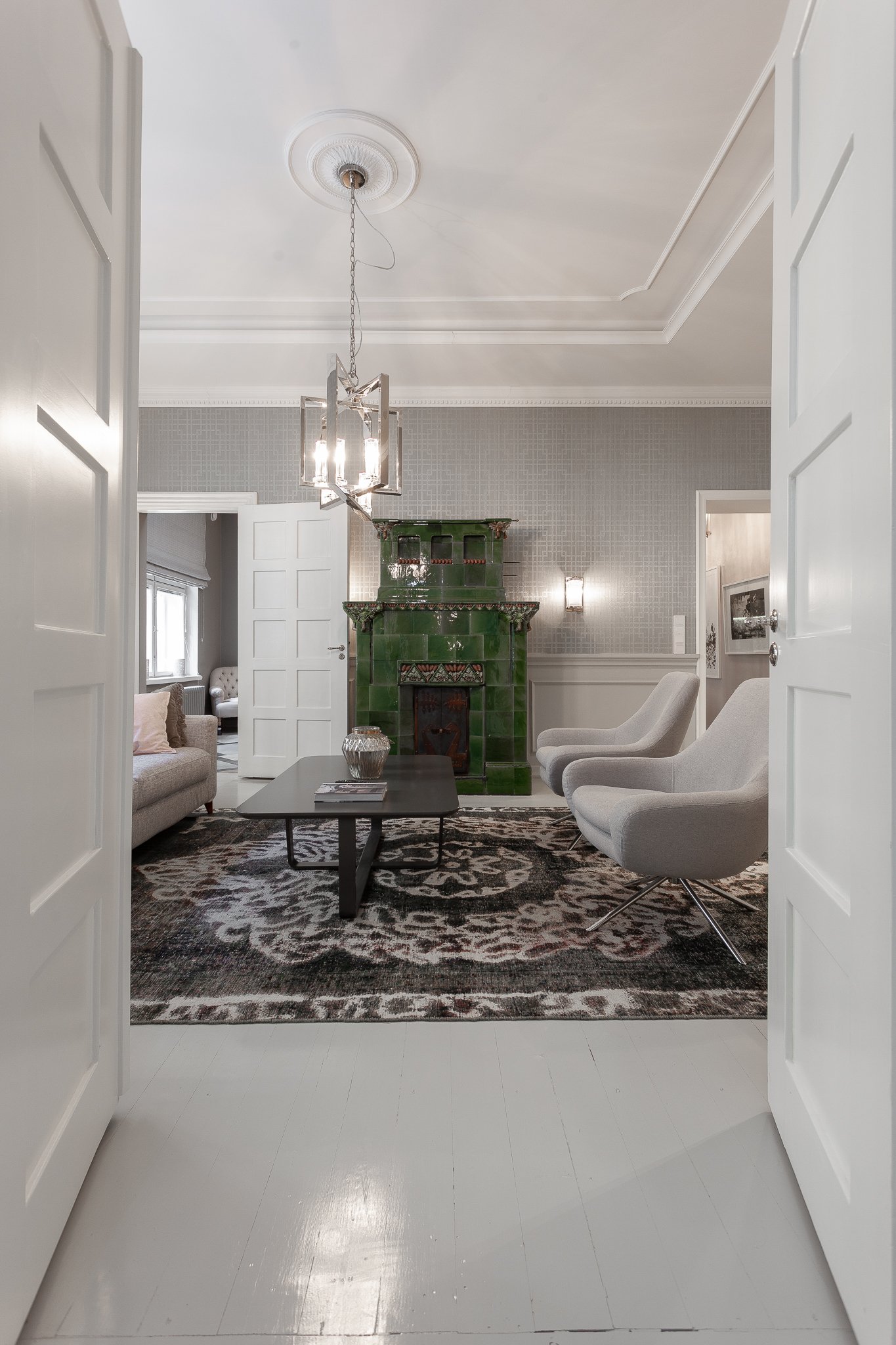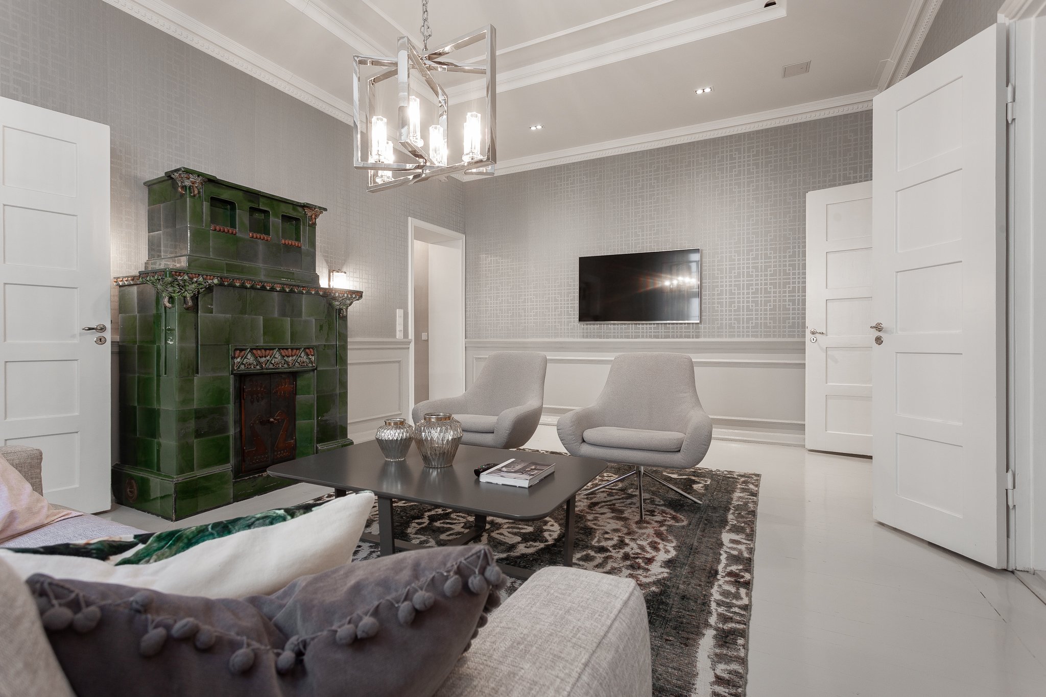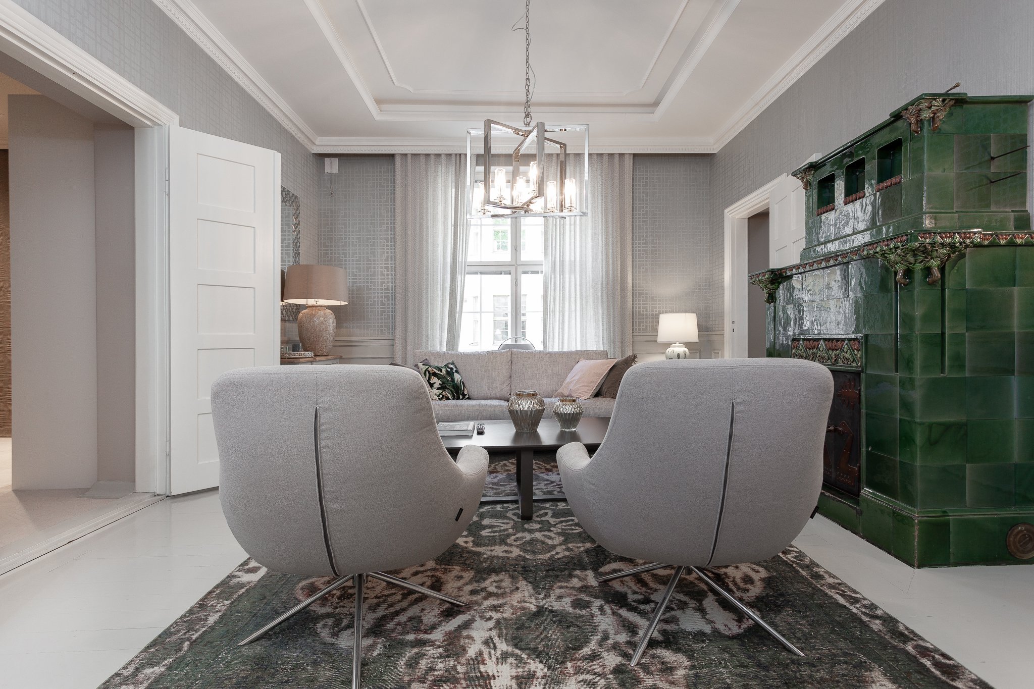 Myytävä asunto on käynyt läpi laajan ja perusteellisen remontin vuonna 2016, jossa jokainen yksityiskohta on mietitty tarkkaan – aina keittiön näyttävästä ruutukuviolla maalatusta lattiasta valaistuksen huolelliseen suunnitteluun asti. Kaksi alkuperäistä, erinomaisesti säilynyttä kakluunia tuovat tiloihin ajattoman arvokkuuden ja lämmön. Kakluunit ovat sijoitettu olohuoneeseen ja master bedroomiin. Masterin yhteydessä on siistit vaatekaapit ja toisessa makuuhuoneessa vaatekaappien lisäksi pieni vaatehuone. Asunnon "fiilis" on kuin laadukkaassa hotellihuoneessa ja korkea huonekorkeus korostaa avaruutta ja jugend-henkeä. Keittiö sijaitsee keskellä asuntoa omana kokonaisuutena ja tänne mahtuu helposti iso ruokapöytä. Eteinen tai eteishalli on todella tilava ja täällä on runsaasti säilytystilaa tyylikkäiden peililiukuovien takana. Asunnolla on lisäksi kaksi sisäänkäyntiä (toinen sisäänkäynti entinen palvelijan sisäänkäynti) ja ikkunoista avautuvat rauhalliset näkymät sisäpihalle, mikä luo kodikkaan ja suojaisan tunnelman. Talossa on hissi!