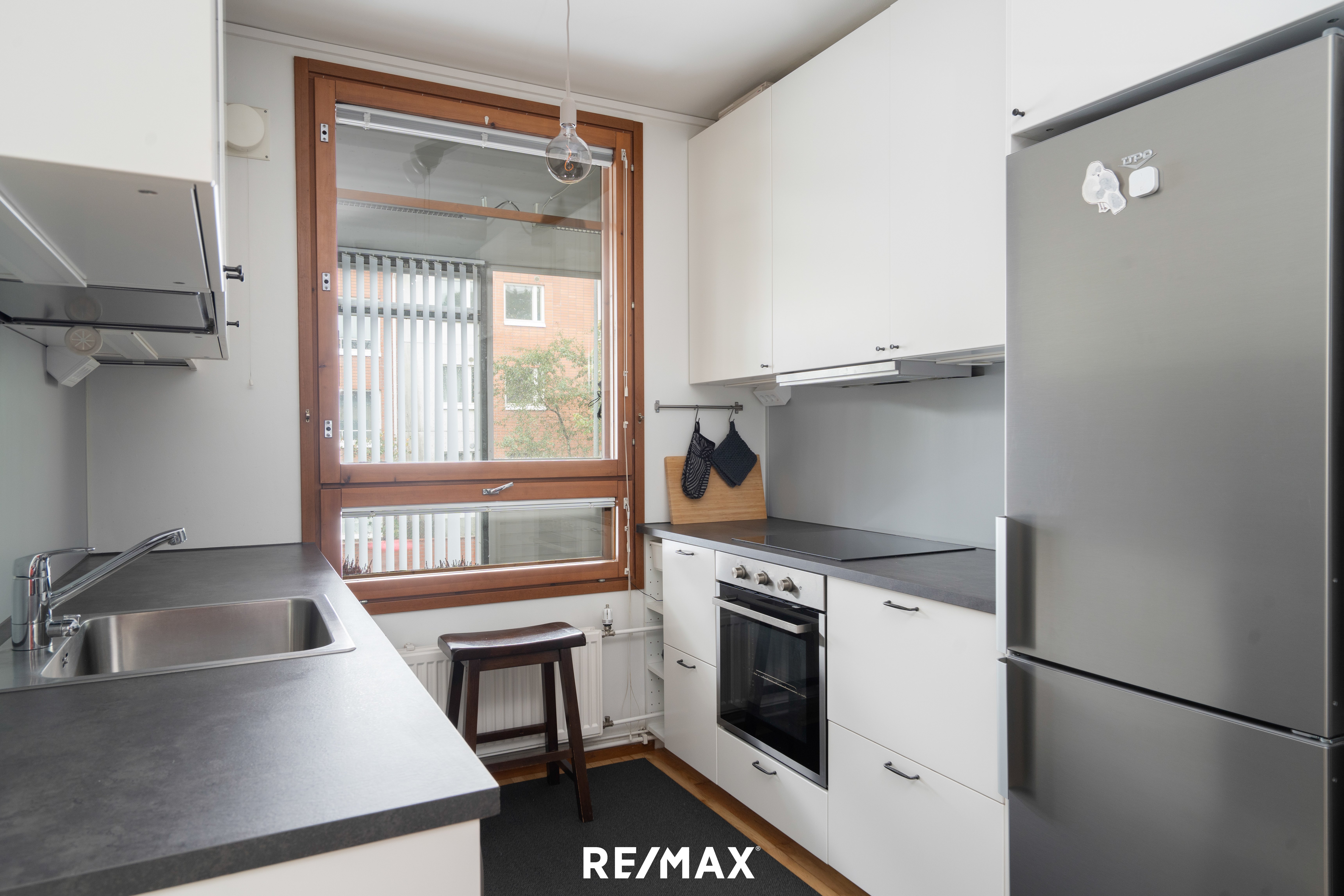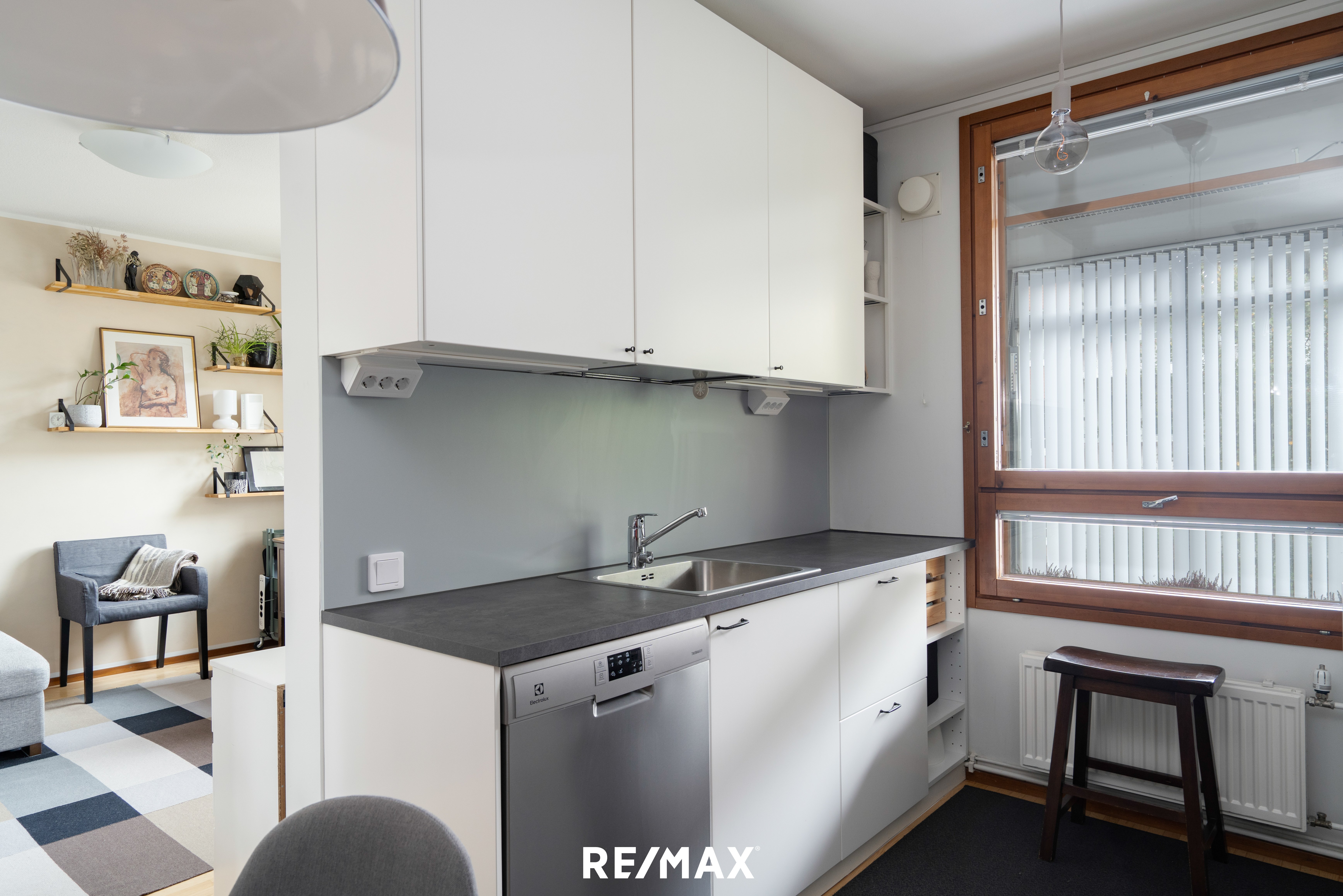 Asunnon avara olohuone ja toimiva keittiö yhdistyvät harmonisesti, luoden ihanteellisen ympäristön niin arkeen kuin yhdessäoloon. Makuuhuone tarjoaa rauhallisen tilan lepoon ja säilytysratkaisut pitävät arjen sujuvana.