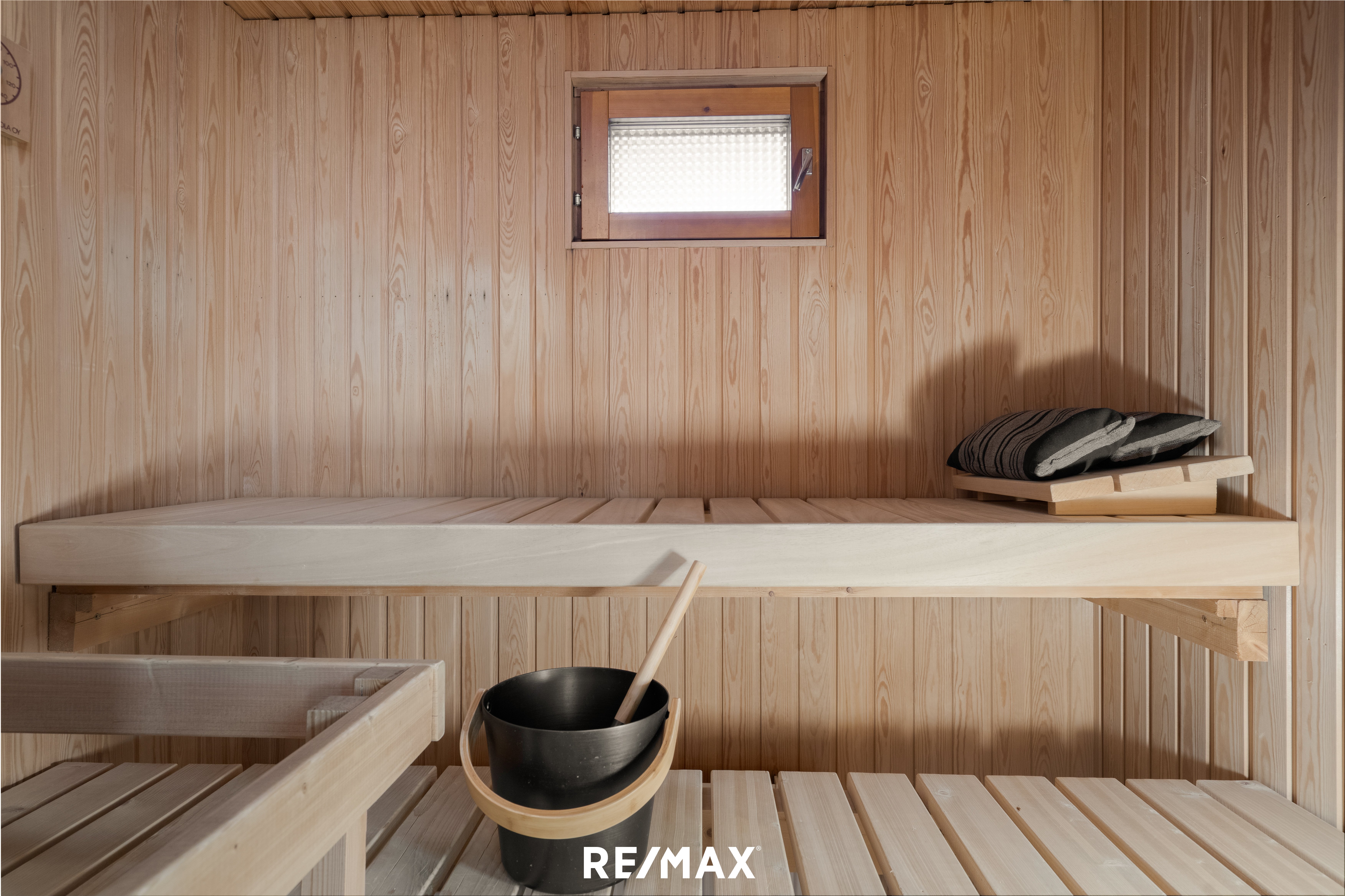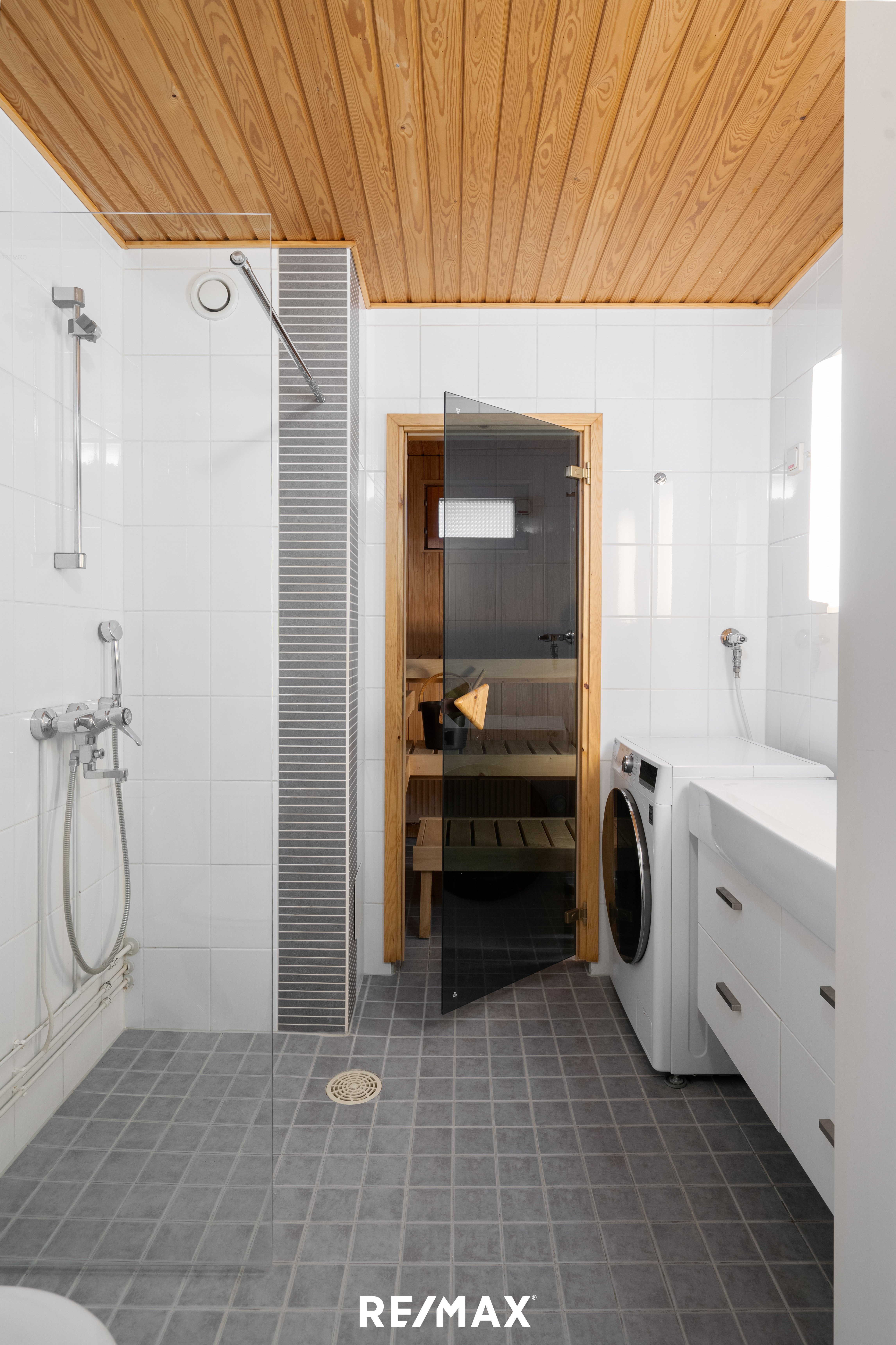 Sauna tuo kotiin oman rentoutumishetken, ja parveke jatkaa oleskelutilaa kauniisti – täydellinen paikka aamukahville tai iltahetkille.