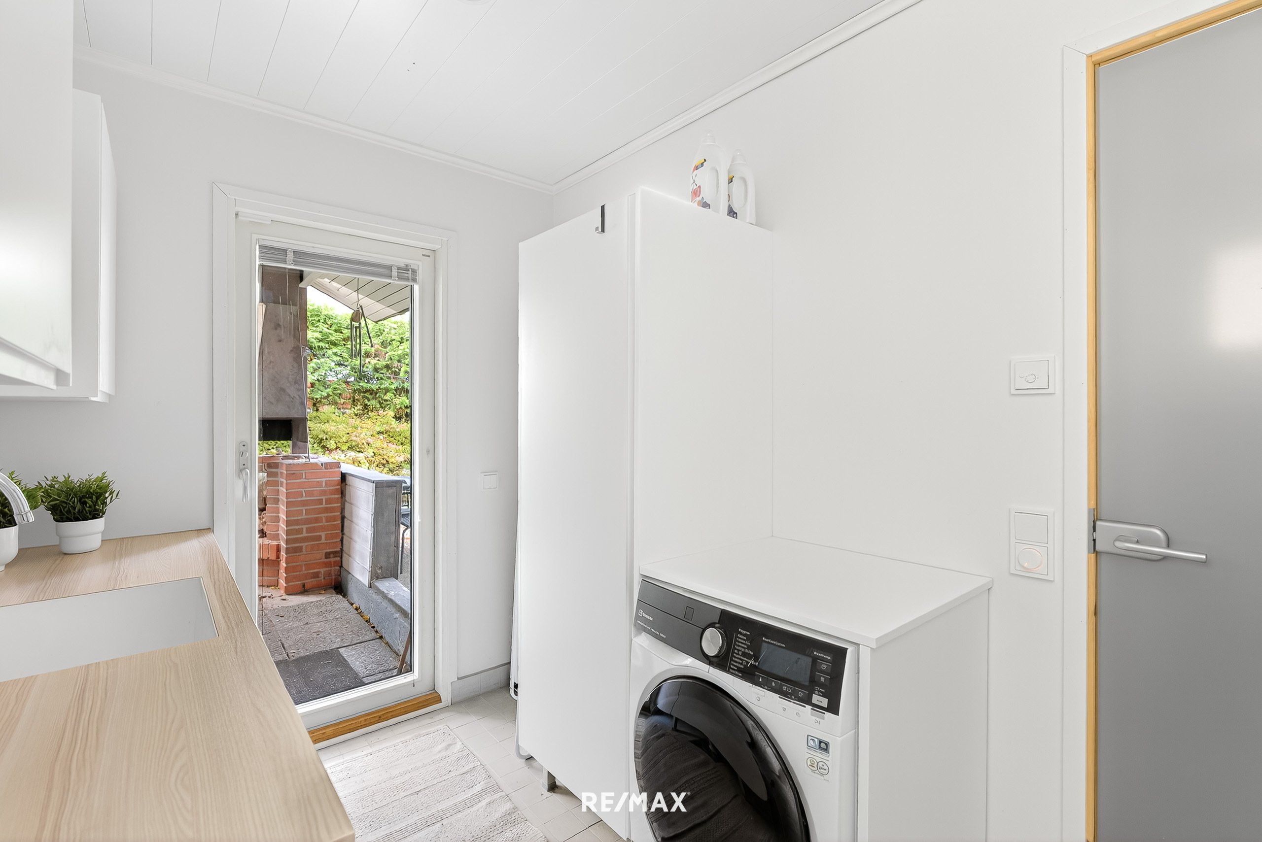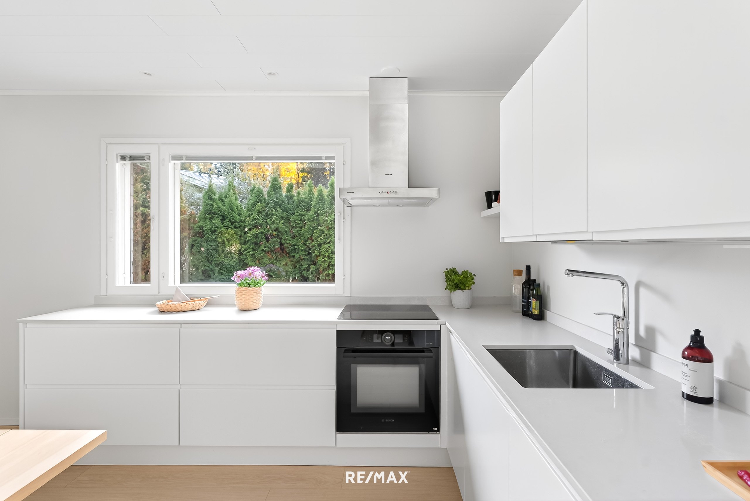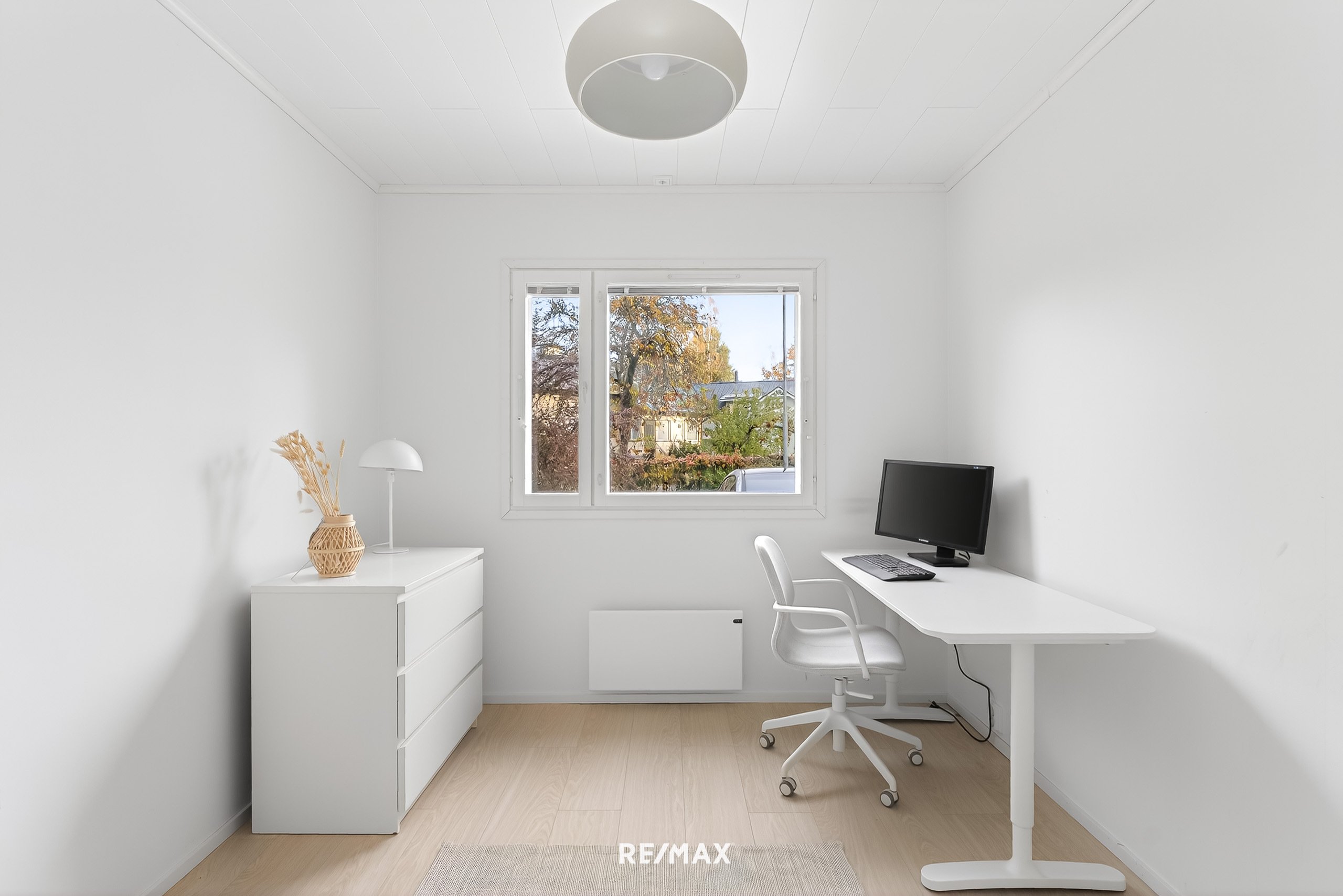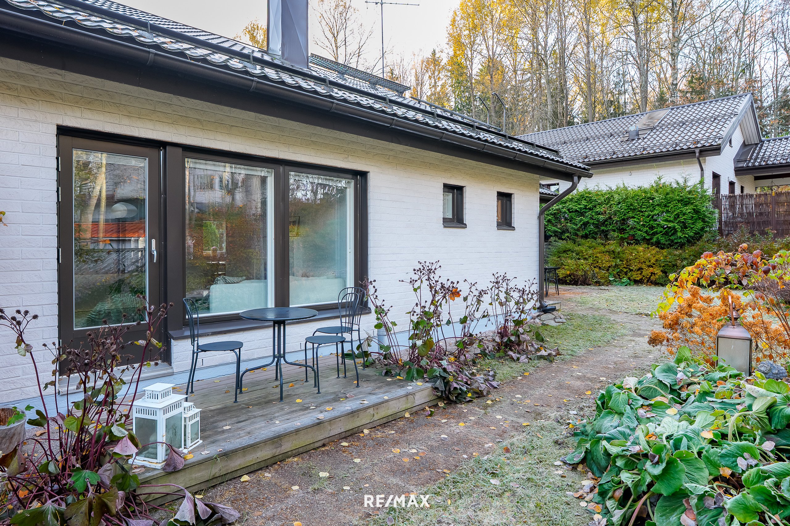 Kodissa on kolme tilavaa makuuhuonetta, joista yhdessä on kätevät liukuovikaapistot. Olohuoneessa varaava takka tuo lämpöä ja tunnelmaa. Olohuoneesta on käynti suojaisalle takapihalle. Keittiö on moderni ja tilava, ja sinne mahtuu isompikin ruokapöytä. Kylpyhuoneen yhteydessä on käytännöllinen kodinhoitohuone, josta pääsee suoraan ulos grillikatokseen vilvoittelemaan.