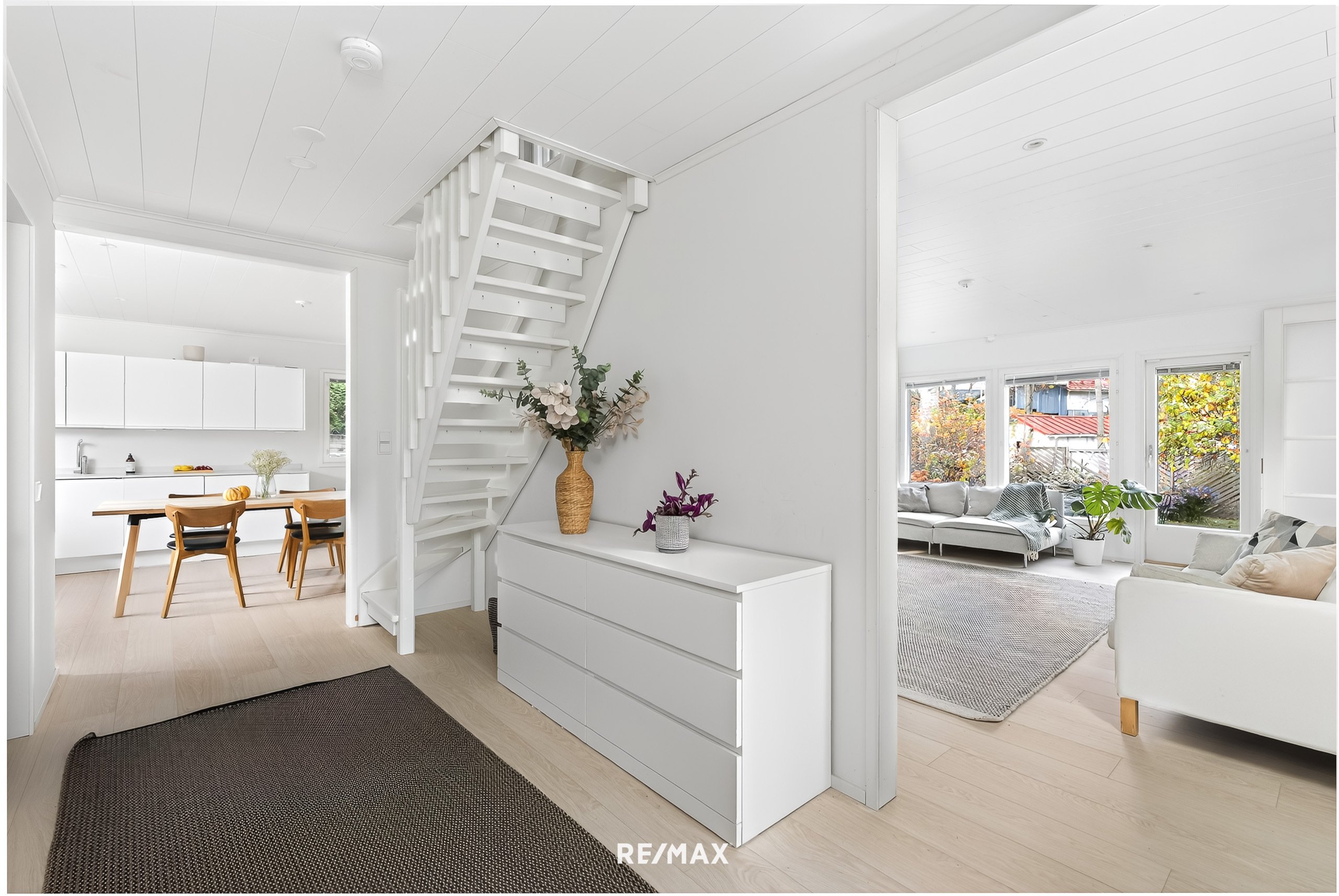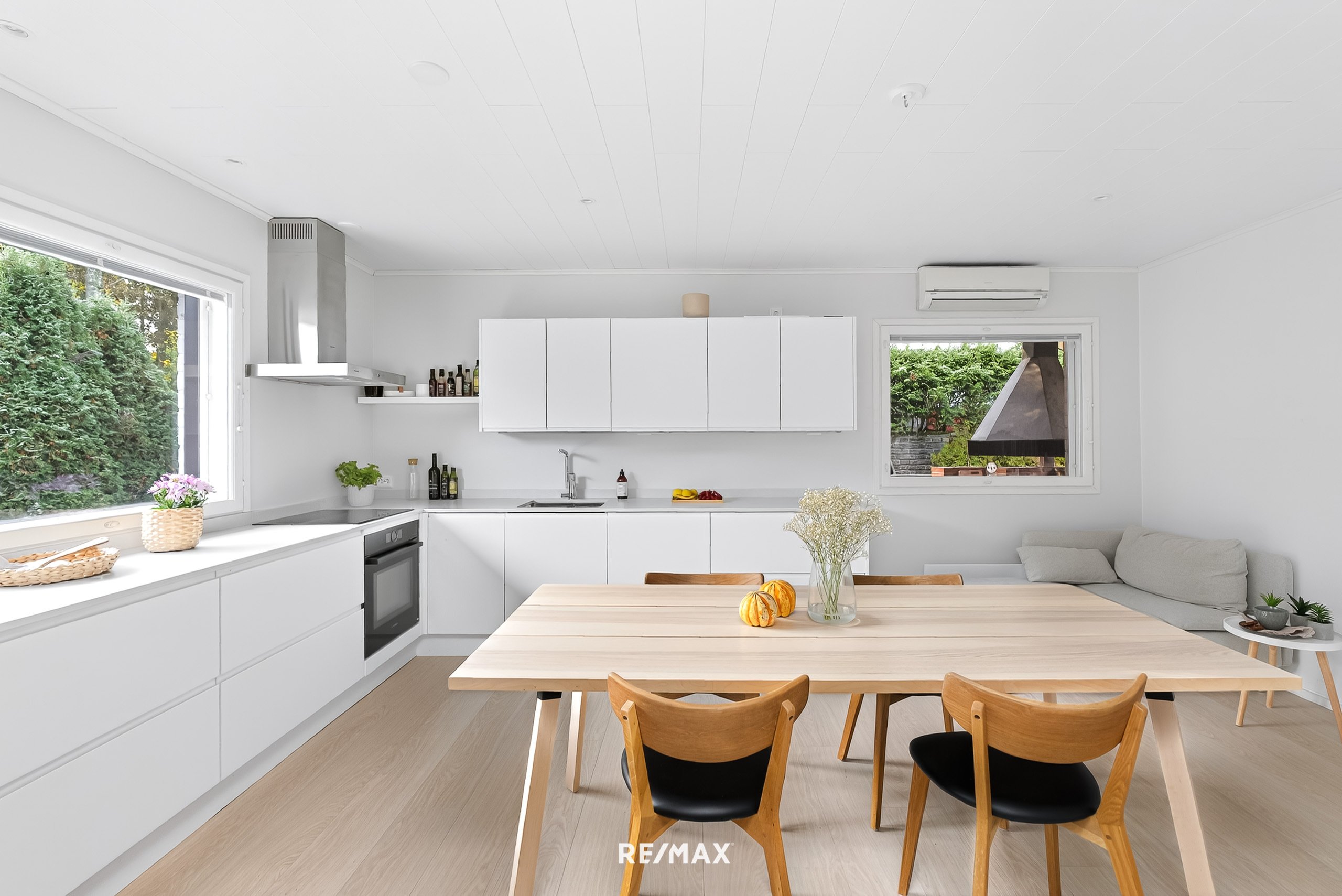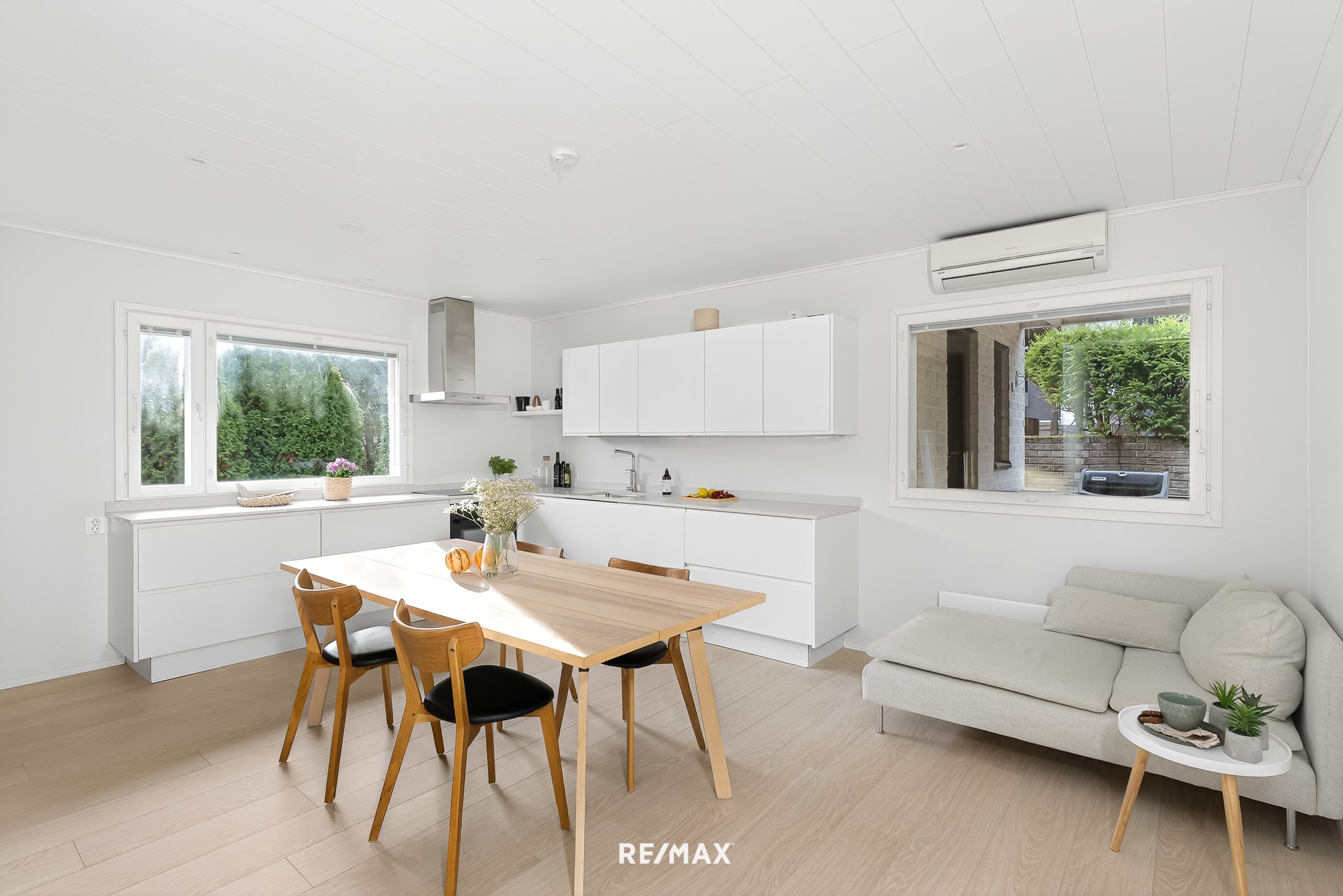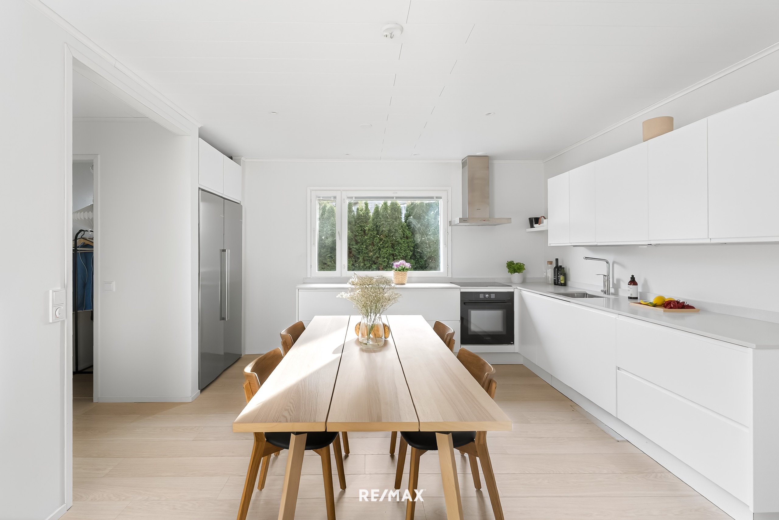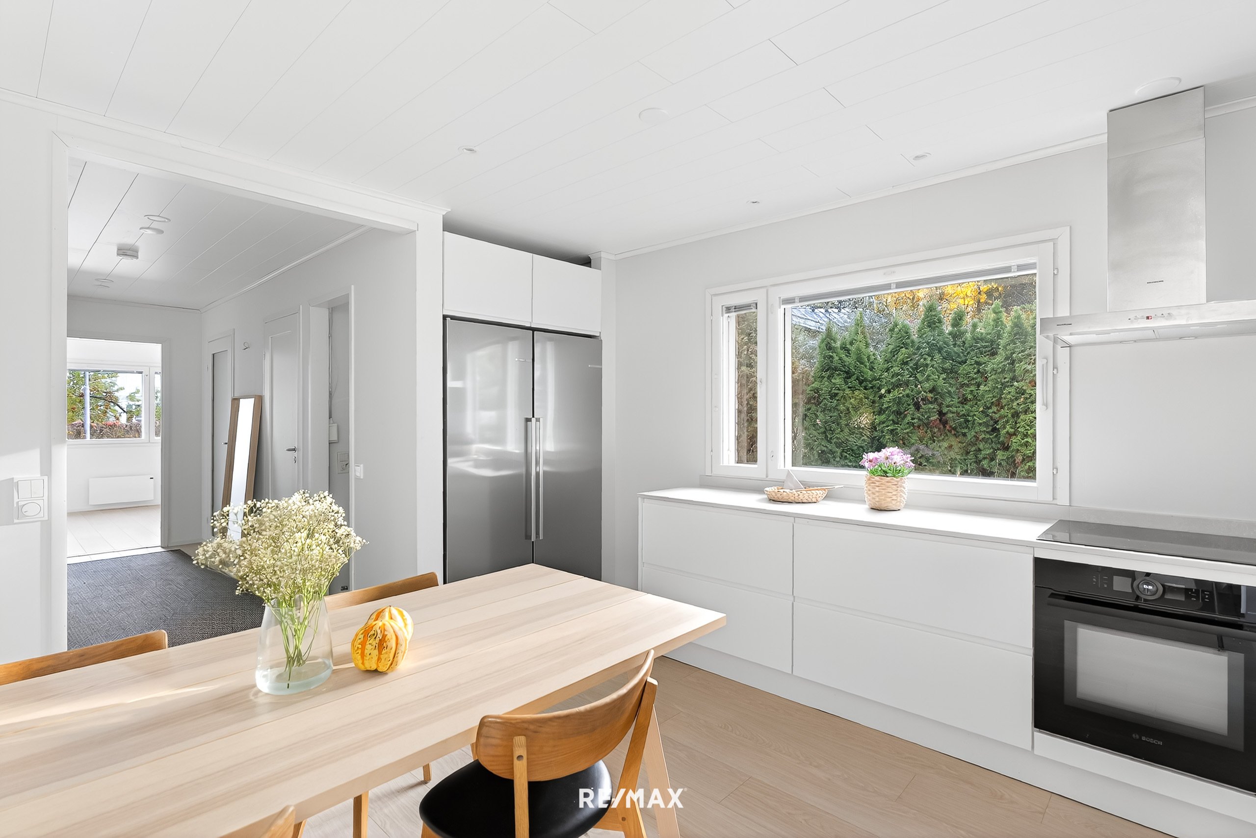 Kodissa on kolme tilavaa makuuhuonetta, joista yhdessä on kätevät liukuovikaapistot. Olohuoneessa varaava takka tuo lämpöä ja tunnelmaa. Olohuoneesta on käynti suojaisalle takapihalle. Keittiö on moderni ja tilava, ja sinne mahtuu isompikin ruokapöytä. Kylpyhuoneen yhteydessä on käytännöllinen kodinhoitohuone, josta pääsee suoraan ulos grillikatokseen vilvoittelemaan.