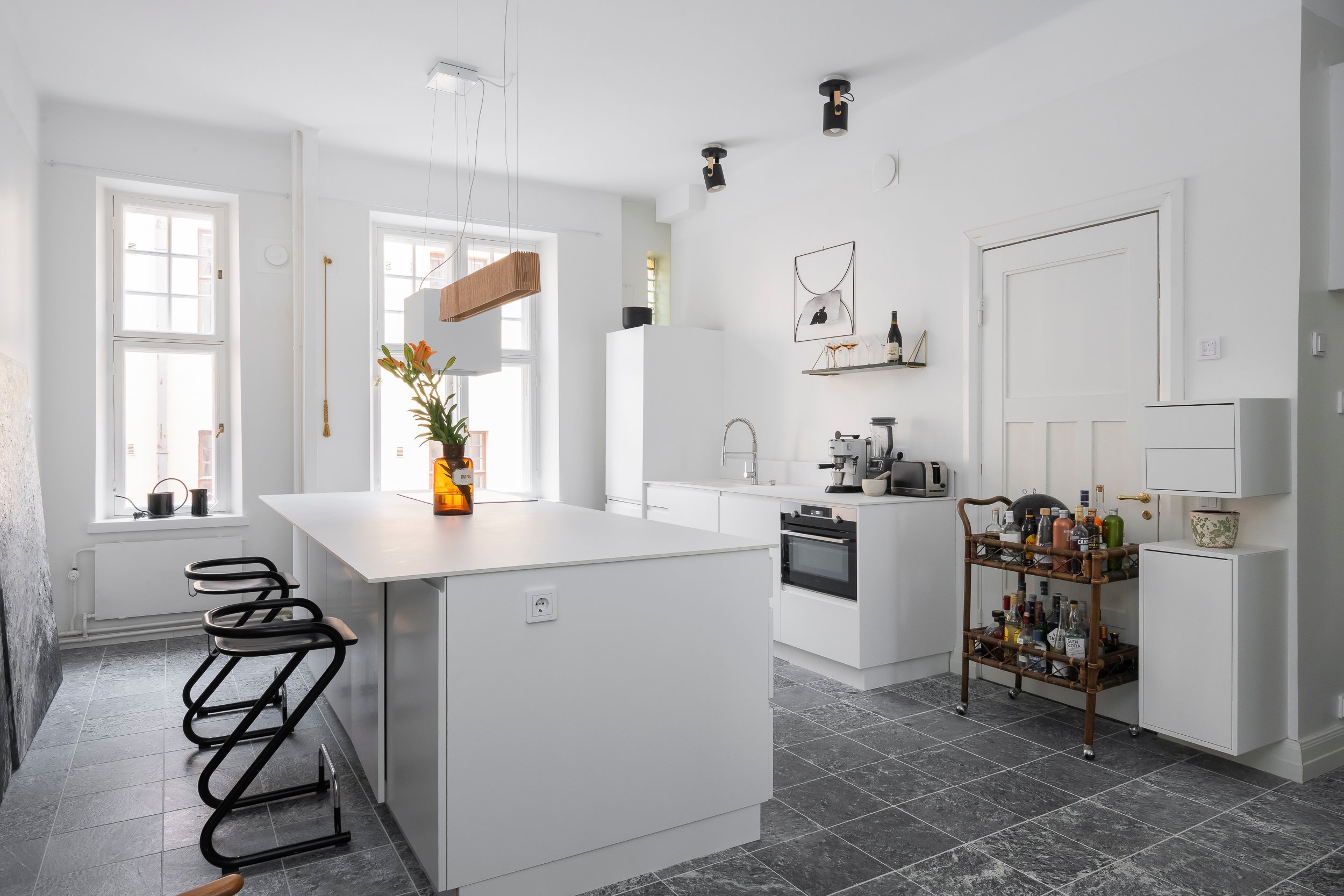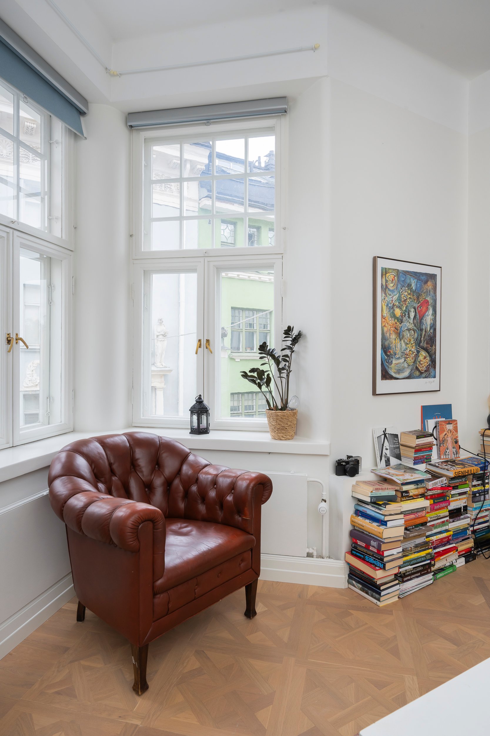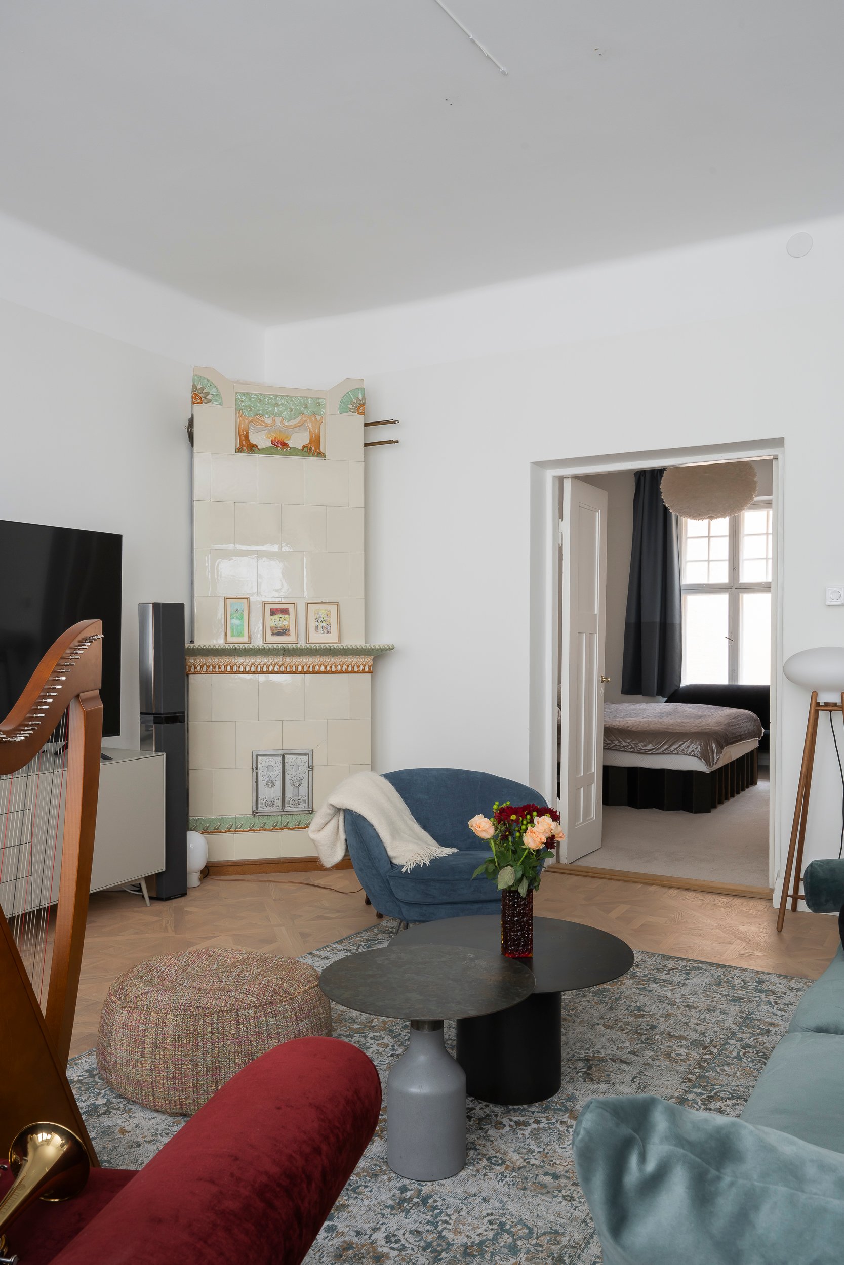 Huoneisto on läpikäynyt huolellisen remontin 2021–22, ja lopputulos on tasapainoinen yhdistelmä charmia ja nykyaikaista tyyliä. Alkuperäiset kakluunit tuovat kodille karaktääriä ja erkkeristä avautuvat näkymät merelle tuovat luonnon lähelle. Ikkunapenkit ovat leveät ja kutsuvat nauttimaan rauhallisista hetkistä, taivaasta ja auringonvalosta sekä Kruununhaan klassisesta kaupunkimaisemasta. Keittiö on kodin sydän: saarekkeellinen ja selkeästi suunniteltu tila, jossa tanskalainen design yhdistyy käytännöllisyyteen.