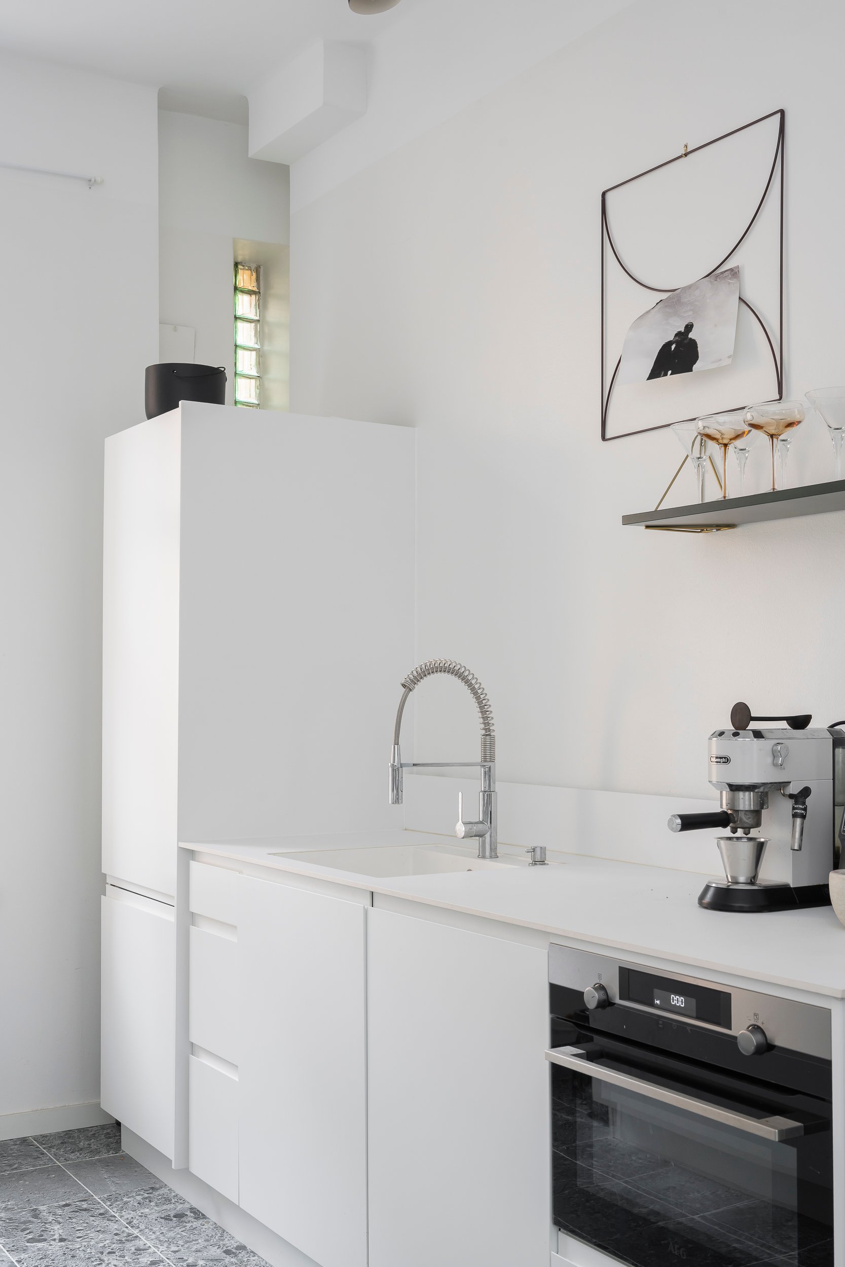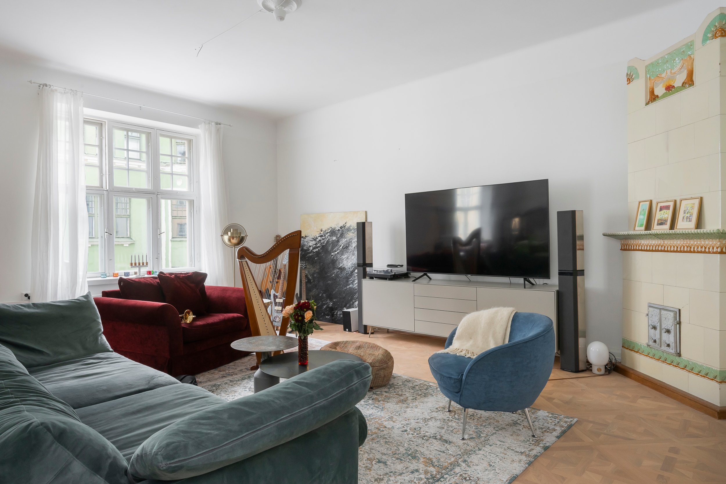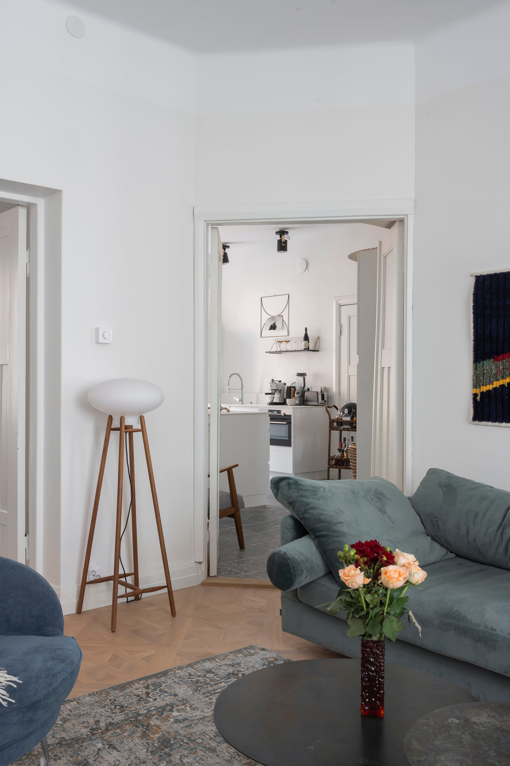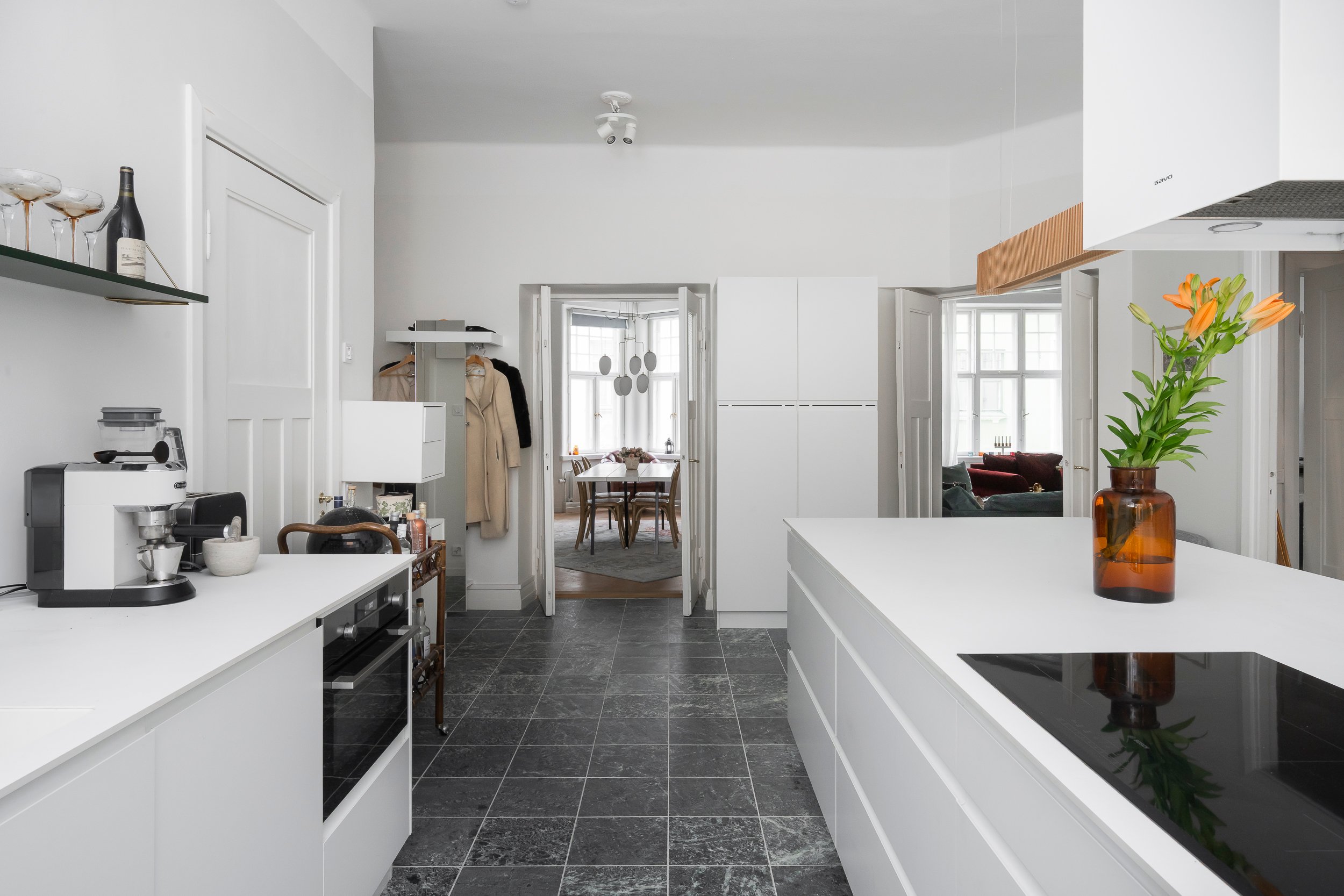 Huoneisto on läpikäynyt huolellisen remontin 2021–22, ja lopputulos on tasapainoinen yhdistelmä charmia ja nykyaikaista tyyliä. Alkuperäiset kakluunit tuovat kodille karaktääriä ja erkkeristä avautuvat näkymät merelle tuovat luonnon lähelle. Ikkunapenkit ovat leveät ja kutsuvat nauttimaan rauhallisista hetkistä, taivaasta ja auringonvalosta sekä Kruununhaan klassisesta kaupunkimaisemasta. Keittiö on kodin sydän: saarekkeellinen ja selkeästi suunniteltu tila, jossa tanskalainen design yhdistyy käytännöllisyyteen.