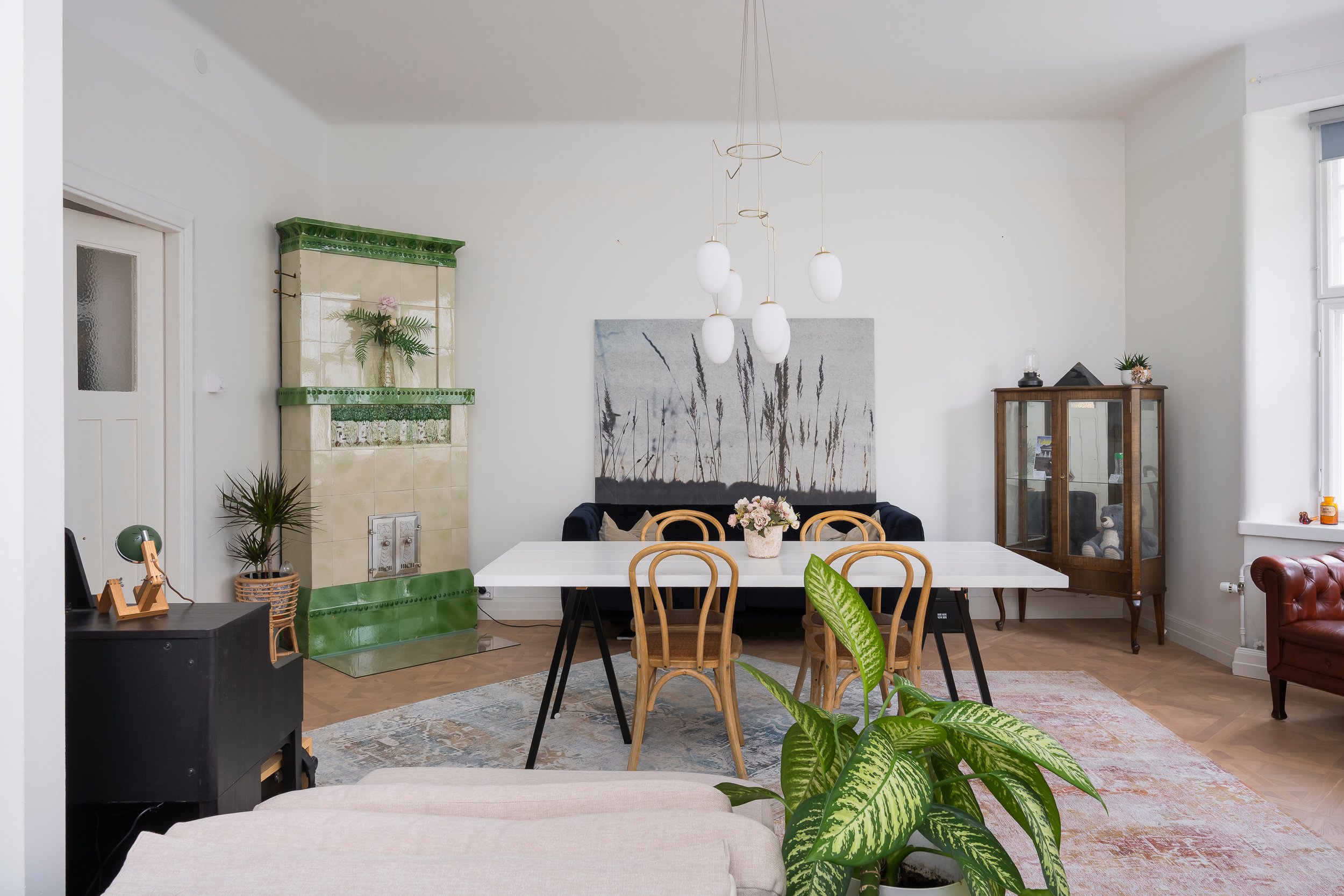 Tämä koti on harvinainen yhdistelmä historiallisen arvokasta miljöötä, valoa, tilaa ja nykyaikaista mukavuutta – lämmin, elegantti ja käytännöllinen kokoonpano.