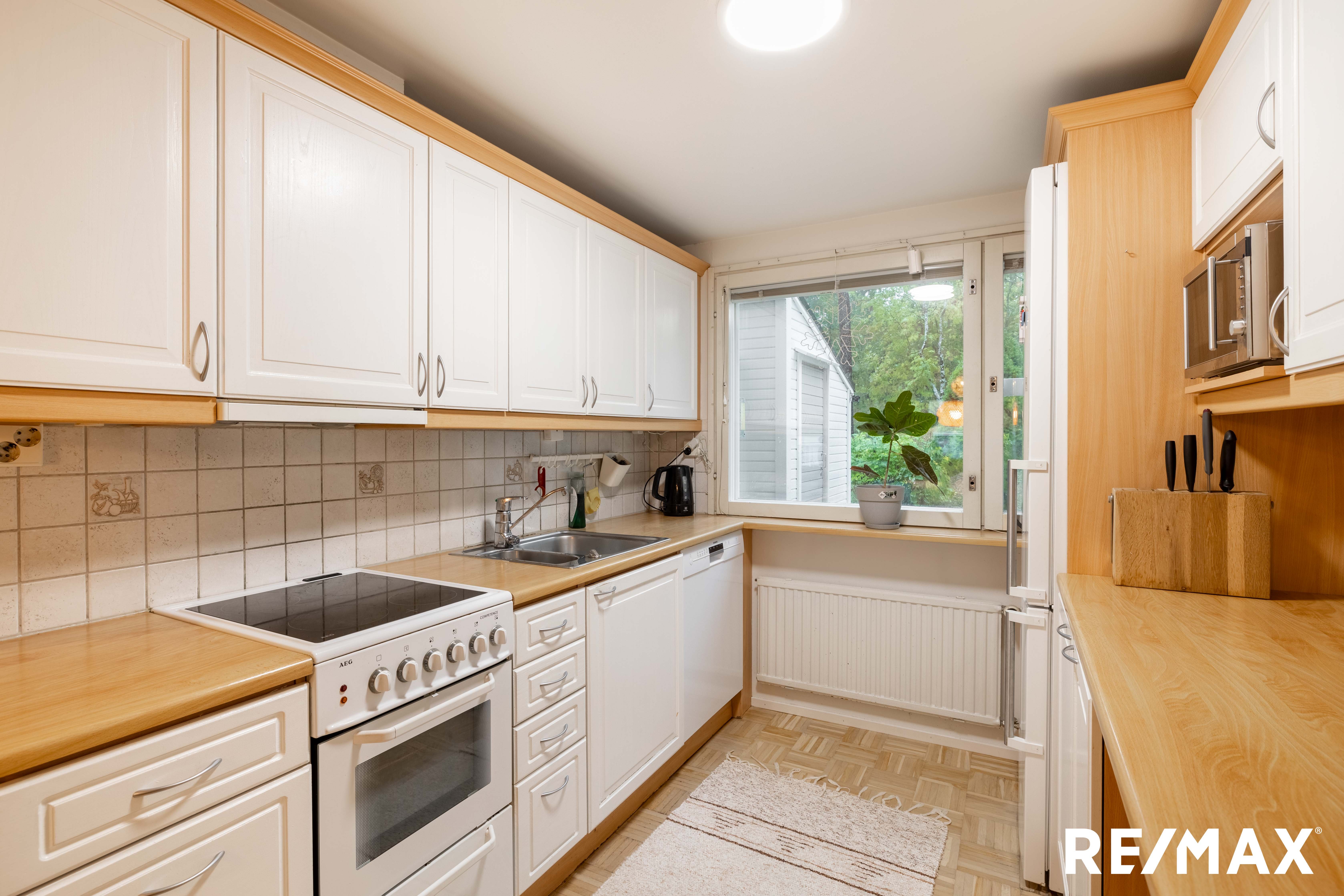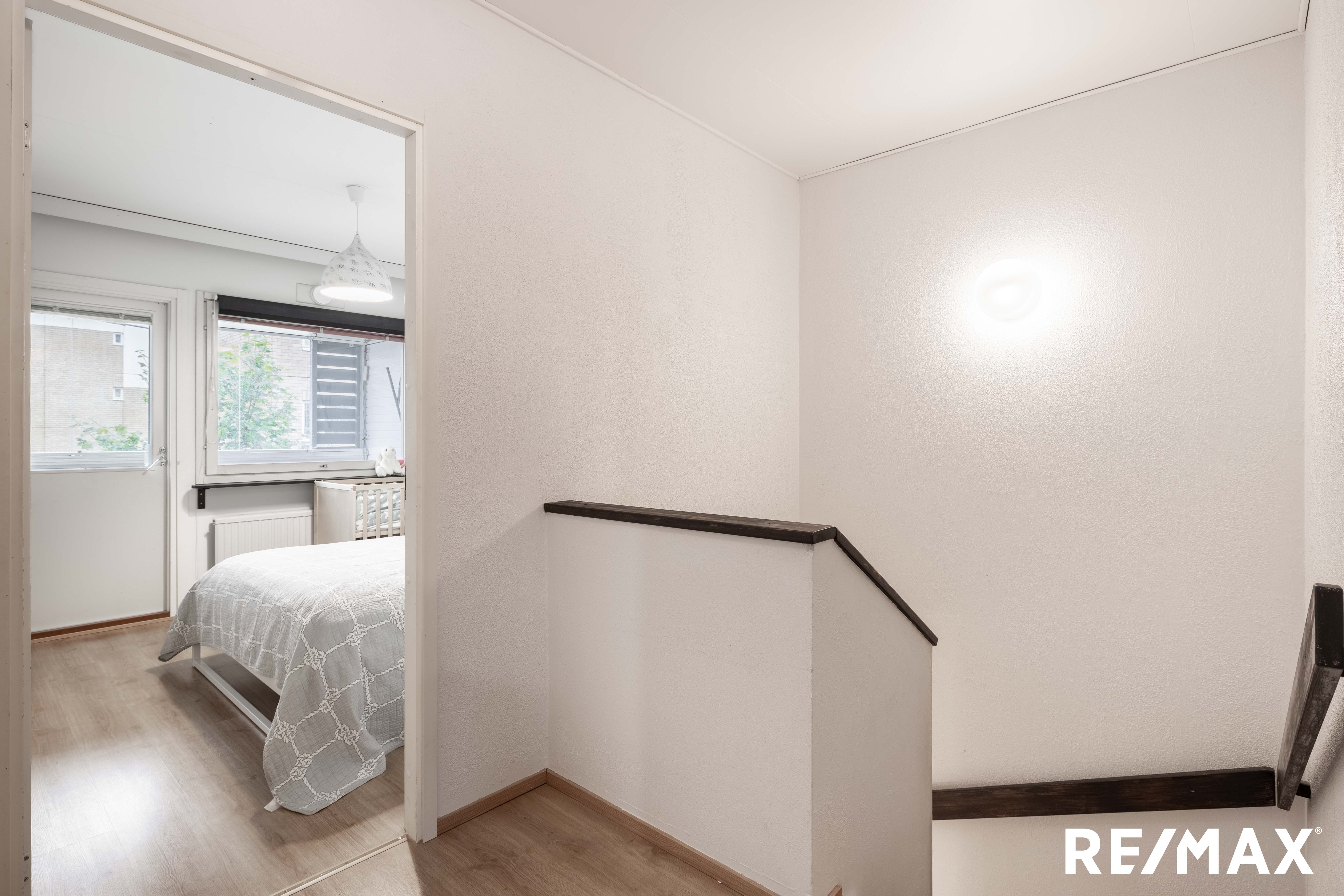 This cozy terraced apartment is located in the quiet and desirable Kurkimäki area of Helsinki. The apartment offers a comfortable setting for family life, as it comprises 87.5 square meters on two floors. Three bedrooms ensure space for both the youngest in the family and guests.