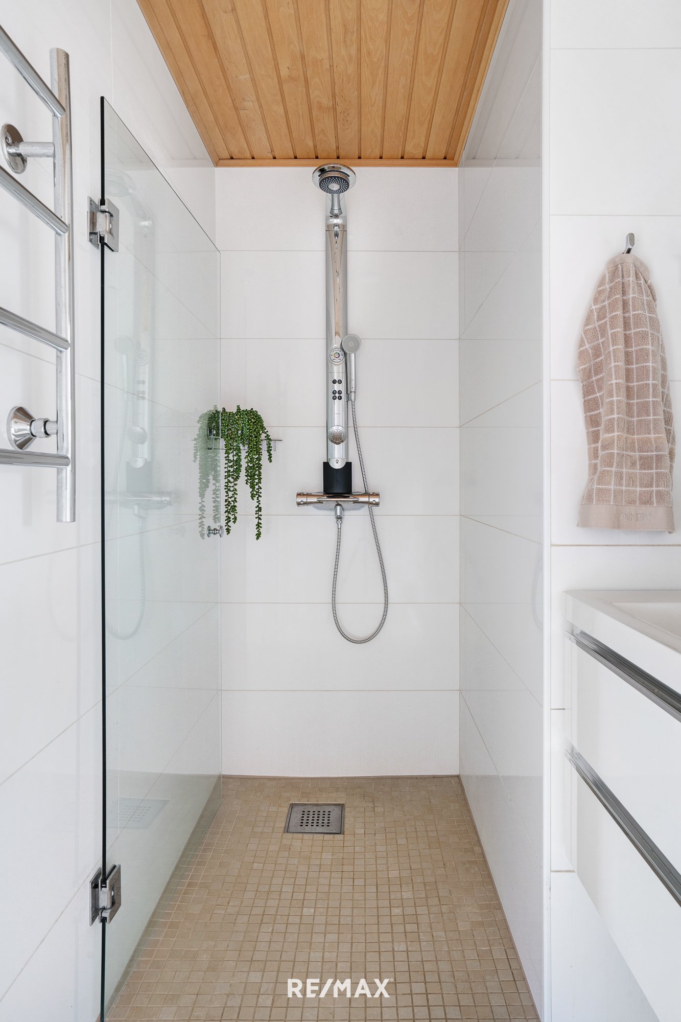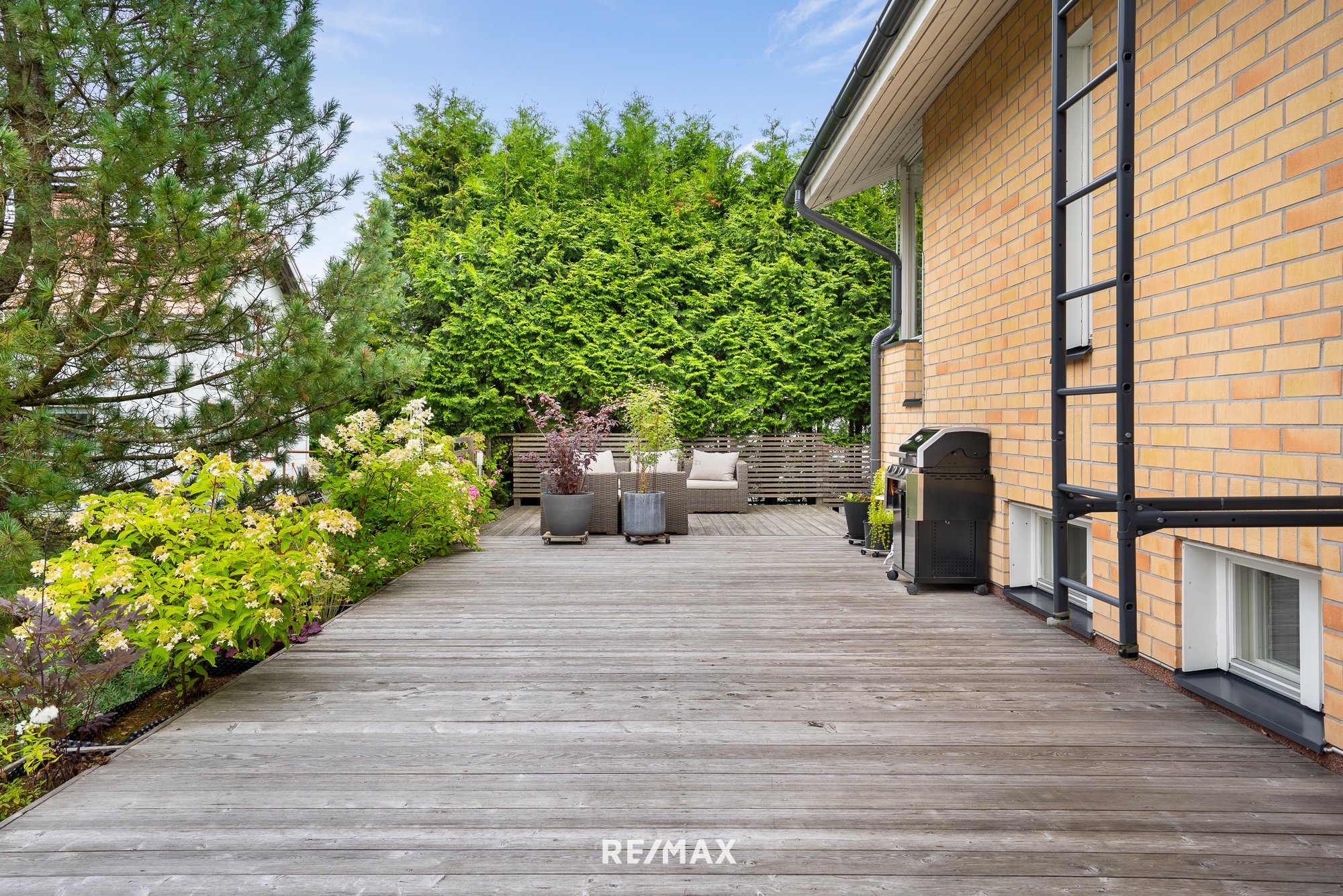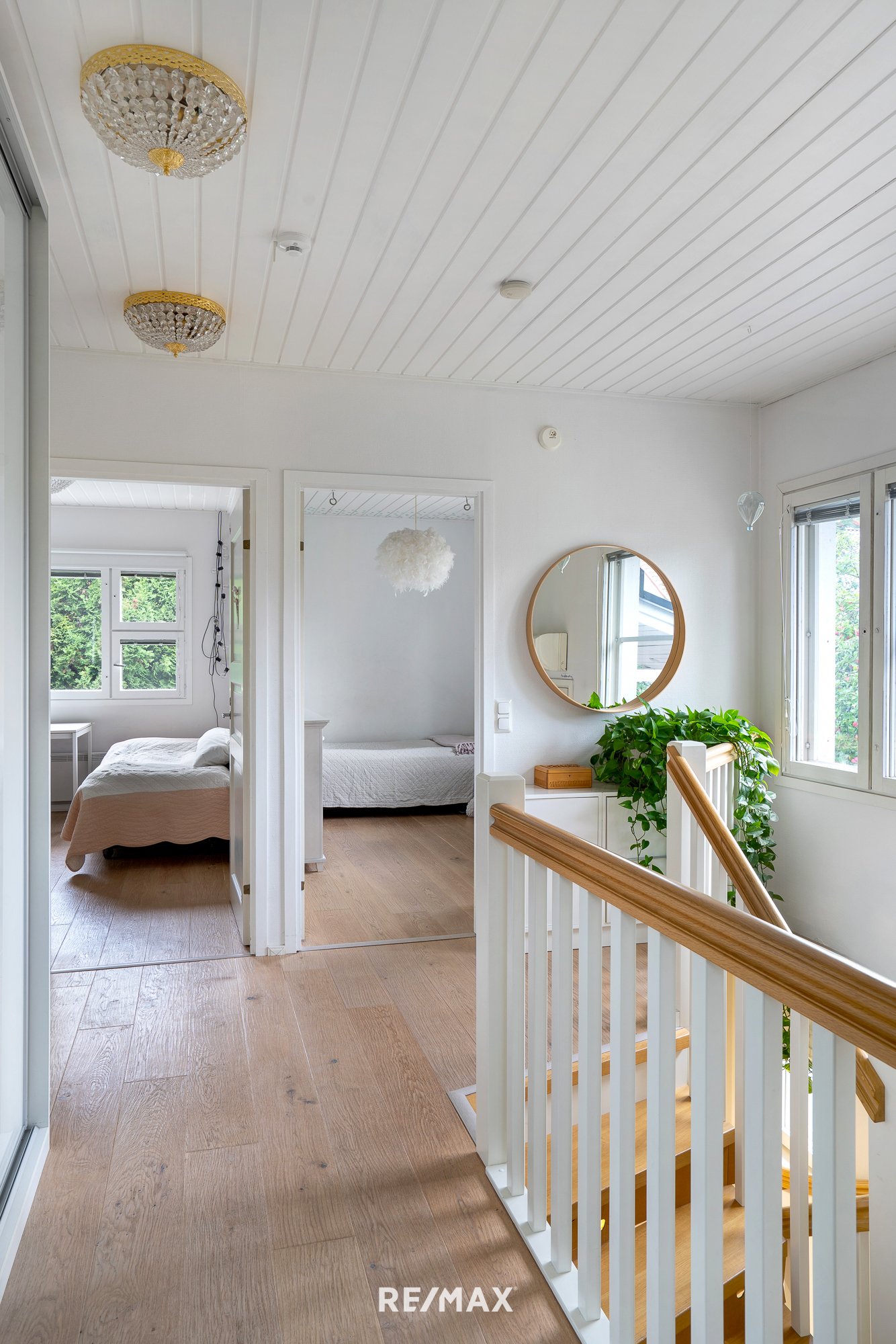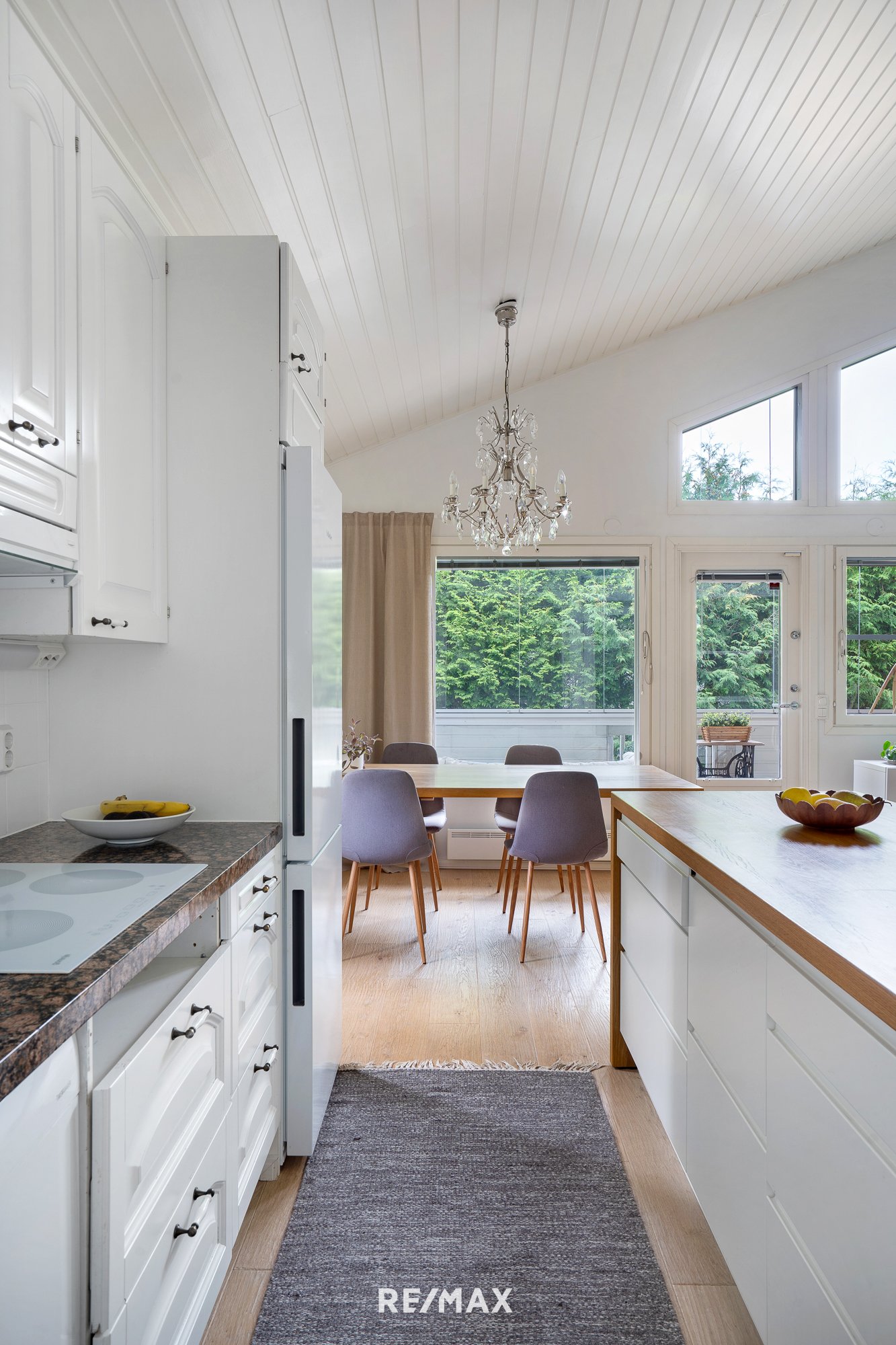 Koti on rakennettu vuonna 1989 ja siinä on kaksi kerrosta, jotka tarjoavat monipuoliset tilat perheen arkeen ja juhlaan. Valoisa olohuone ruokailutiloineen, tiiliseinä sekä noin viiden metrin huonekorkeus luovat ainutlaatuisen tunnelman, ja avokeittiö saarekkeineen tekee ruoanlaitosta nautinnon. Kaksi kylpyhuonetta ja sauna tarjoavat arjen luksusta, ja kodinhoitohuone sekä erillinen wc helpottavat perheen arkea. Alakerrassa sijaitsee tunnelmallinen takkahuone, joka kutsuu viettämään lämpimiä iltoja perheen kesken. Ilmalämpöpumpun avulla asunto pysyy viileänä kesähelteilläkin ja lämpenee energiatehokkaasti talvisin.