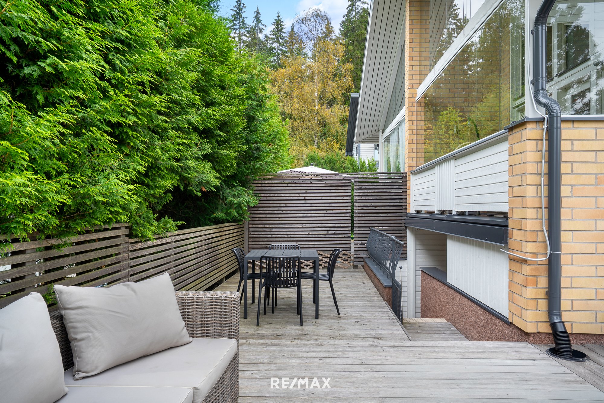Ulkotilat ovat vertaansa vailla: suuri, etelään suuntautuva ja suojaisa terassi kutsuu viettämään aikaa ulkona. Asunnolla on käytössään myös kahden auton pysäköintipaikka, jossa on sähköauton latausmahdollisuus.