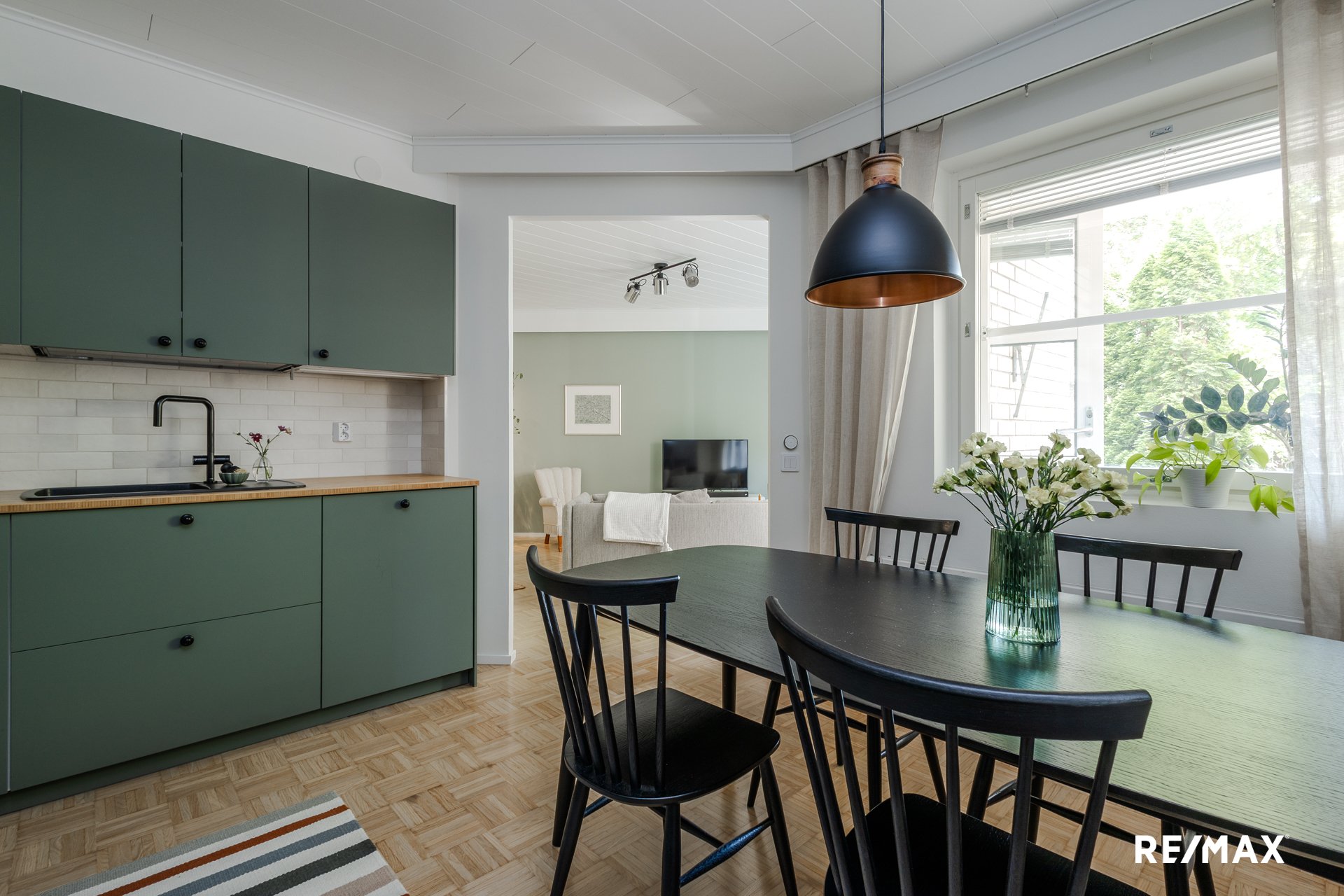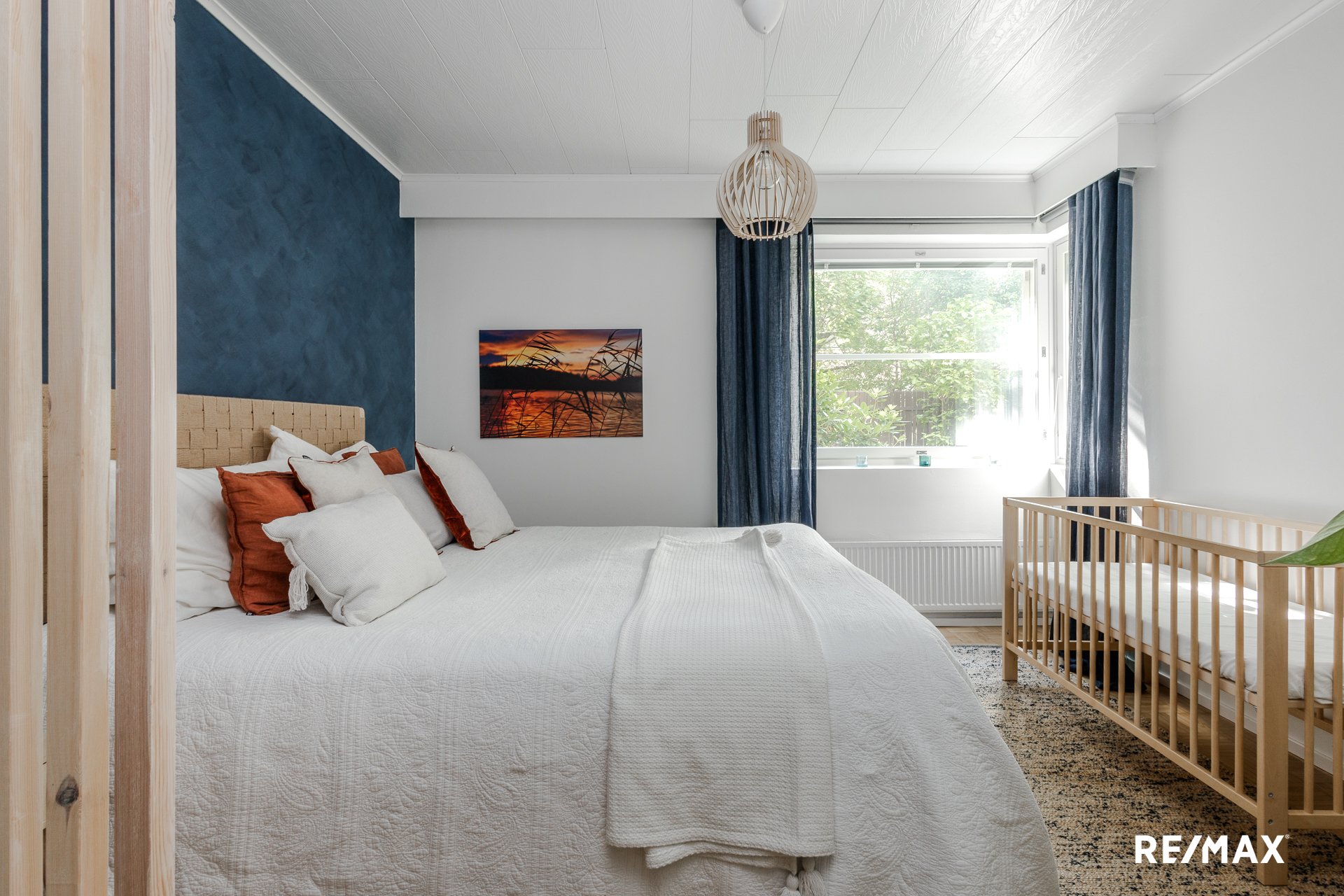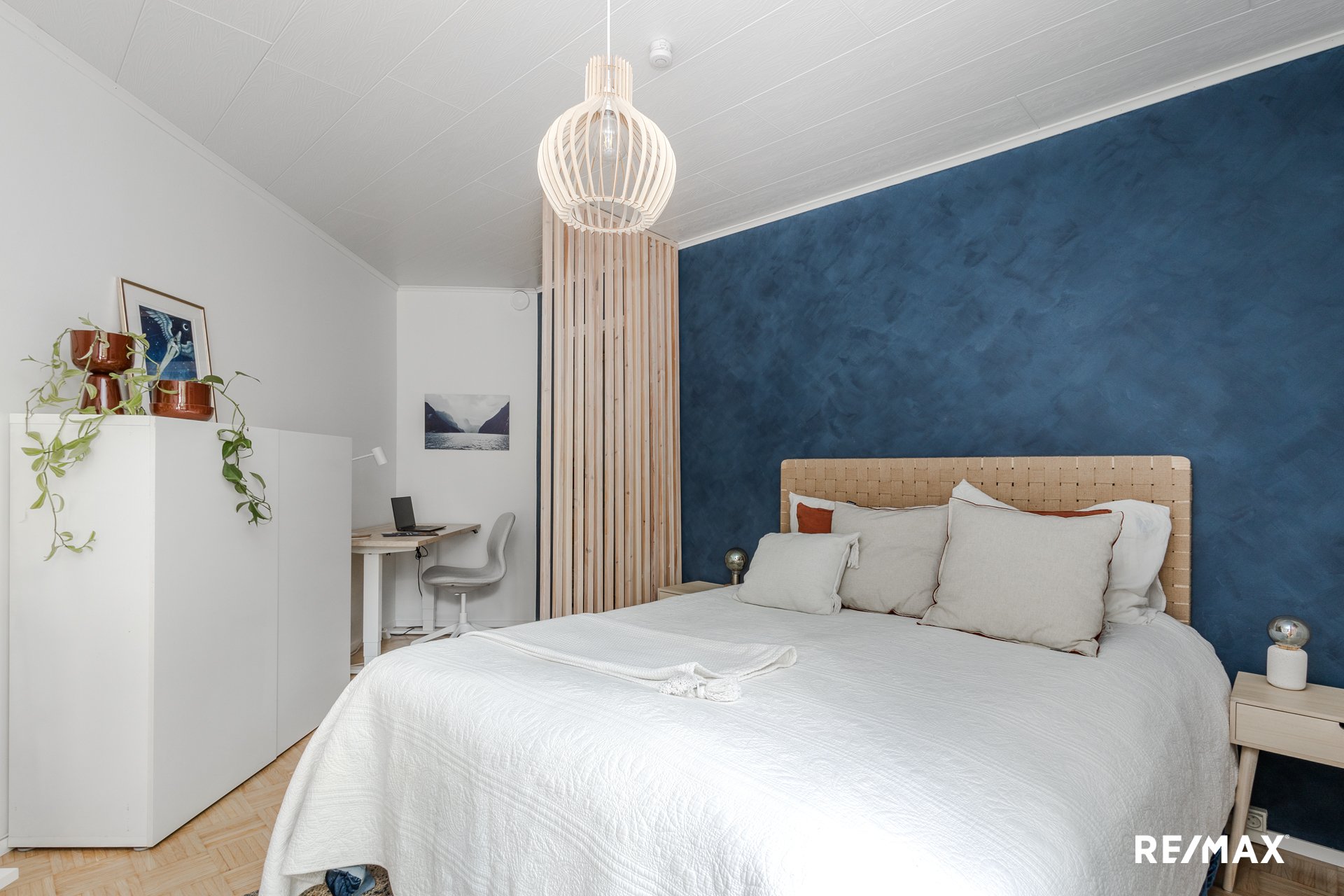 Olohuoneen ja modernin keittiön yhdistelmä on kodikas. Makuuhuoneessa on tilaa myös työpisteelle ja eteiskäytävällä suuret kaapistot sekä vaatehuone tarjoavat säilytystilaa. Reilun kokoinen kylpyhuone uusittiin v. 2013. Sauna, keittiö ja erillinen wc on remontoitu v. 2020-2022, jolloin myös kaikki pinnat on kunnostettu. Muuttamaan pääsee ilman remonttihuolia.
