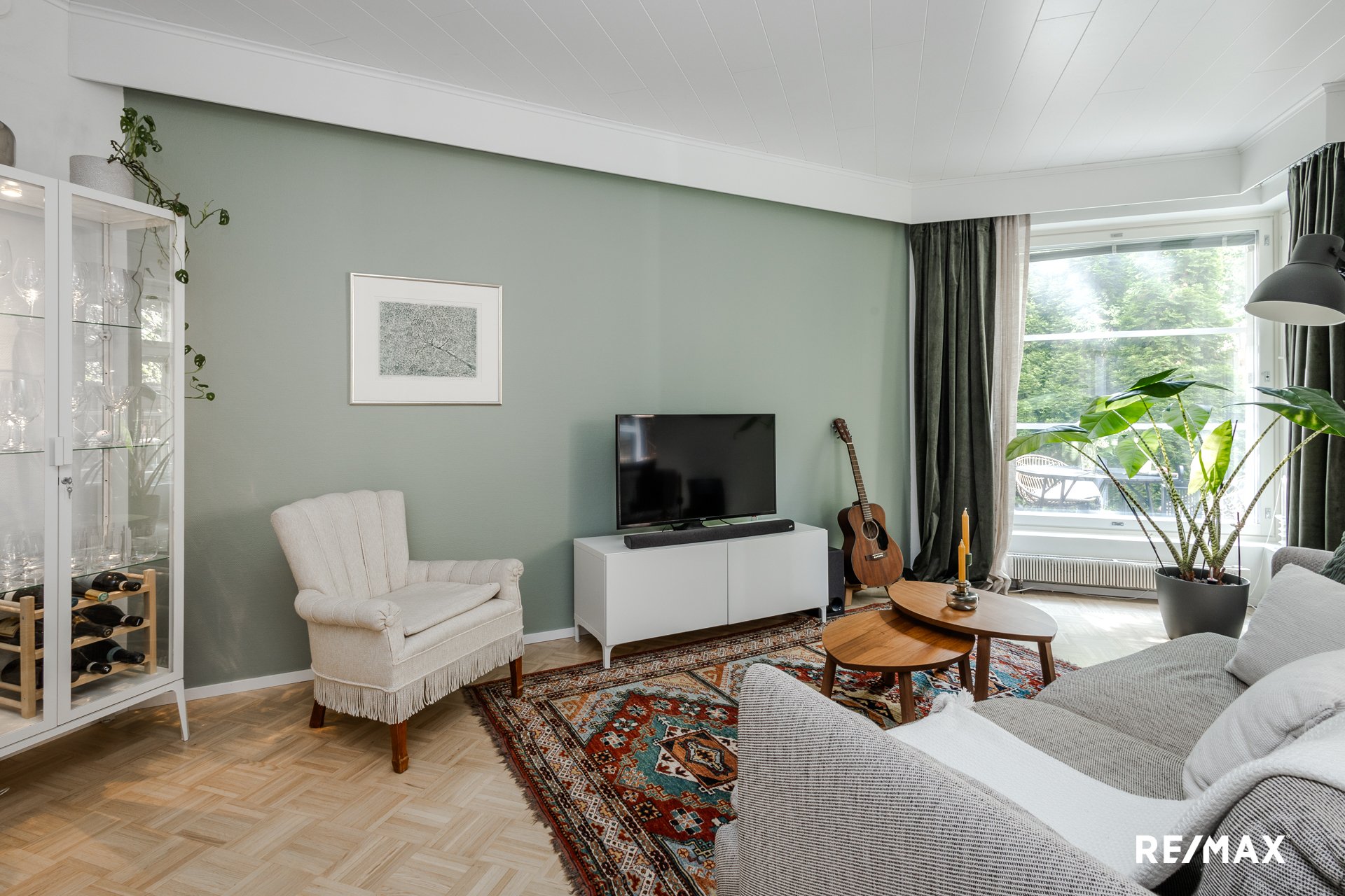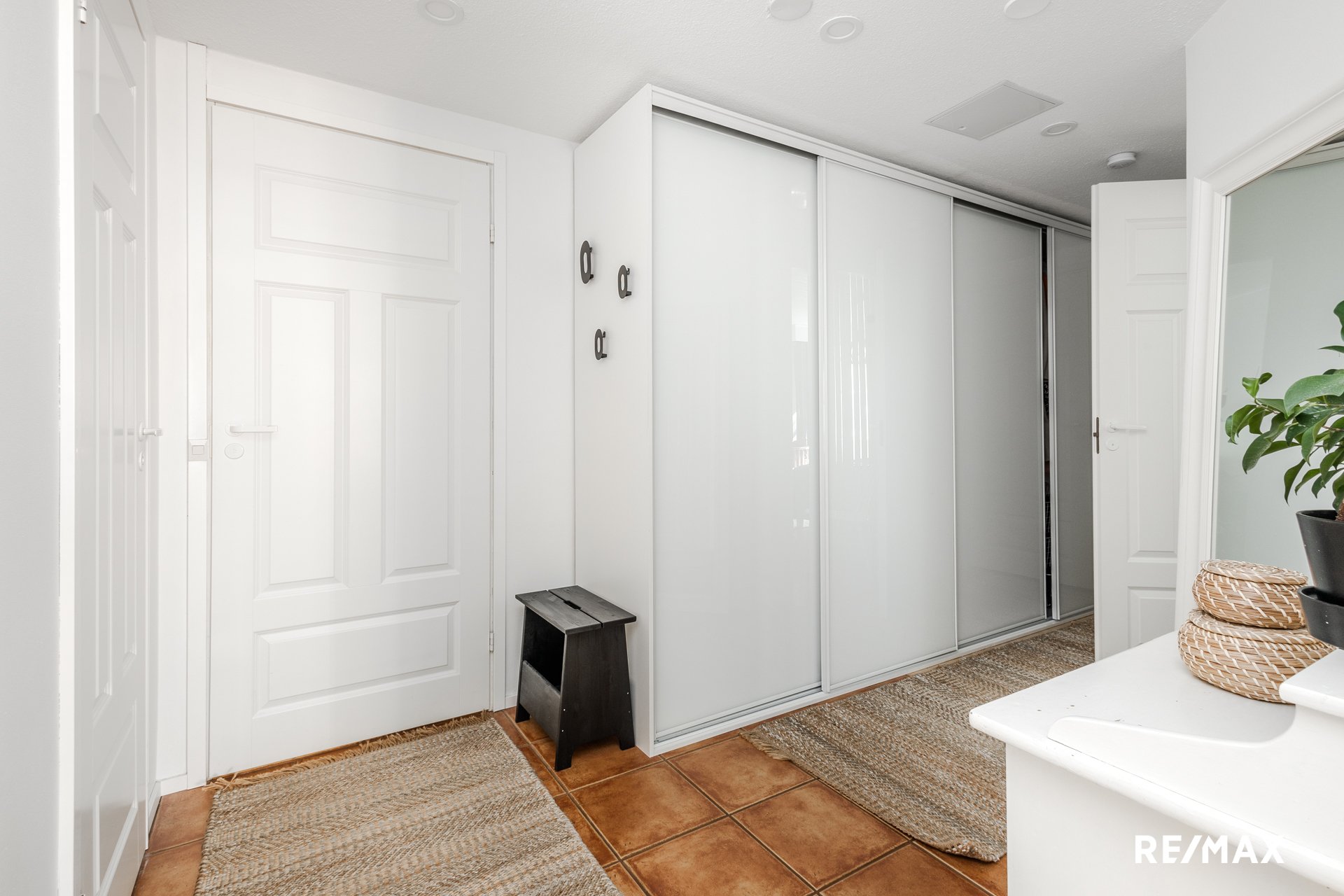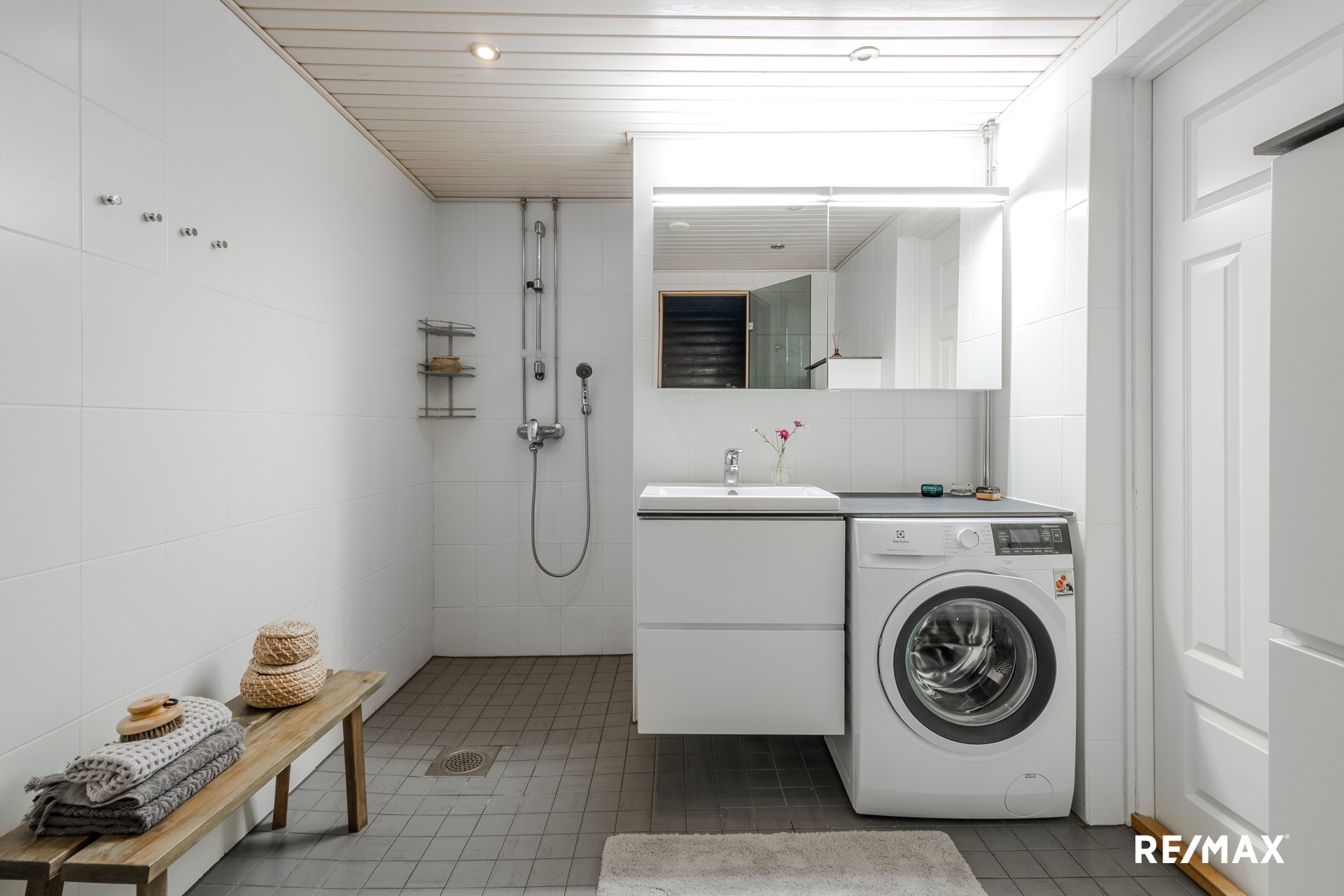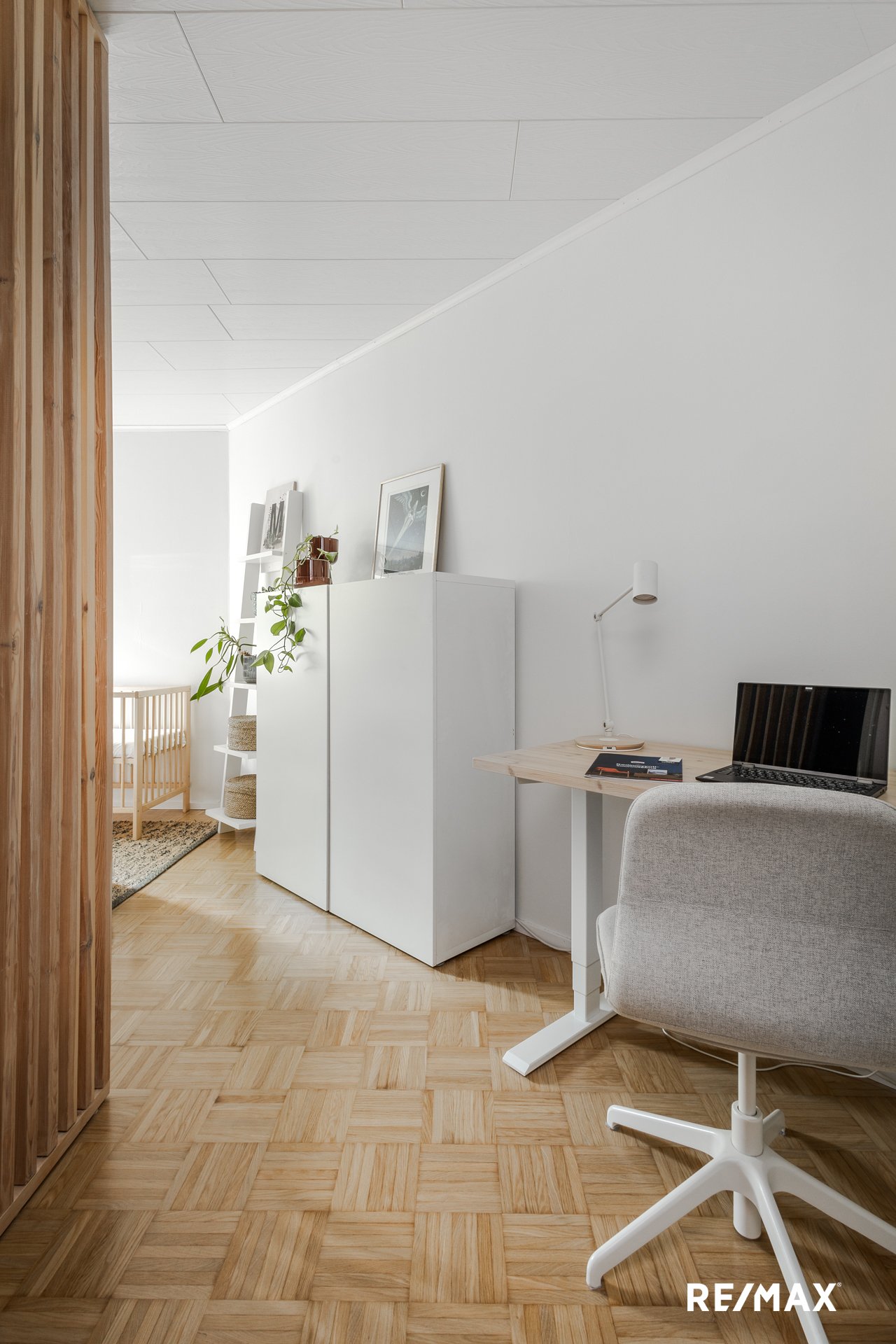 Olohuoneen ja modernin keittiön yhdistelmä on kodikas. Makuuhuoneessa on tilaa myös työpisteelle ja eteiskäytävällä suuret kaapistot sekä vaatehuone tarjoavat säilytystilaa. Reilun kokoinen kylpyhuone uusittiin v. 2013. Sauna, keittiö ja erillinen wc on remontoitu v. 2020-2022, jolloin myös kaikki pinnat on kunnostettu. Muuttamaan pääsee ilman remonttihuolia.