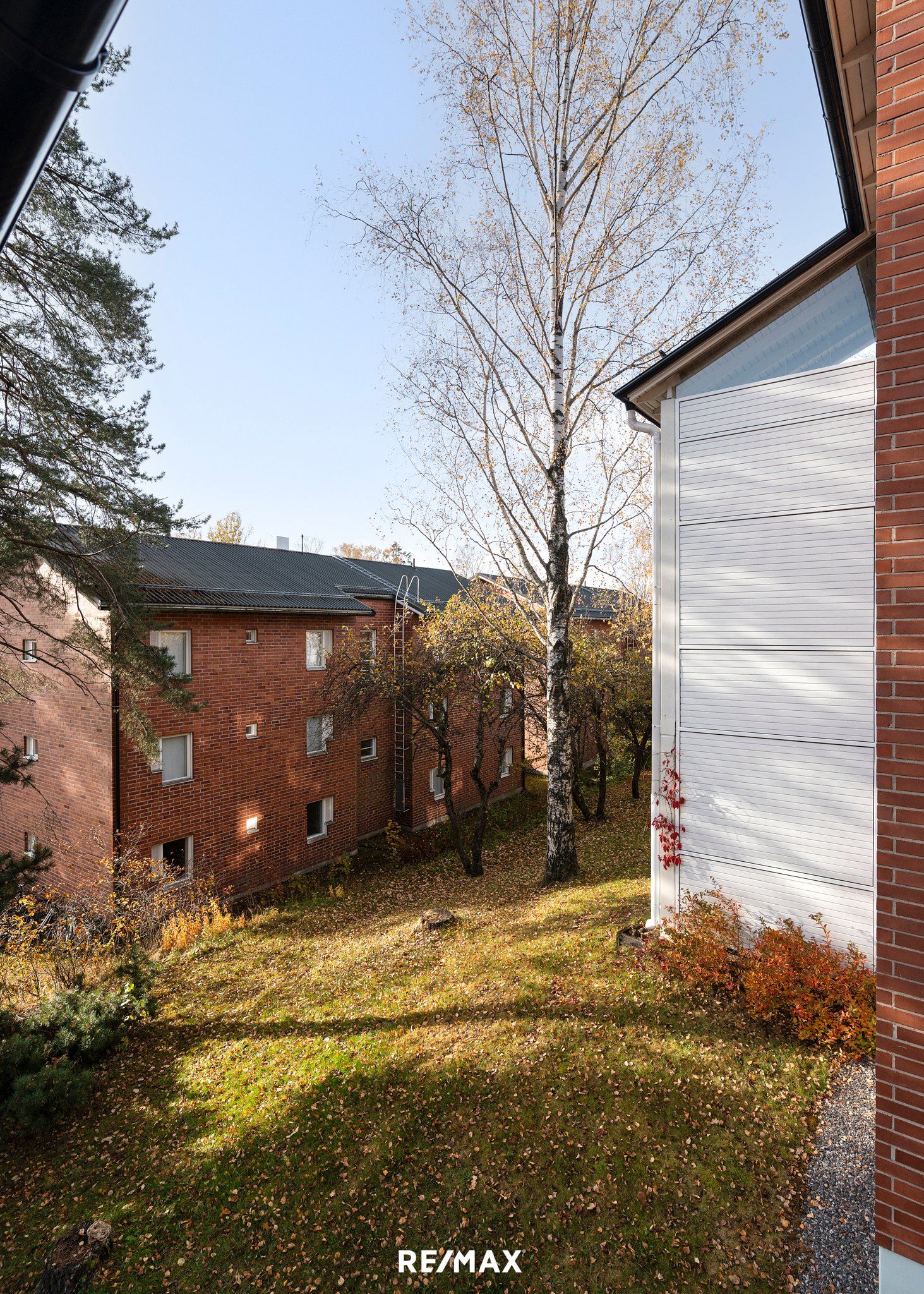 Asunto sijaitsee taloyhtiön toisessa kerroksessa, ja sen ikkunoista aukeaa avarat ja vehreät näkymät. Läpitalon huoneistoon tulee runsaasti luonnonvaloa sisään. Asunnon yläpuolella ei ole asuntoa ja ainut seinänaapuri on keittiön takana.