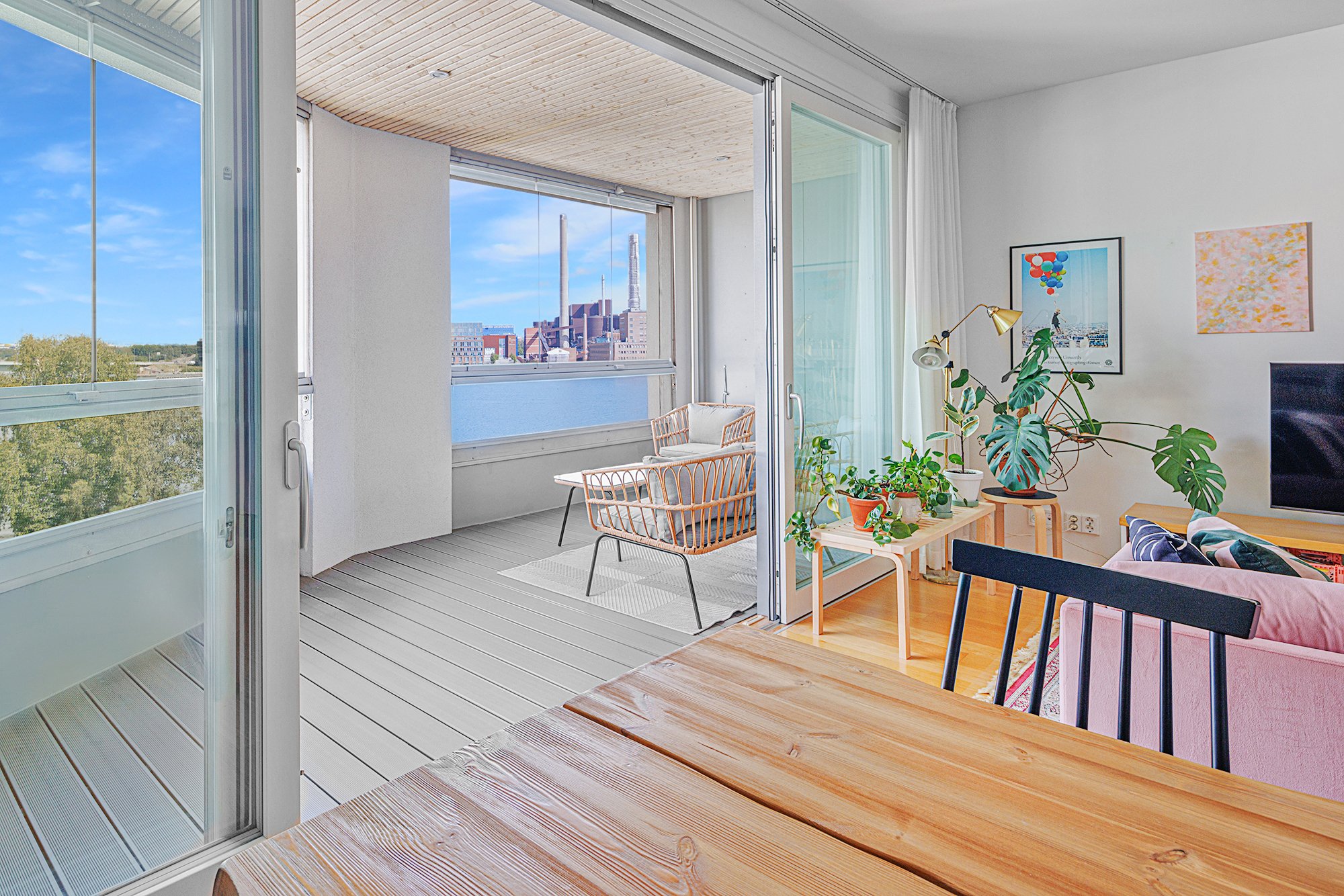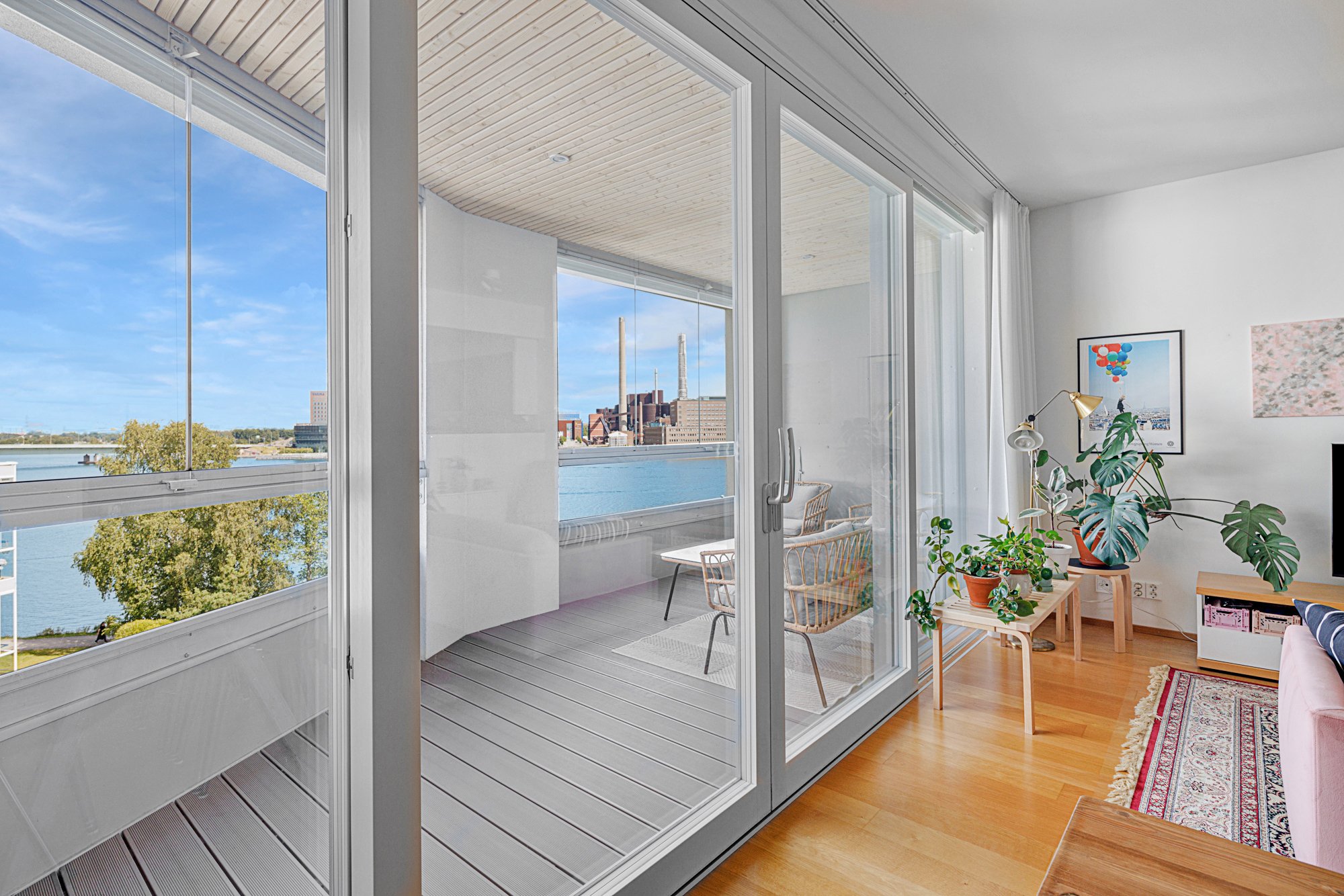 Tervetuloa kotiin, jossa merellinen rauha ja urbaani mukavuus sulautuvat saumattomasti. Lauttasaarentie 1:ssä, aivan sillan kupeessa, kohoaa tämä upea ja valoisa 90,5 m2:n kolmio viidennessä kerroksessa – kodiksi rakennettu vuonna 2016, Hartelan laadukkaalla otteella. Lasitetulta parvekkeelta avautuva merimaisema tekee tästä kodista poikkeuksellisen: maisema ei ole vain näkymä, vaan osa arkea.