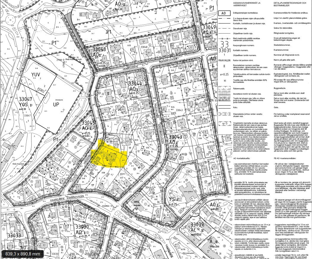Tontti myydään kokonaisuutena tai määräosina. Tontin pinta-ala on 1 945 m2. Asemakaavan mukaan rakennusoikeus on e=0,25, jolloin kokonaiskerrosala voi olla n. 486 m2. Mikäli tontille rakennetaan kolme omakotitaloa, niin kokonaiskerrosala per määräosa on n. 162 m2. Erikseen myytävien määräosien hinta on 199 000 € per määräosa.