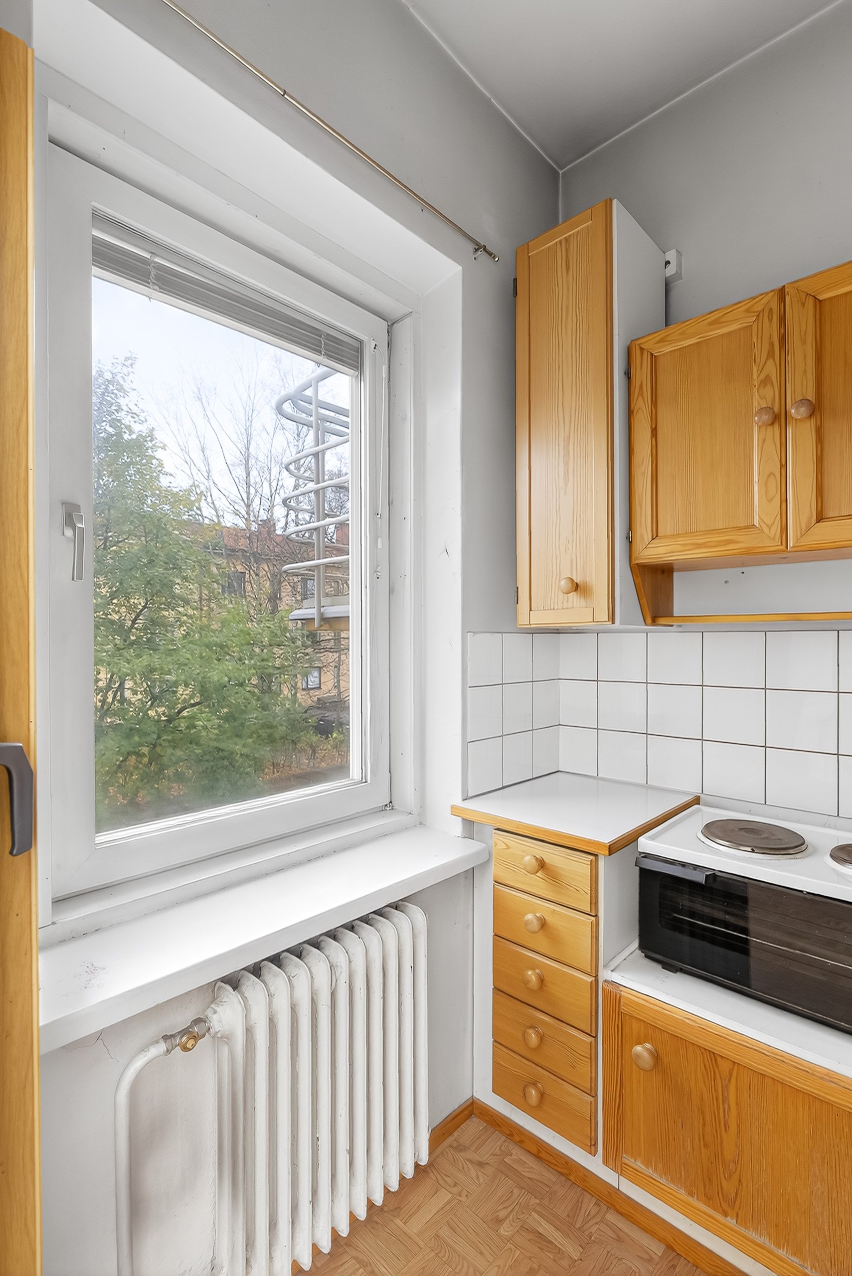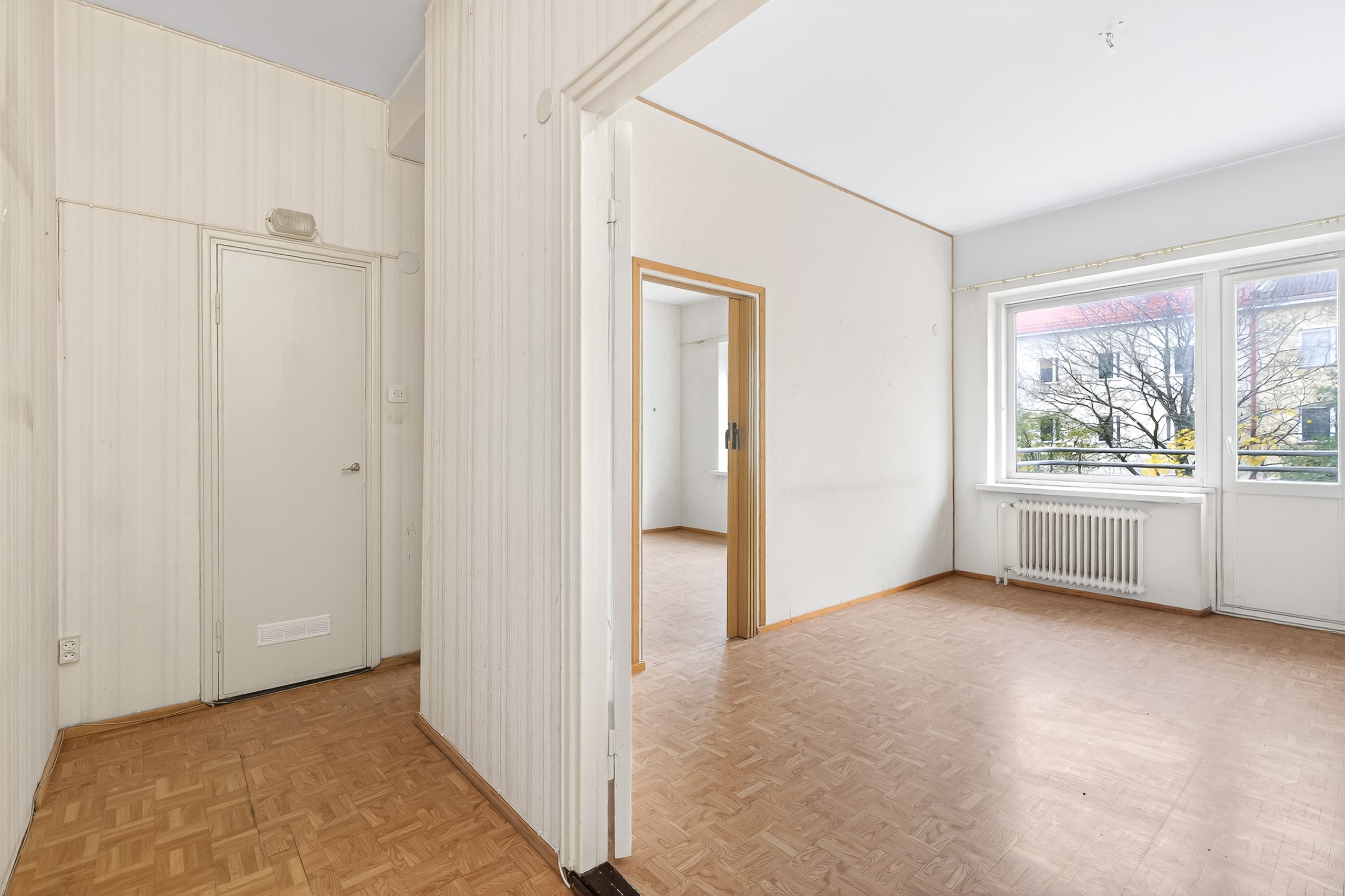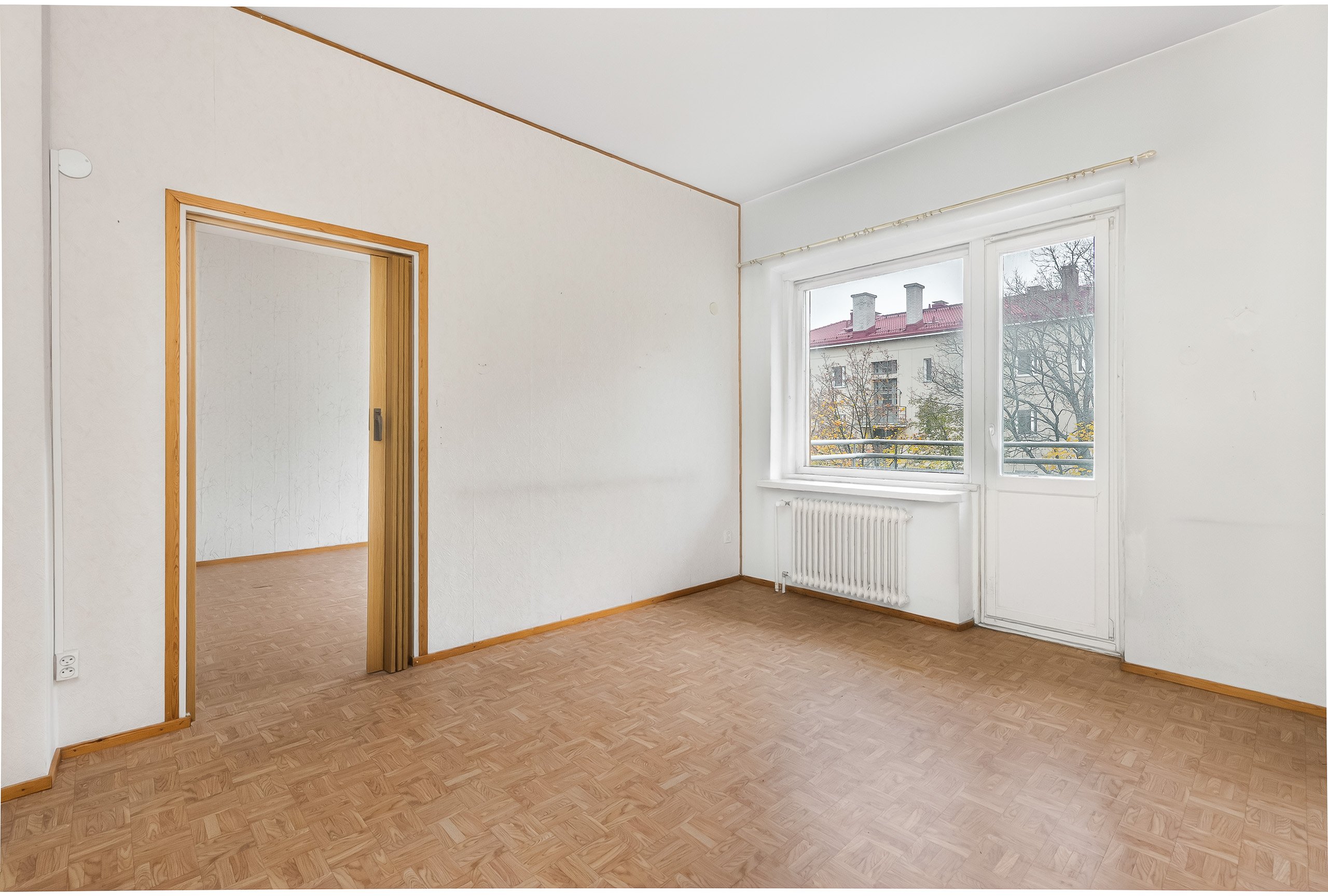 Tämä peruskuntoinen asunto tarjoaa loistavan mahdollisuuden remontoida ja luoda juuri sellaisen kodin kuin haluat. Taloyhtiö on hyvässä kunnossa ja siinä on tehty suurimmat peruskorjaukset, kuten putket, julkisivut ja ikkunat sekä katto. Asunnossa on kaksi hyvän kokoista huonetta, keittokomero, kylpyhuone ja parveke. Asunnon suurista ikkunoista tulvii runsaasti valoa.