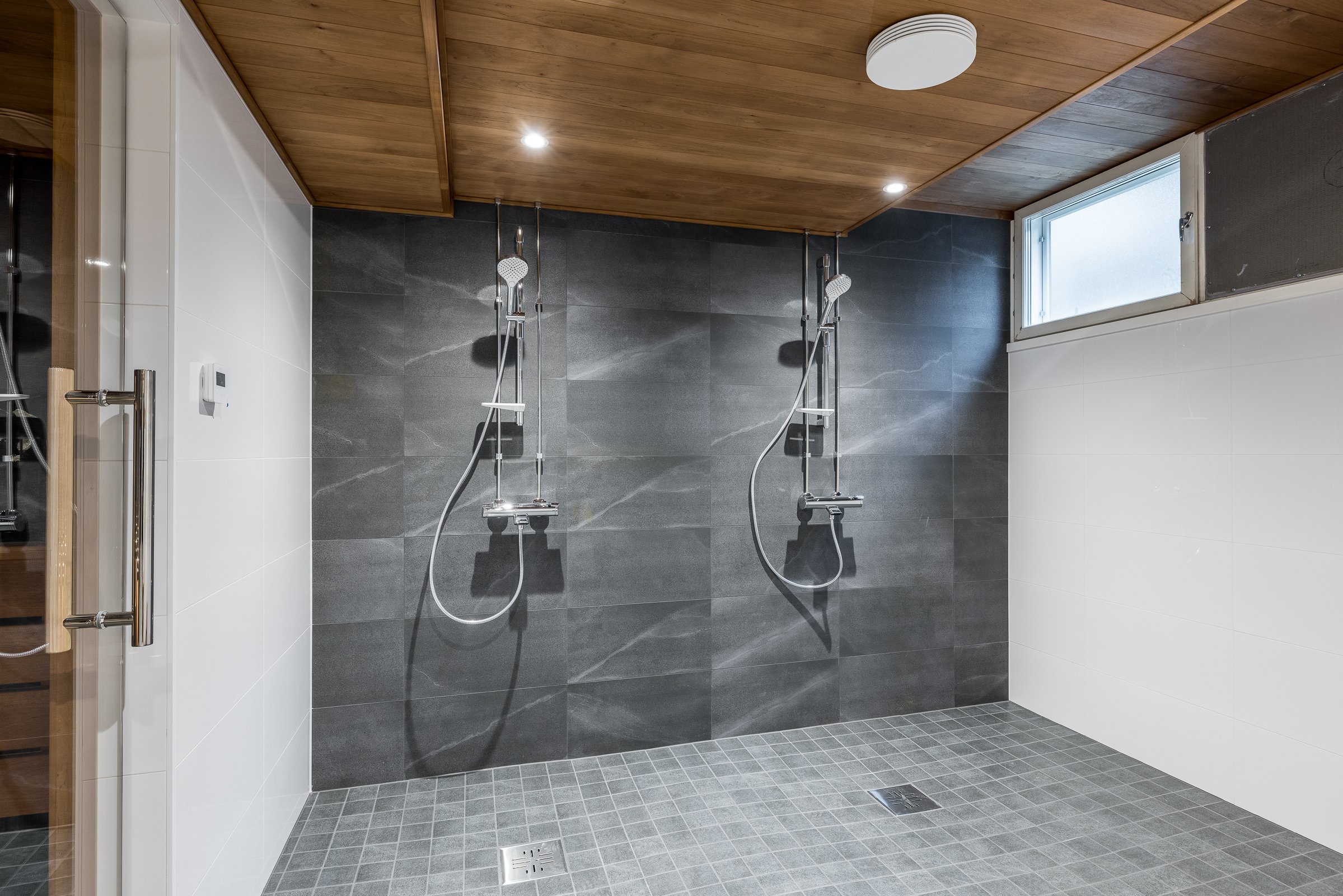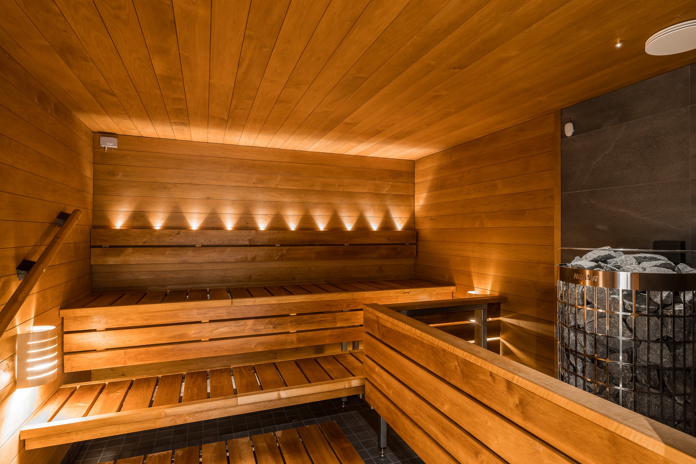 Taloyhtiön saunat uusittu putkiremontin yhteydessä 2025, saunatilojen yhteydessä vilvoittelualue.