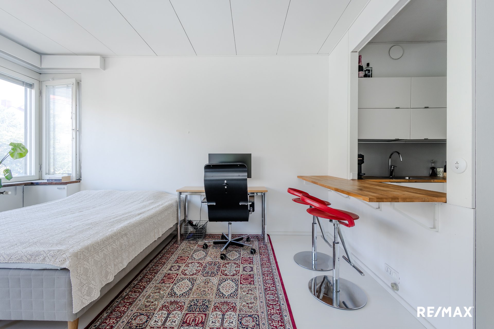 Valoisa kompakti yksiö Munkkiniemen viehättävässä kaupunginosassa, Huopalahdentien varrella! Tässä kolmannen kerroksen asunnossa on runsaasti luonnonvaloa ja neliöt on hyödynnetty hyvin.