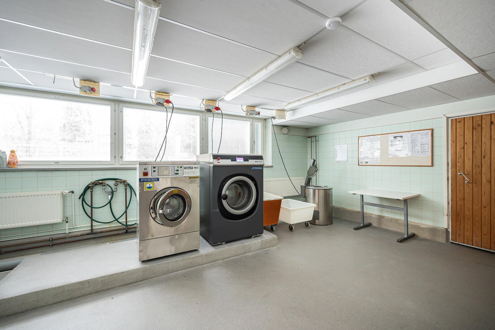 Urheiluvälinevarasto, väestönsuoja, kellarikomero, mankeli ja pesutupa