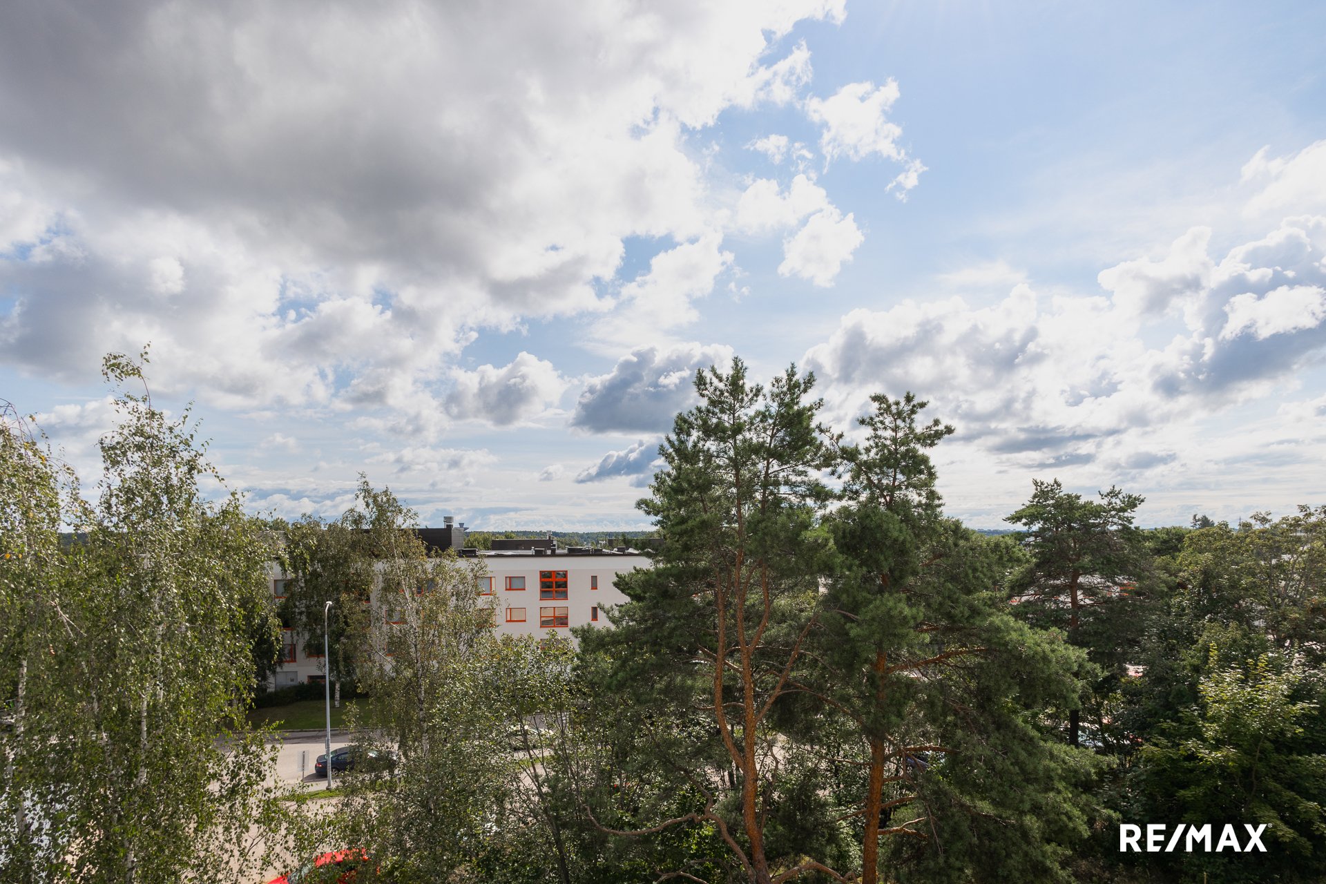 Ylimmän kerroksen läpitalon huoneisto, jonka ikkunoista ja parvekkeelta on puistomaiset ja avarat näkymät pitkälle ympäristöön.