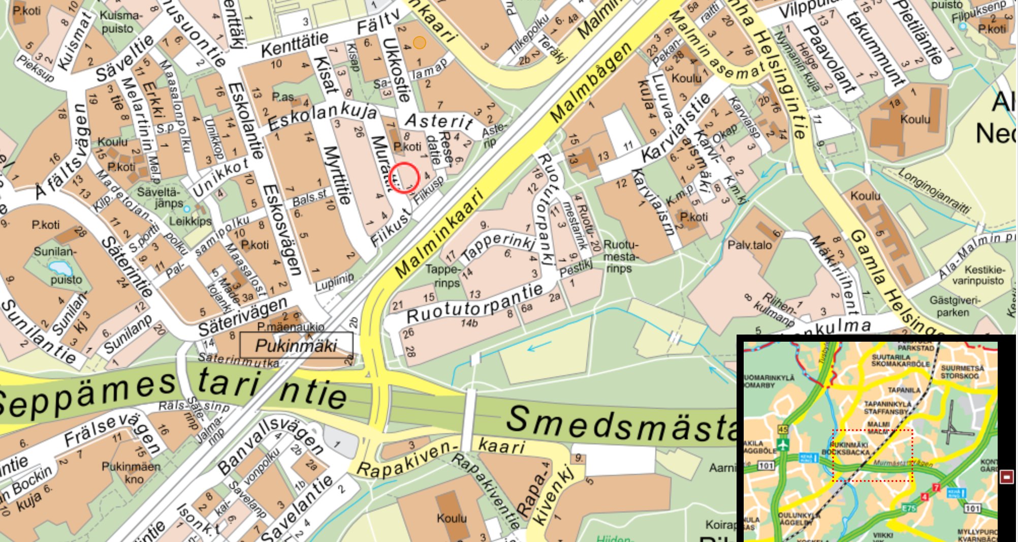 Alueella on useita päiväkoteja, myös ruotsinkielinen sekä Pukinmäen peruskoulu.