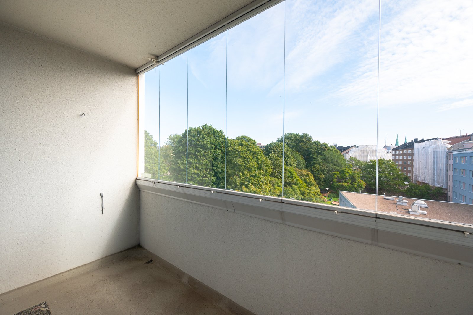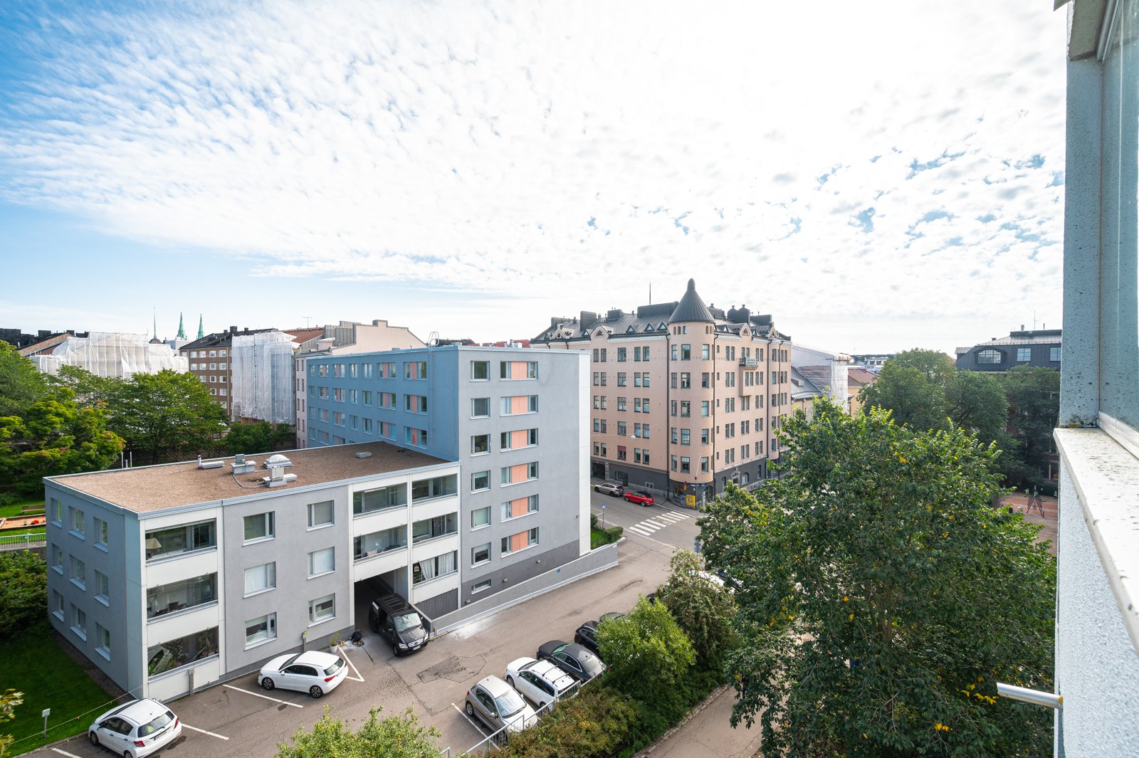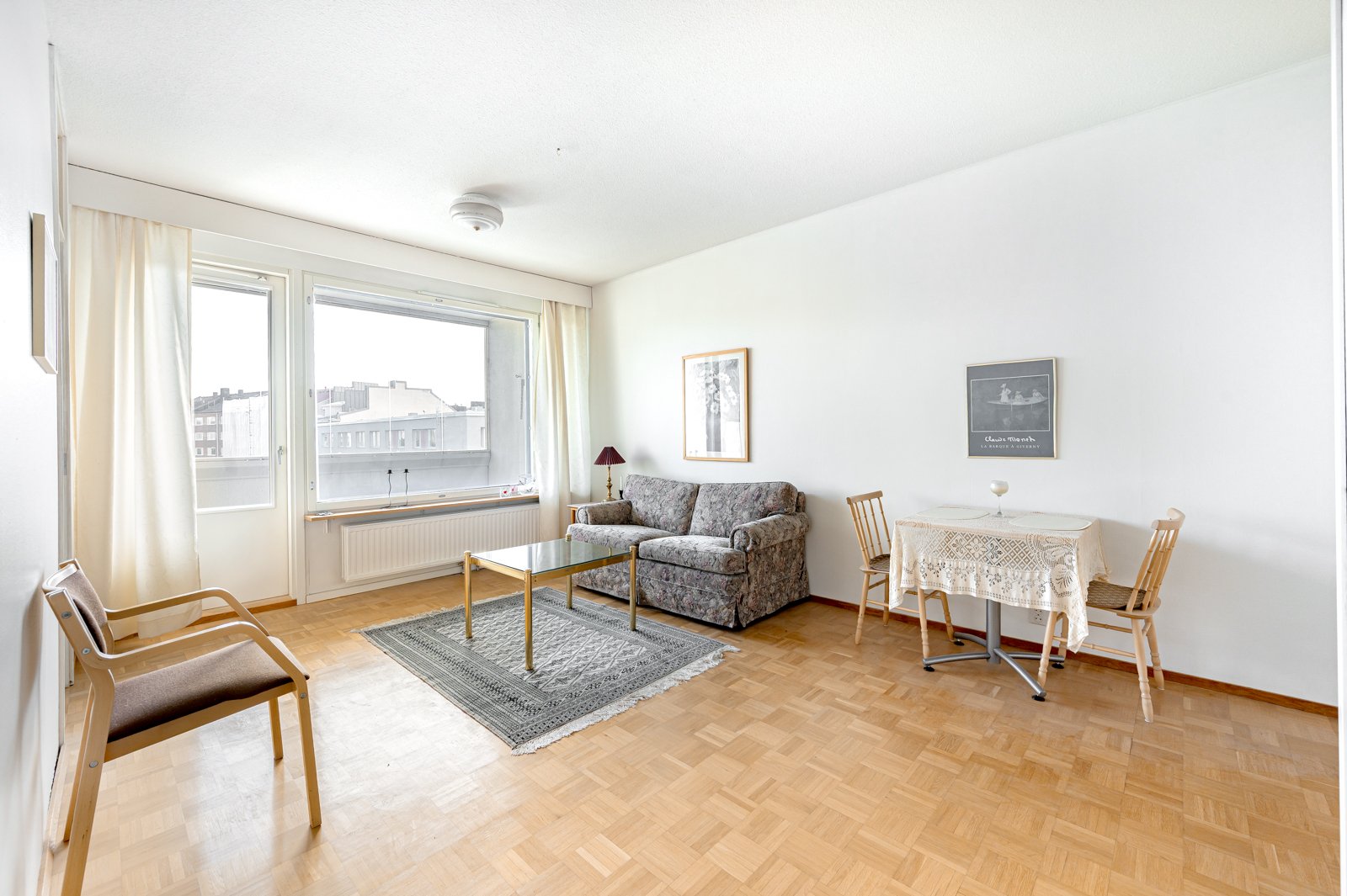 Ylimmän kerroksen (6/6) city-koti trendikkään ja tavoitellun Punavuoren ytimestä! Tämän kaksion pohja on näppärä ja sille kuuluu oma lasitettu parveke, joka katselee osittain Koffin puiston suuntaan. Edessä ei ole taloja, joten valo pääsee sisälle isossa määrin.