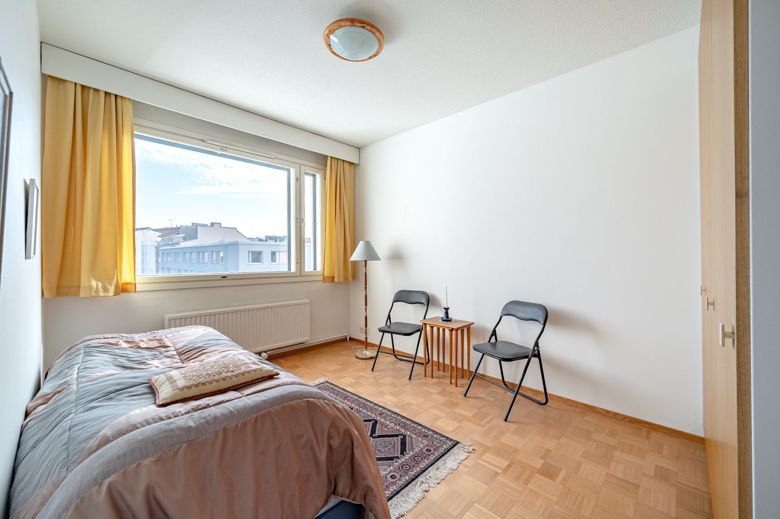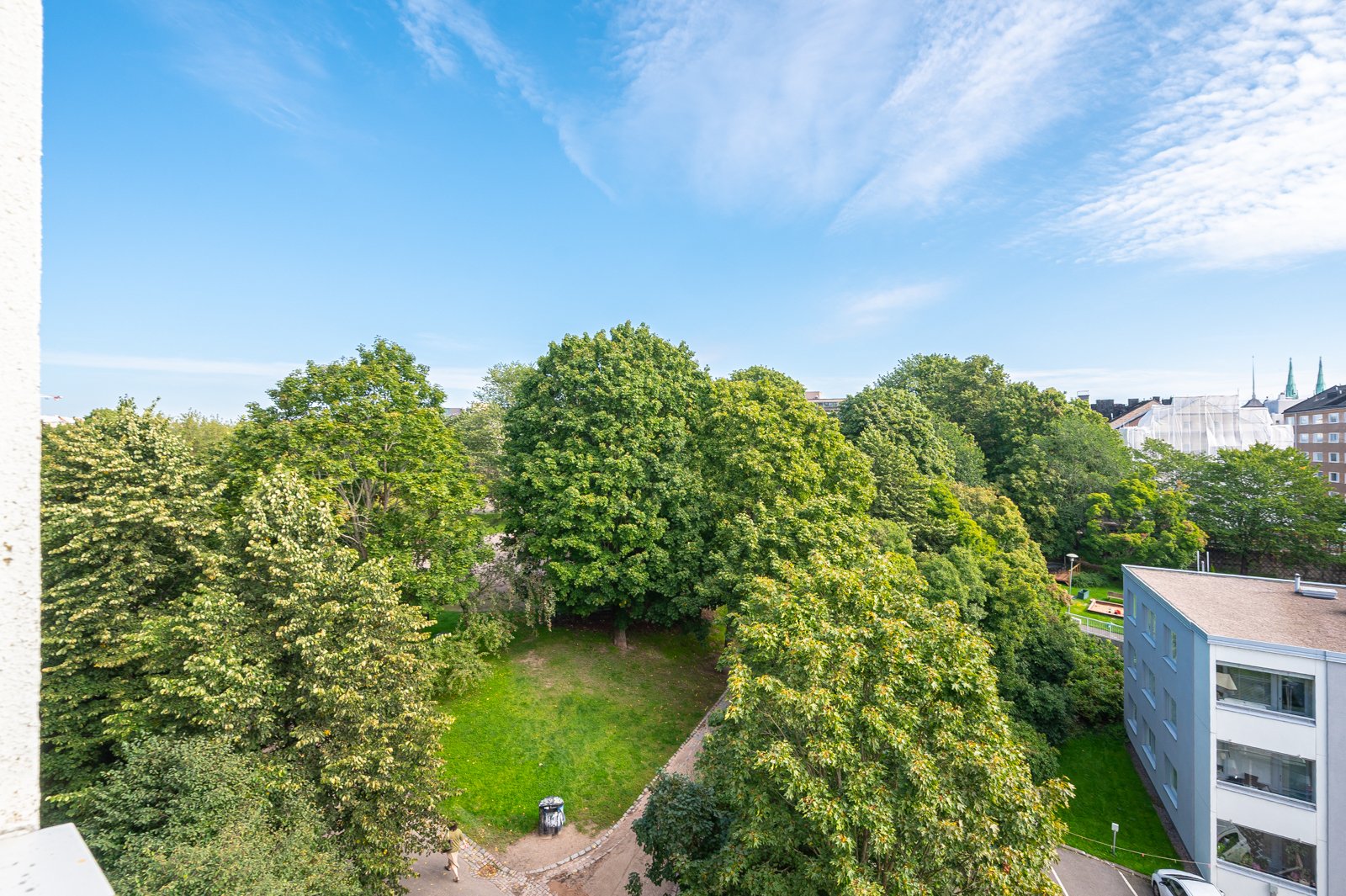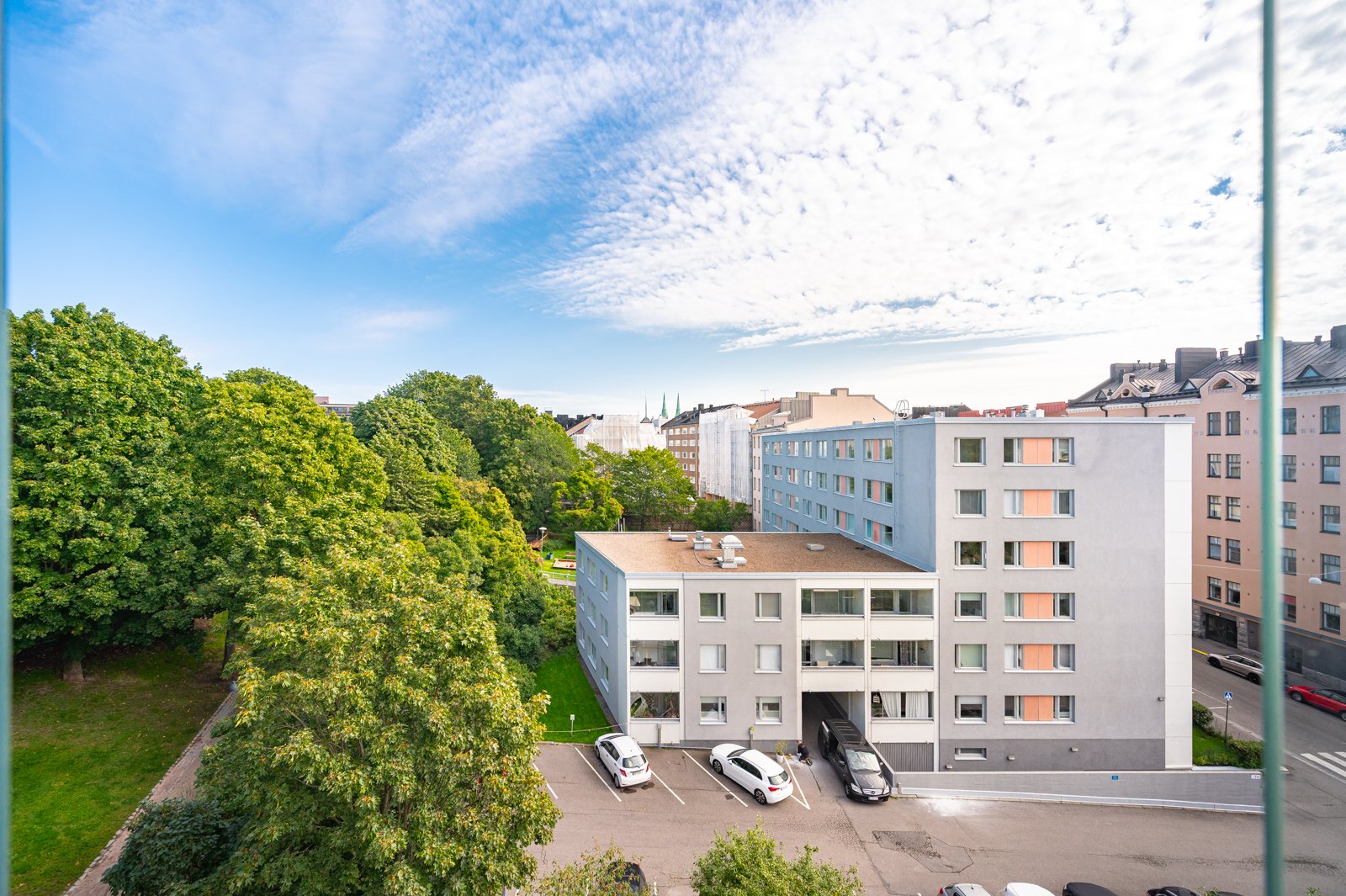 Ylimmän kerroksen (6/6) city-koti trendikkään ja tavoitellun Punavuoren ytimestä! Tämän kaksion pohja on näppärä ja sille kuuluu oma lasitettu parveke, joka katselee osittain Koffin puiston suuntaan. Edessä ei ole taloja, joten valo pääsee sisälle isossa määrin.