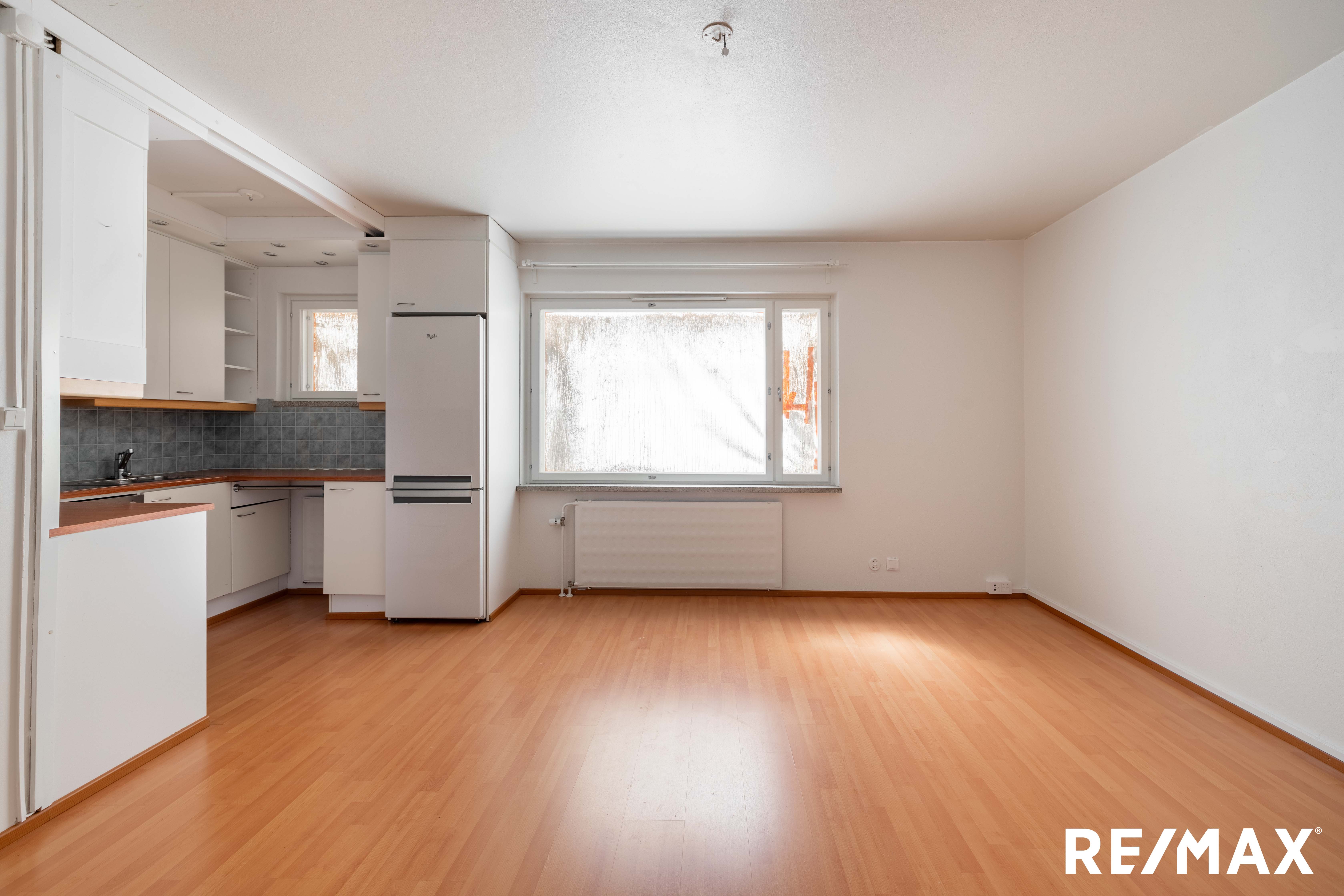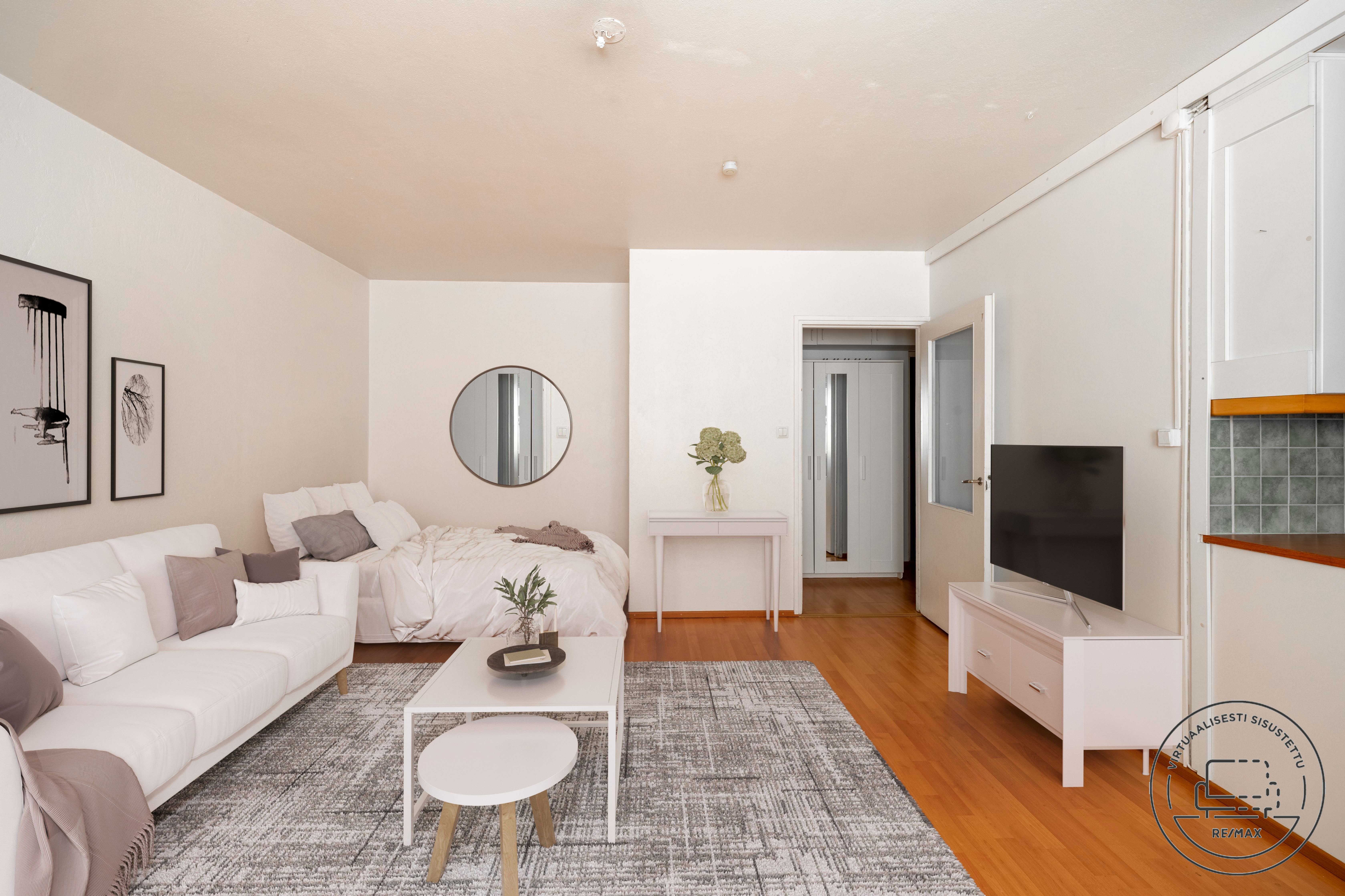 Siistissä ja valoisassa asunnossa on tilava huone ja alkovi, ikkunallinen keittokomero ja remontoitu kylpyhuone sekä vaatehuone.