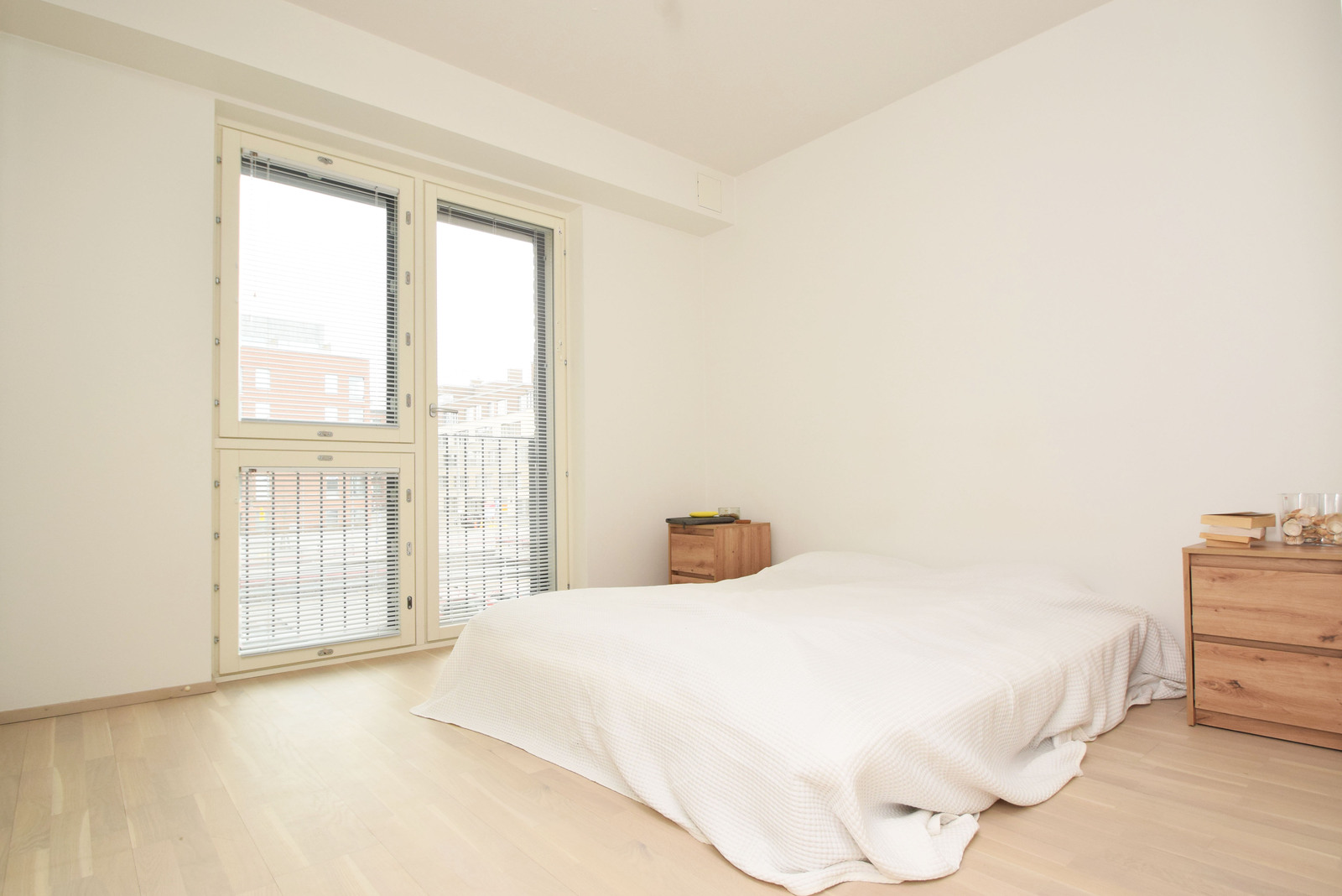 A modern, bright and almost brand new two-room apartment with partial sea view on sale! From the French balcony, you can see also the Mustikkamaa and the Kalasatama canal.