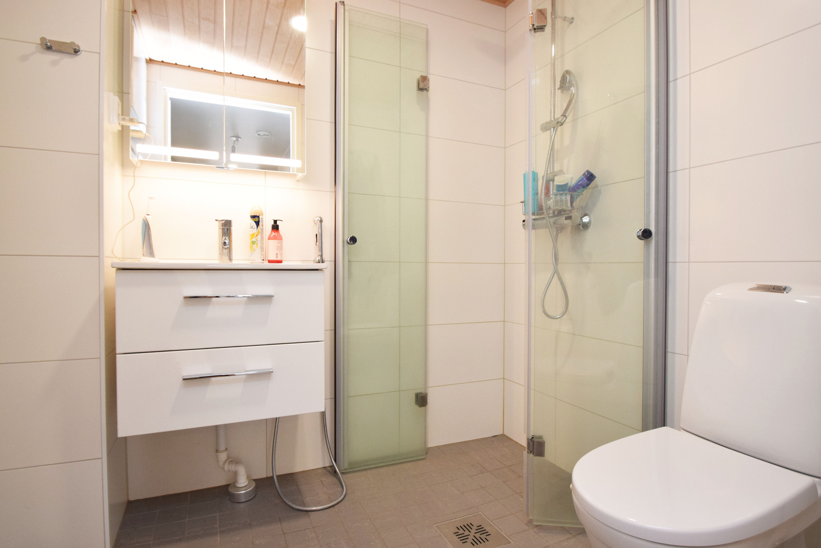 Vuonna 2019 valmistuneen asunnon materiaalivalinnat ovat laadukkaita ja ratkaisut moderneja. .