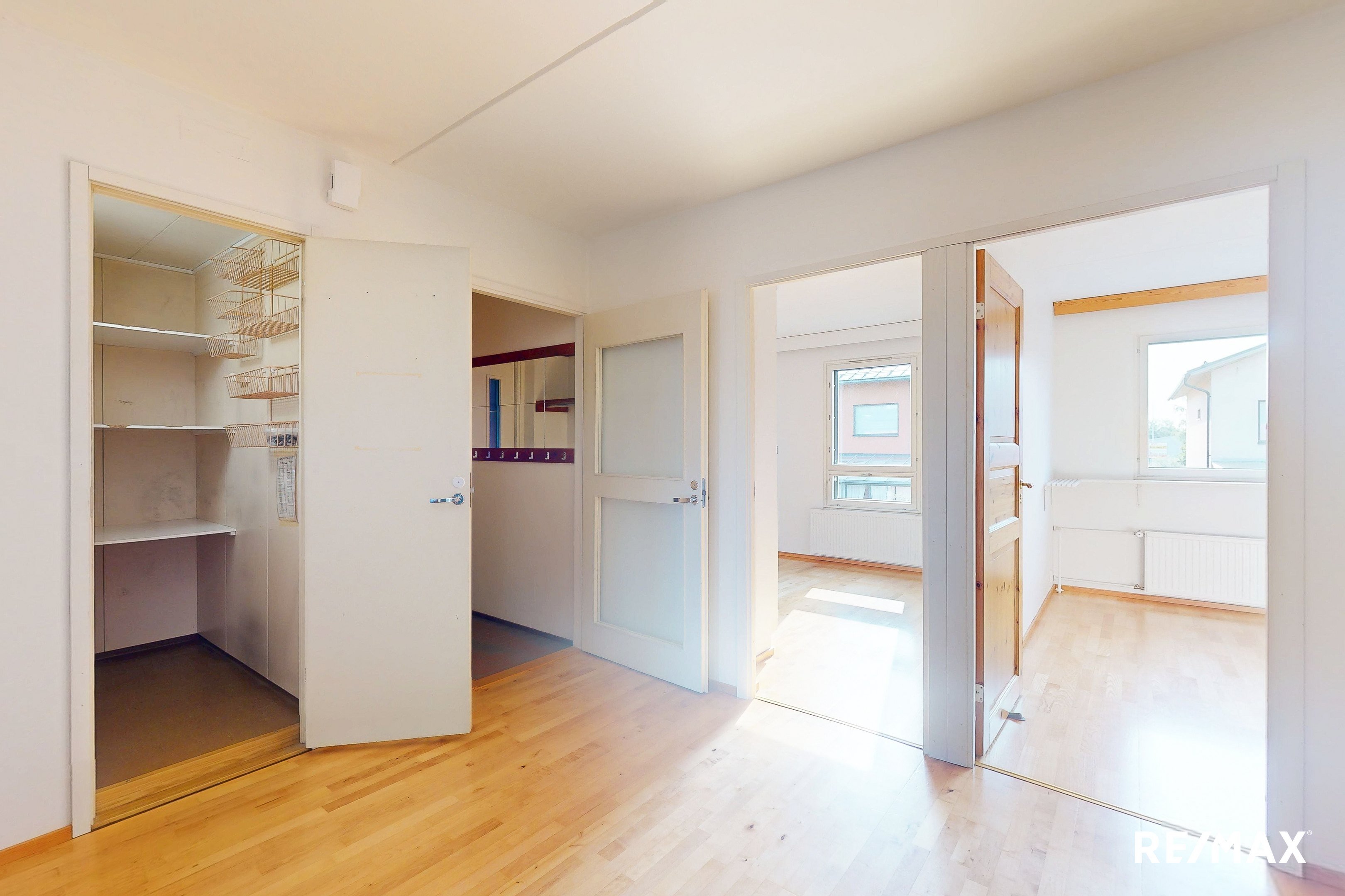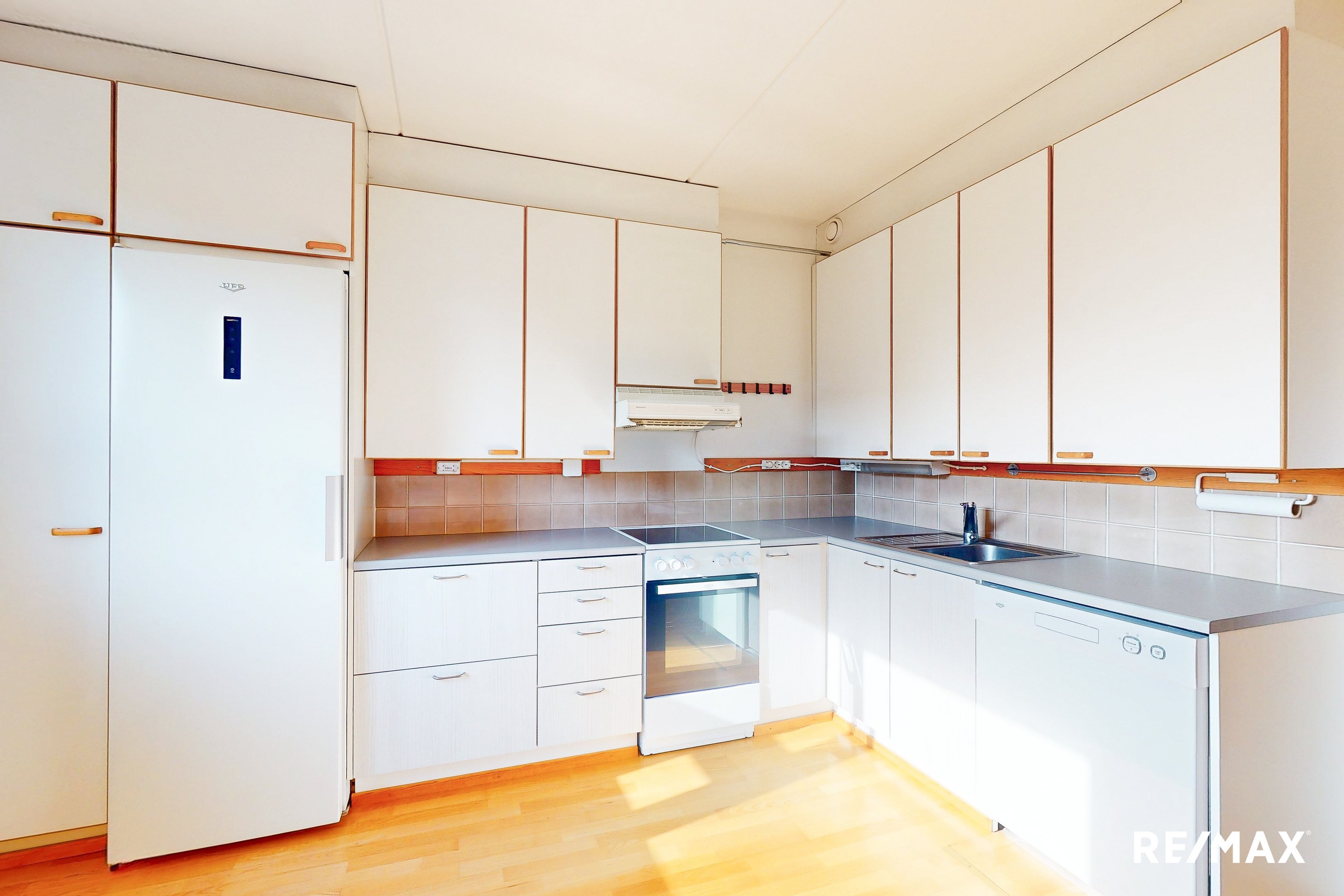 Huoneistossa on kaksi tilavaa makuuhuonetta, jotka tarjoavat runsaasti tilaa perheen tarpeisiin. Parvekkeella voi nauttia kesäpäivistä ja se on lasitettu, mikä pidentää käyttöaikaa keväästä syksyyn. Keittiö on valoisa ja tilava, ja sinne mahtuu hyvin ruokailualue. Kylpyhuoneessa on lattialämmitys, mikä tuo mukavuutta erityisesti talvella.