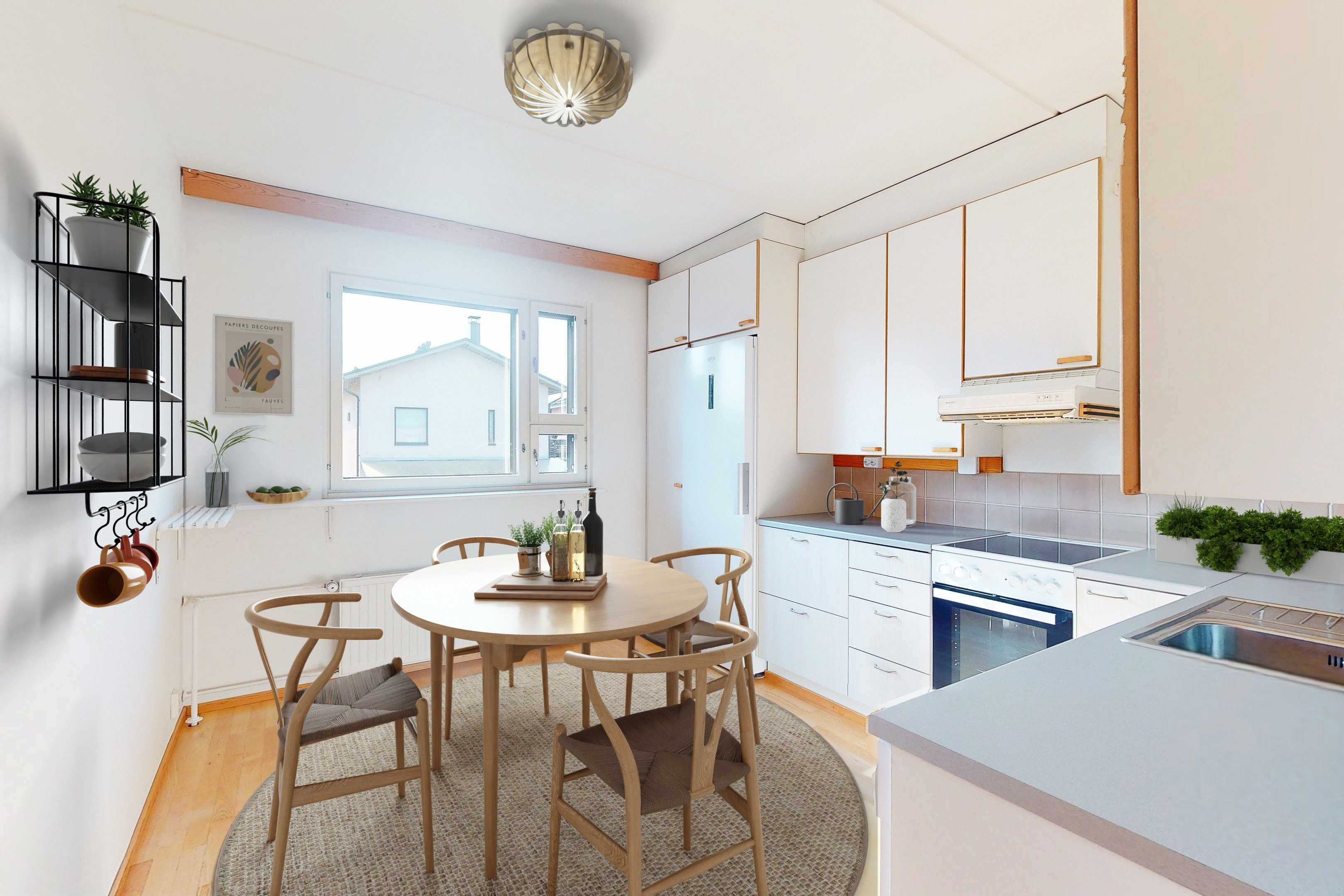 Tämä viihtyisä kolmio tarjoaa loistavat puitteet perheasumiseen rauhallisella Suutarilan alueella Helsingissä. Asunnon keittiöstä avautuvat itään suuntautuvat näkymät, kun taas olohuone ja parveke tarjoavat länteen suuntautuvat maisemat, jotka luovat mukavaa valoisuutta ja avaruutta tiloihin.