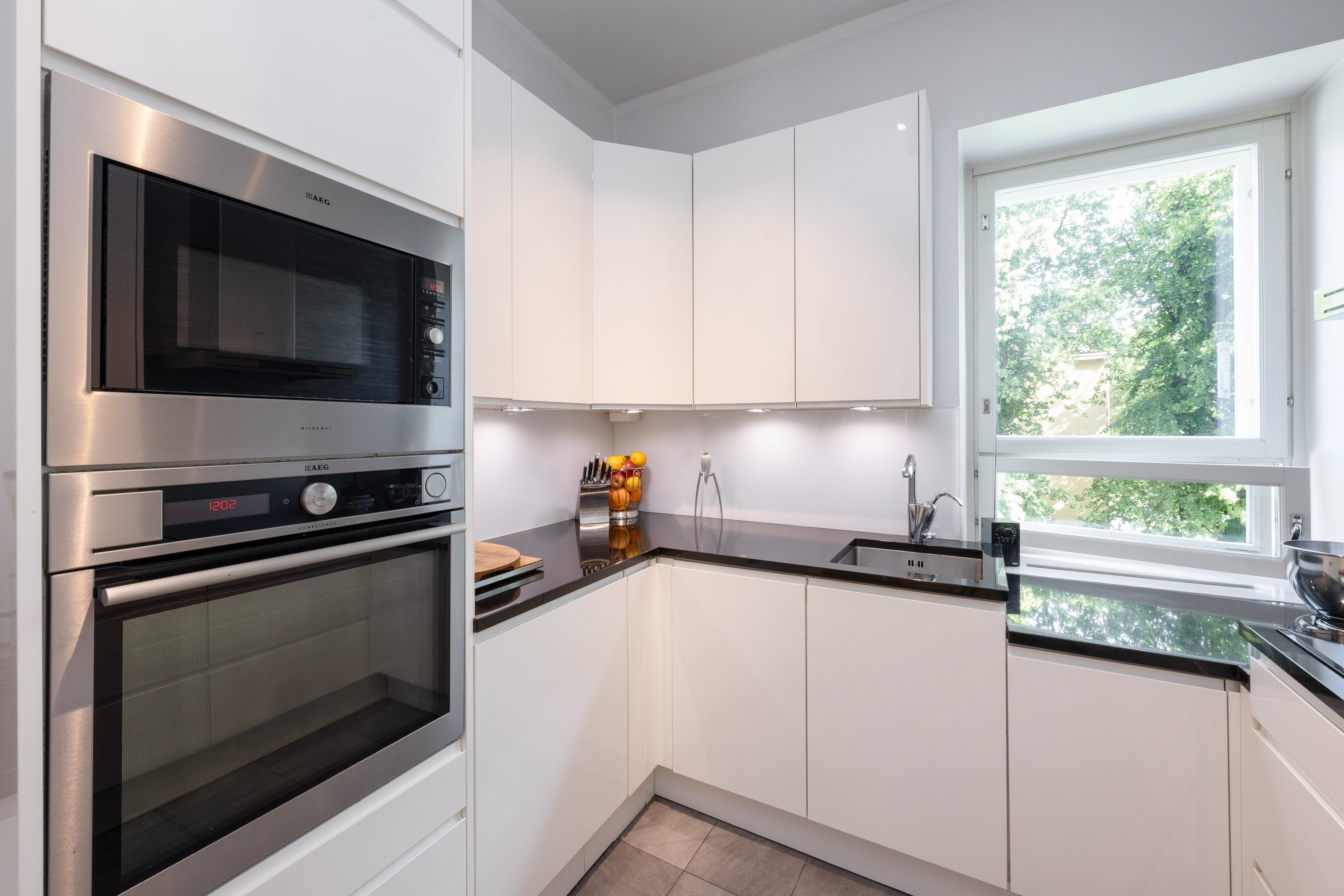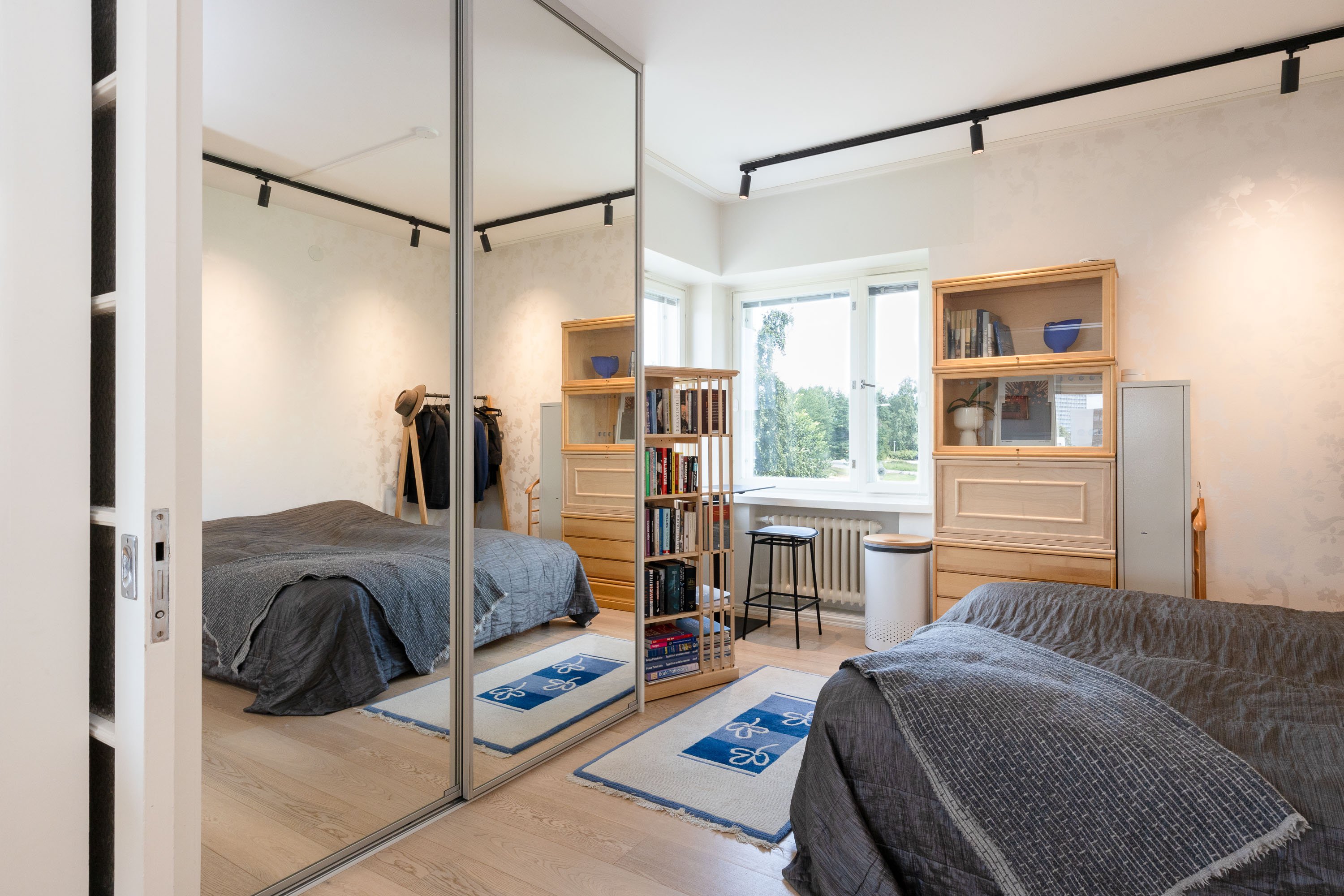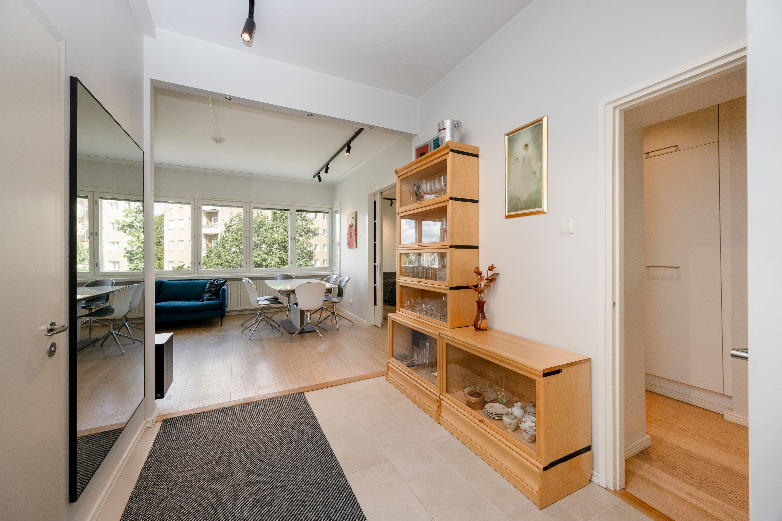 2021 ja kylpyhuone on uusittu v. 2023. Useissa huoneissa on näkymät kahteen suuntaan ja olohuoneessa peräti kolmeen. Ikkunanaapureita ei käytännössä ole, ympäristö on hyvin vehreä ja Keskuspuisto on aivan vieressä. Keittiössä on kivitasot ja laattalattia, jossa on sähköinen lattialämmitys, kuten on eteisen laattalattiassakin. Huoneet ovat myös reilun kokoisia. Huoneistolla on kahdet osakekirjat, jos haluaa erottaa yksiön erilliseksi asunnoksi.