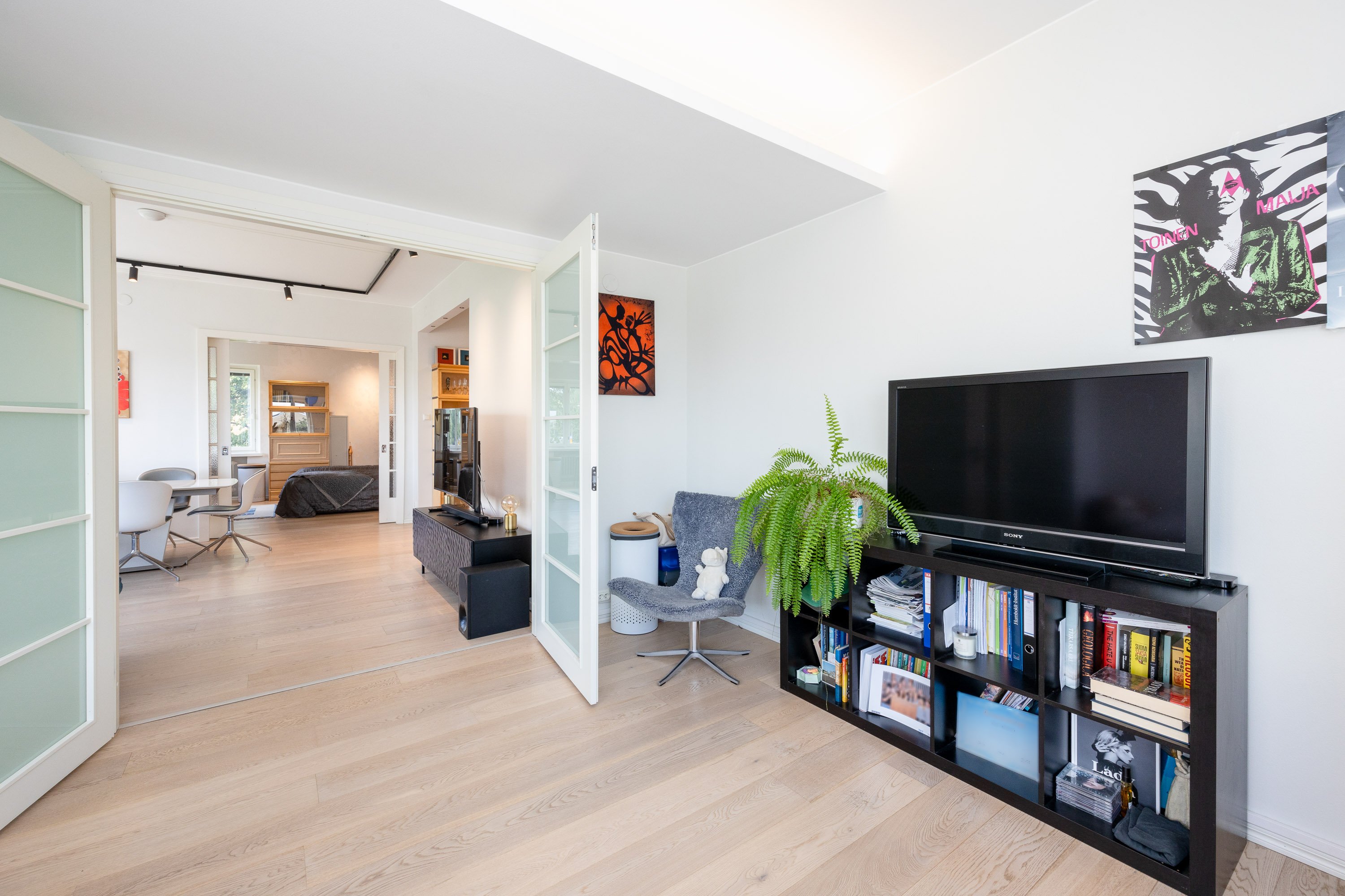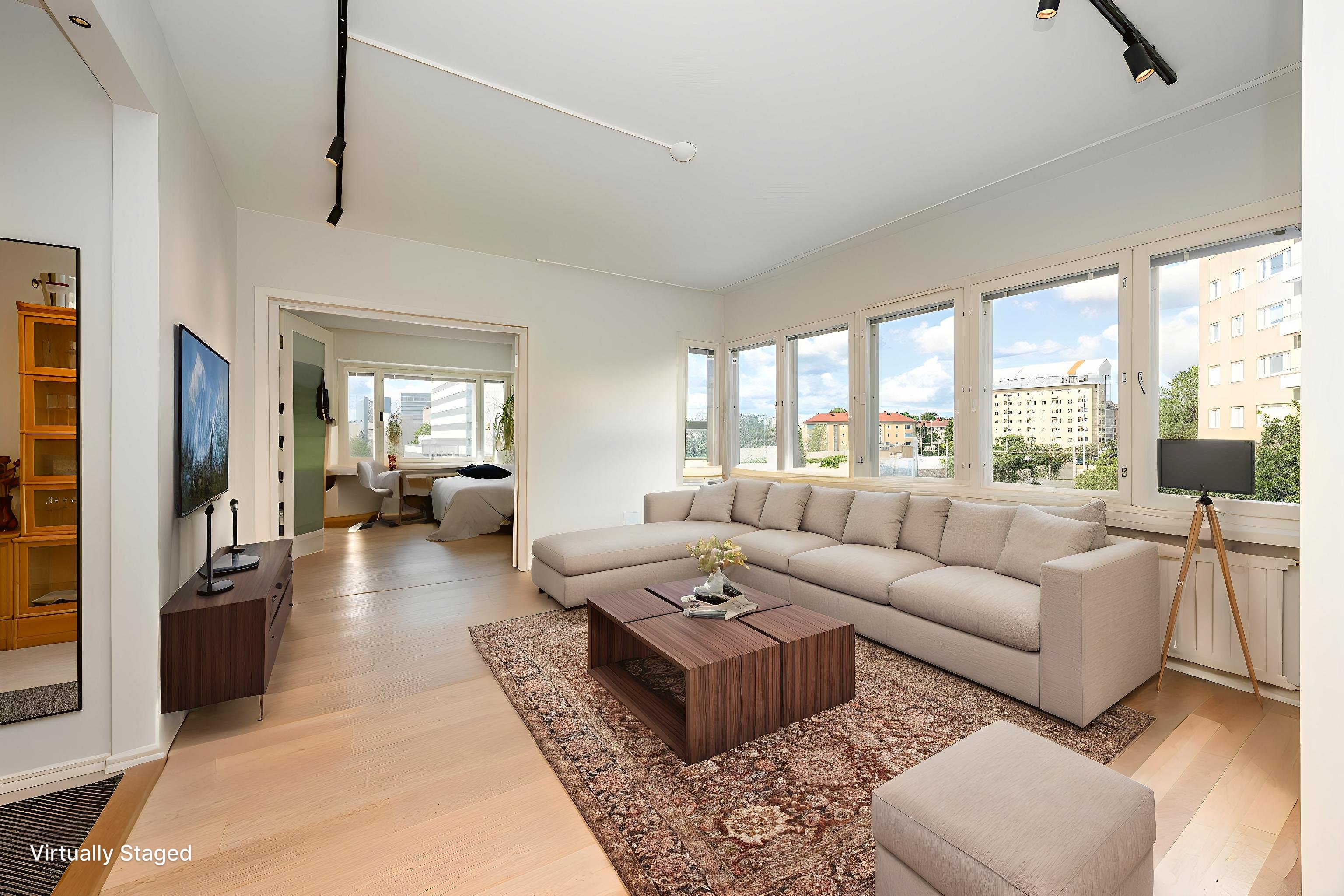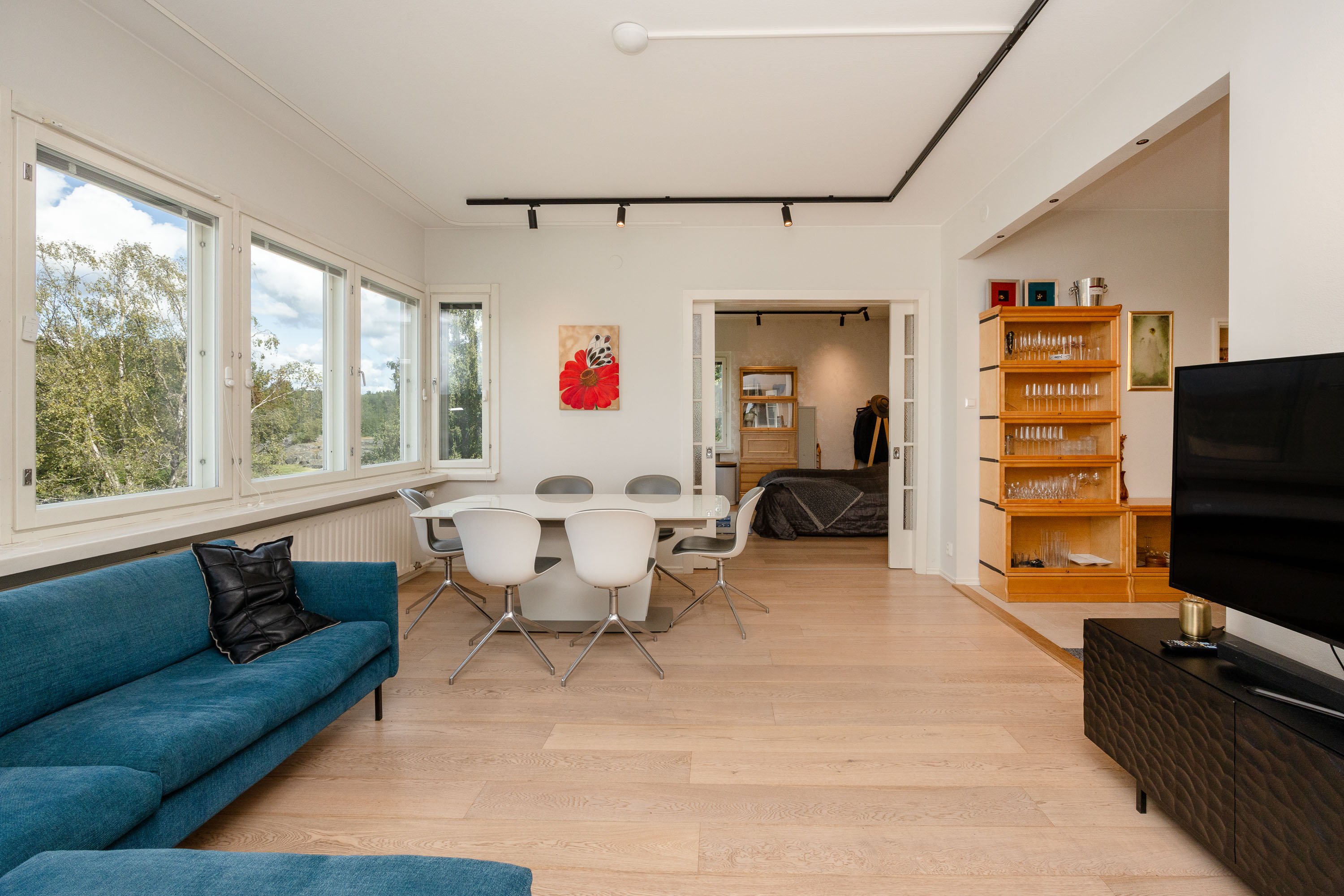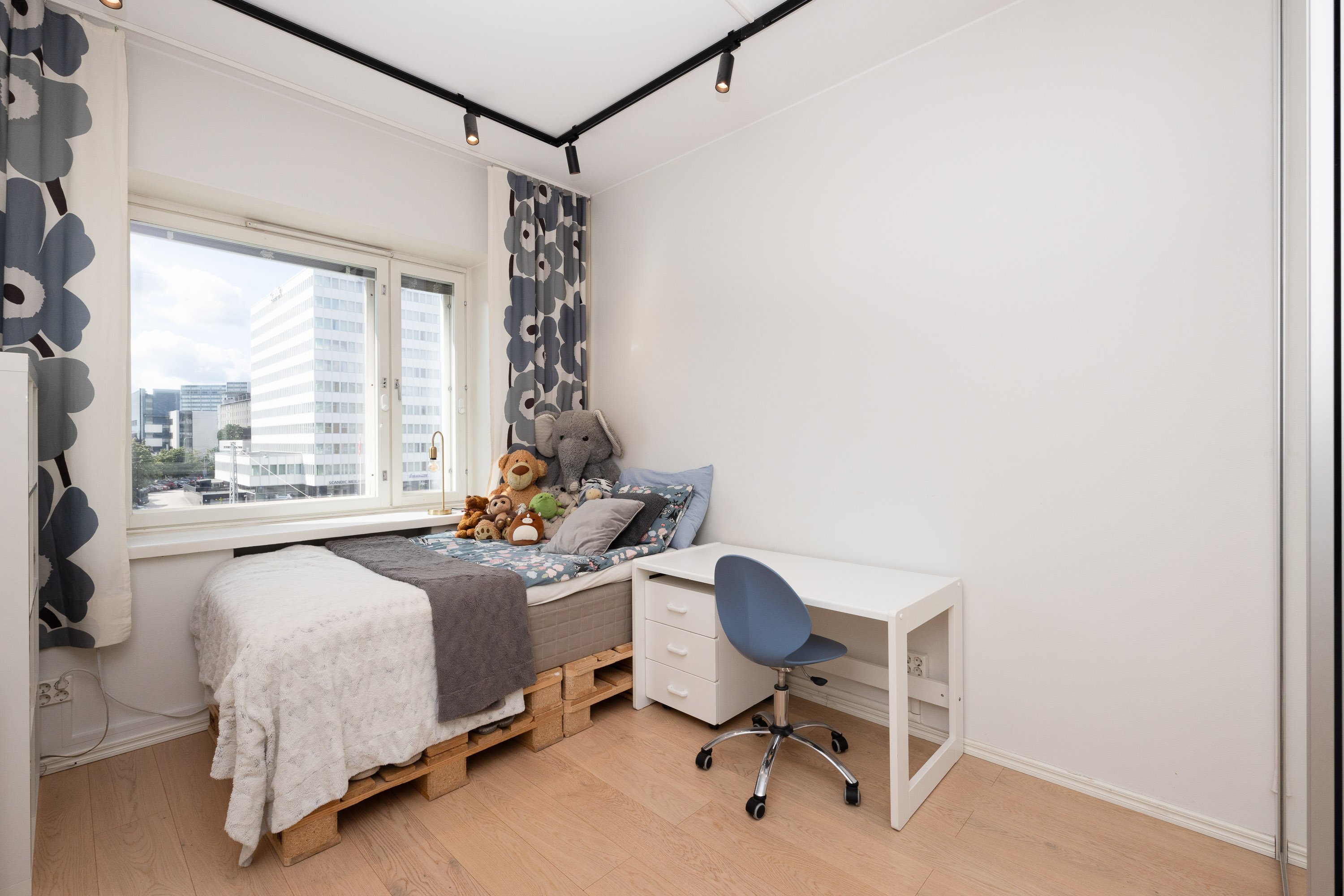 2021 ja kylpyhuone on uusittu v. 2023. Useissa huoneissa on näkymät kahteen suuntaan ja olohuoneessa peräti kolmeen. Ikkunanaapureita ei käytännössä ole, ympäristö on hyvin vehreä ja Keskuspuisto on aivan vieressä. Keittiössä on kivitasot ja laattalattia, jossa on sähköinen lattialämmitys, kuten on eteisen laattalattiassakin. Huoneet ovat myös reilun kokoisia. Huoneistolla on kahdet osakekirjat, jos haluaa erottaa yksiön erilliseksi asunnoksi.