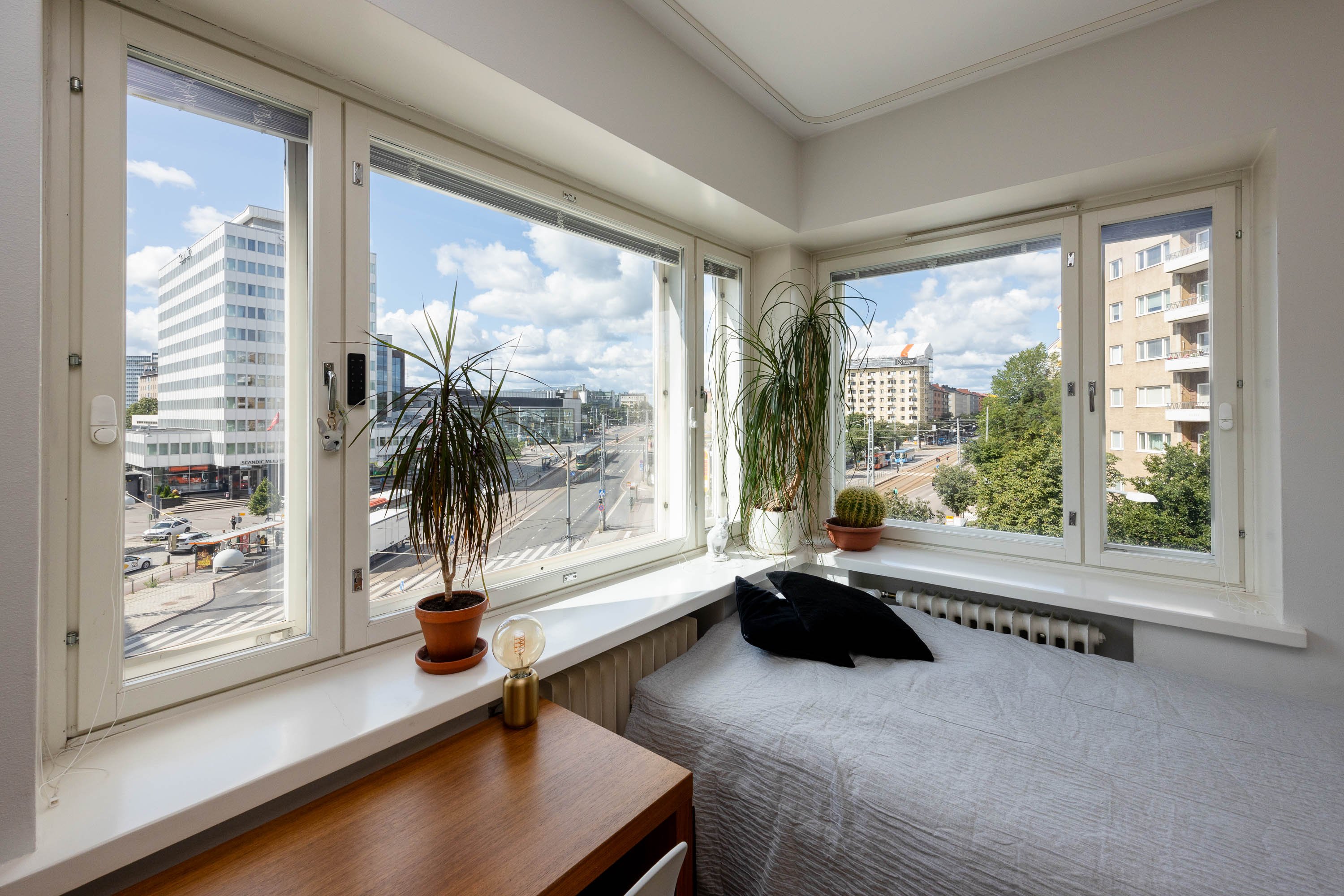 Mannerheimintien äänet eivät asuntoon kuulu. Läheltä löydät monipuoliset palvelut ja lähikauppakin on kadun toisella puolella. Ulkoilumaastot ovat "takapihalla", josta alkaa mm. Keskuspuisto. Autolla olet valtaväylillä nopeasti ja julkiset yhteydet ovat erinomaiset.