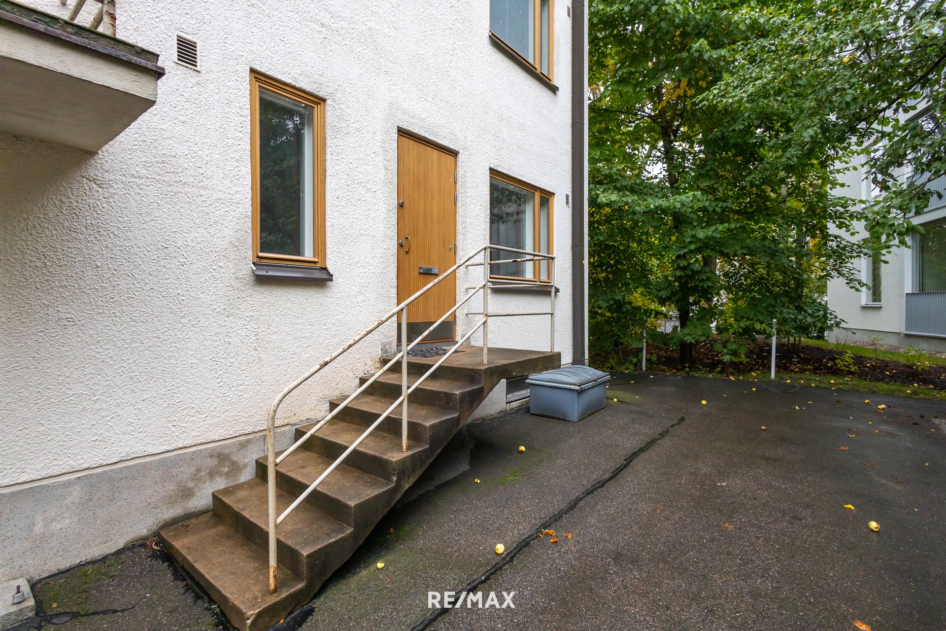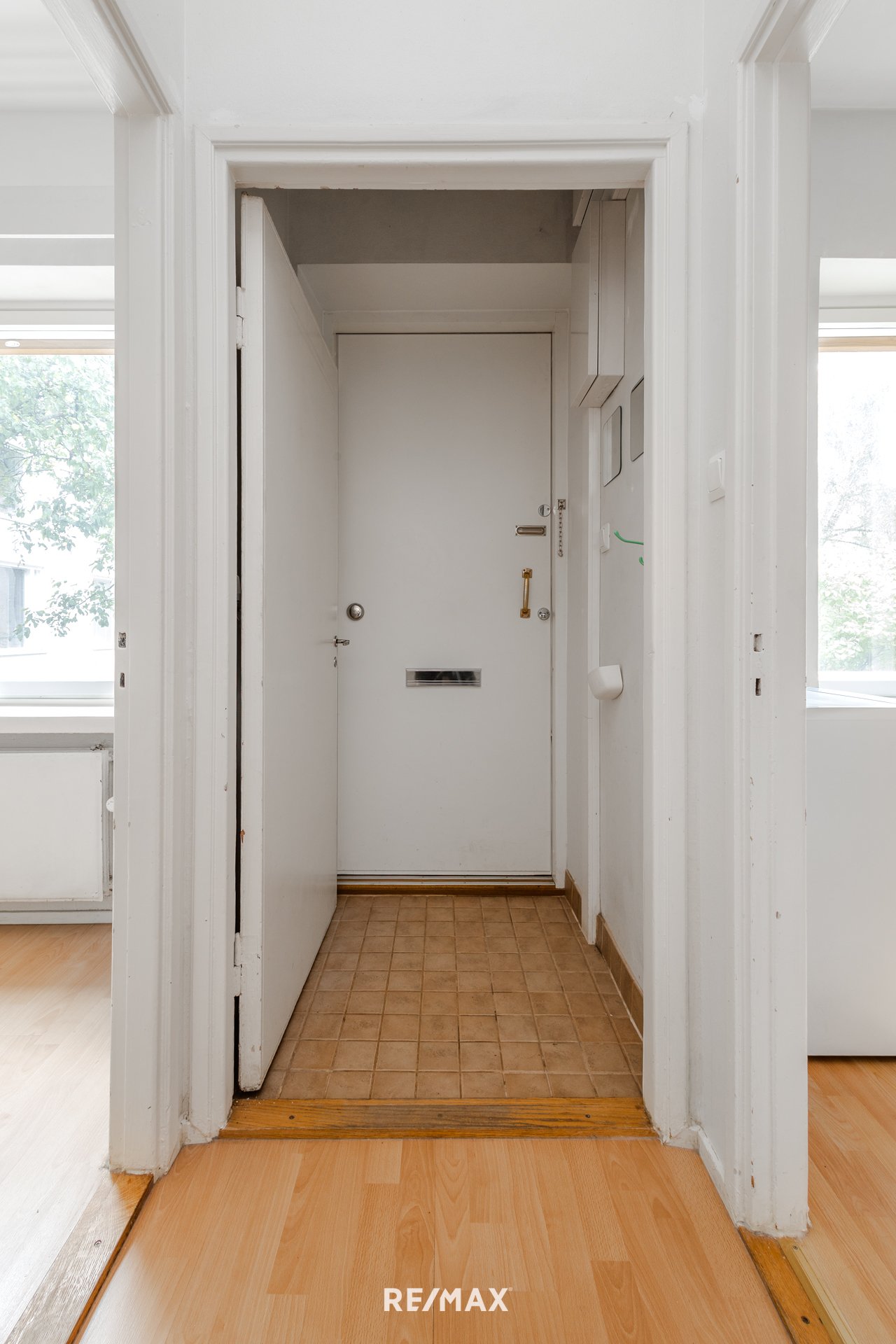 Tämä viehättävä kaksio sijaitsee arvostetussa Töölössä, Linnankoskenkadulla. Huoneisto on ensimmäisessä kerroksessa, mutta ei aivan maantasalla ja sinne on kulku oman sisäänkäynnin kautta.