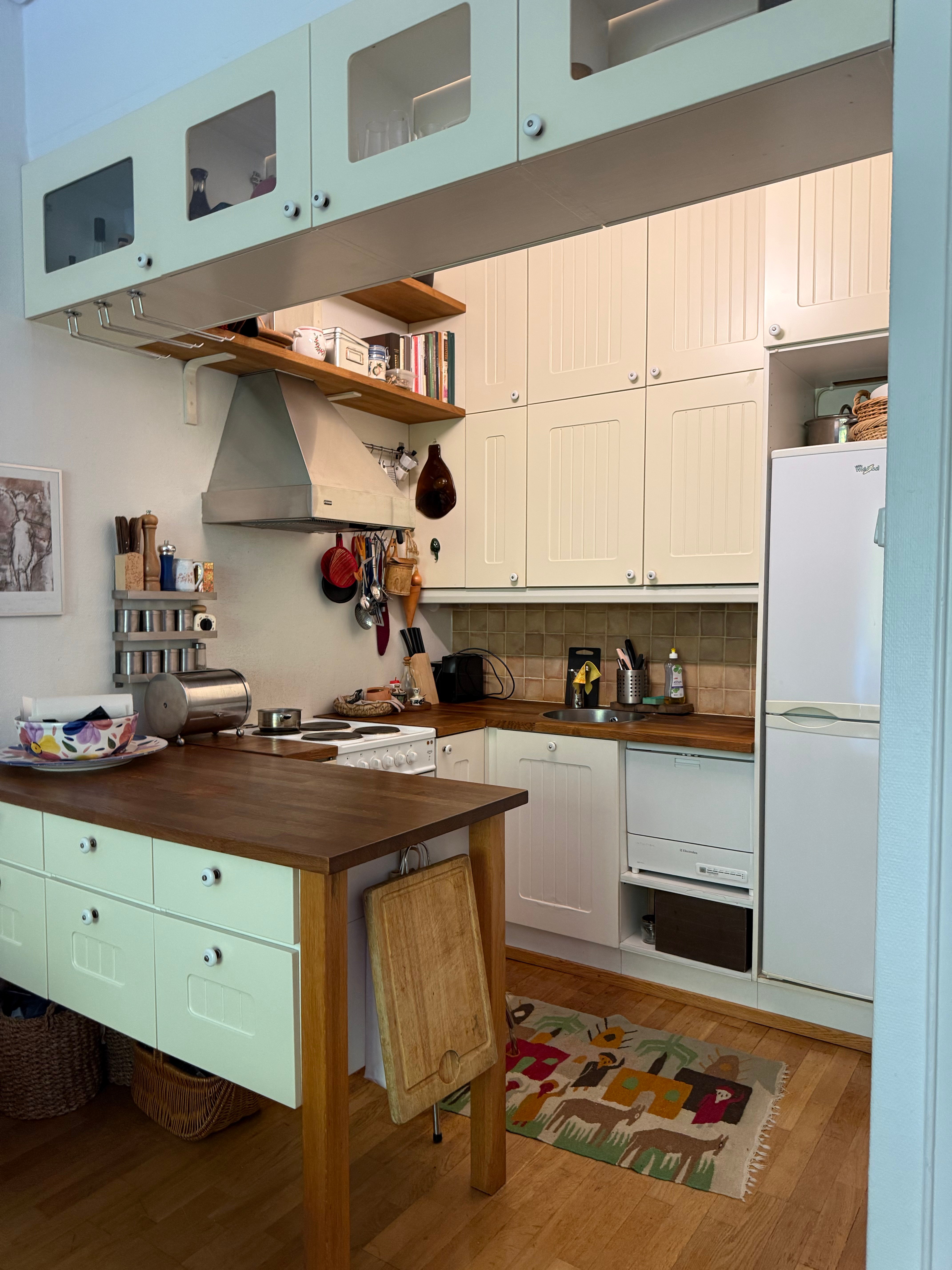 Keittiössä on runsaasti säilytys- ja työskentelytilaa. Kylpyhuoneessa on pesukoneliitäntä ja koko asunnossa on kauniit parkettilattiat. Talossa on hissi ja asukkaiden käytössä ovat sekä kellari- että ullakkokomero.