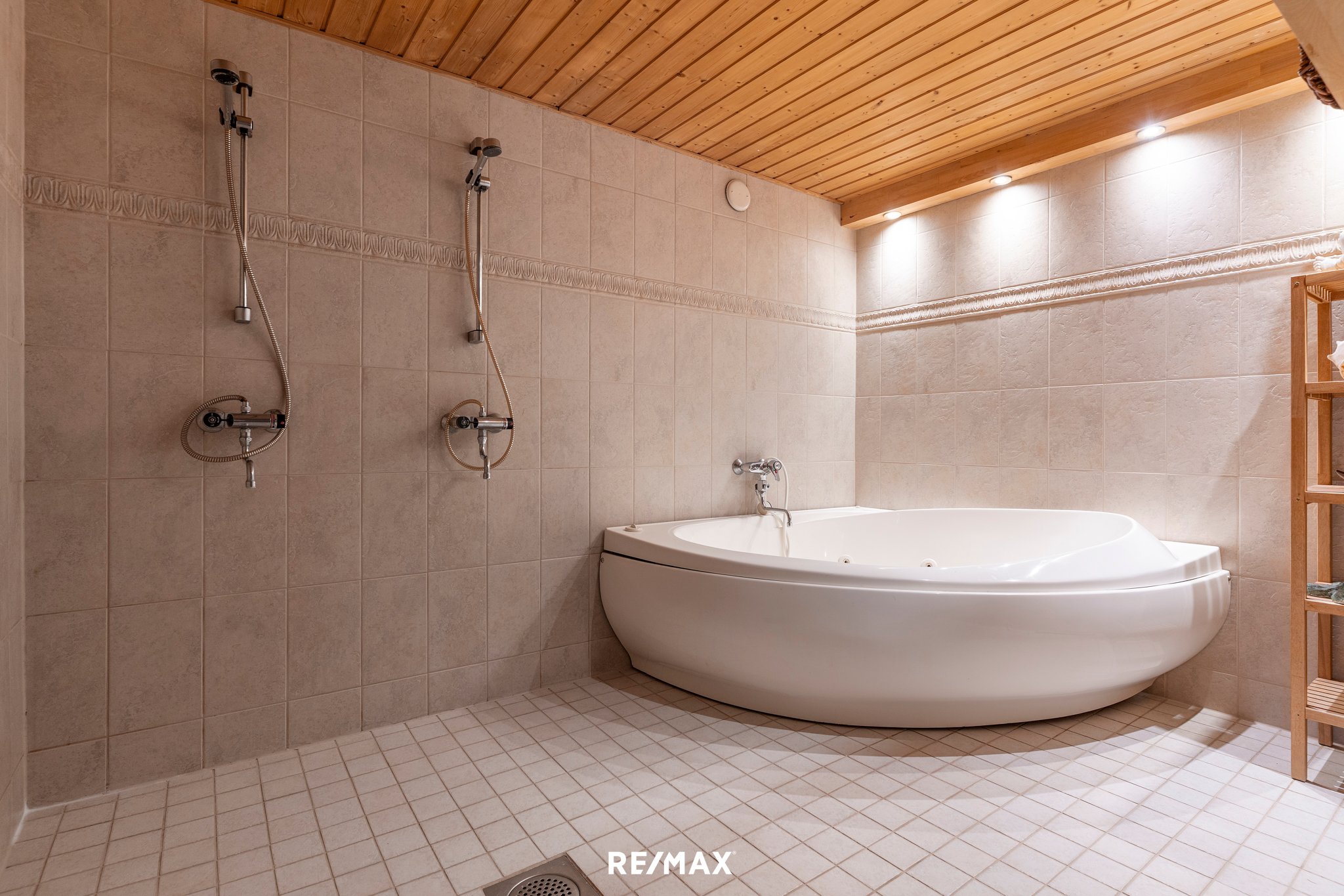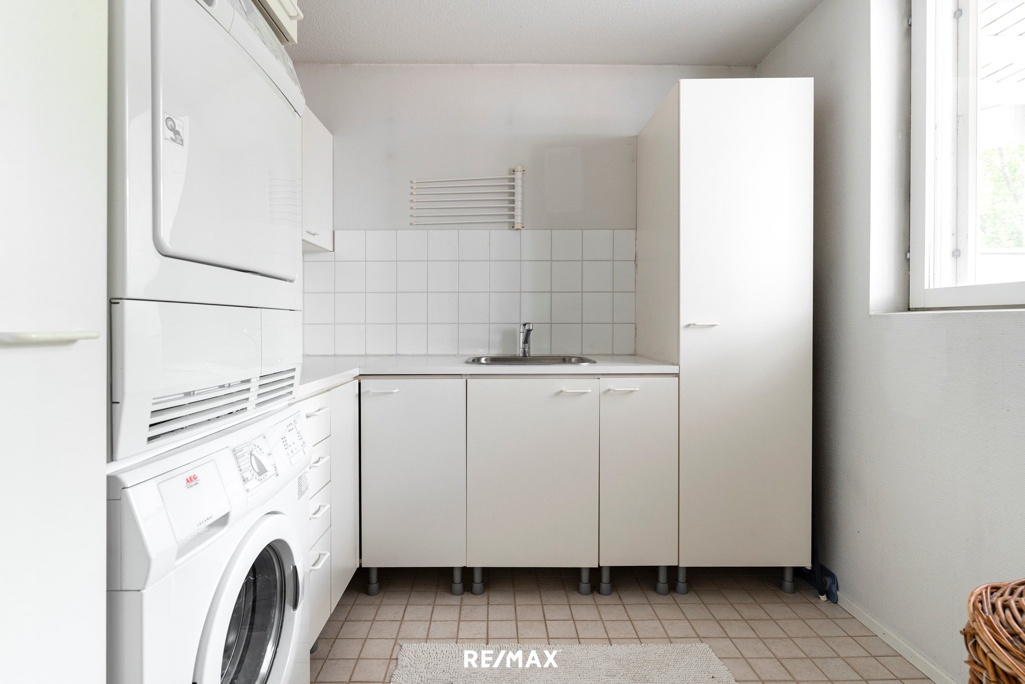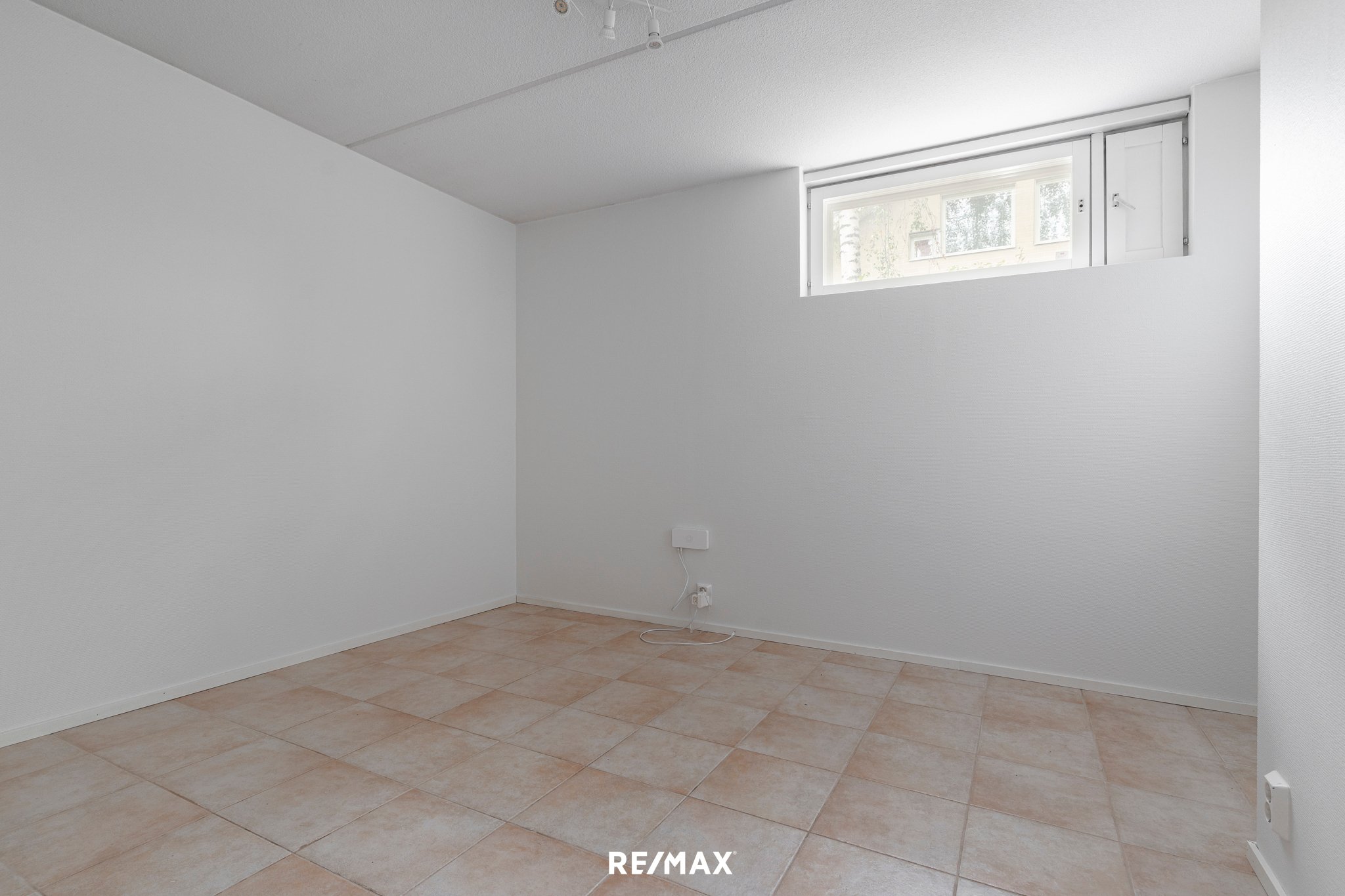 Alakerta tarjoaa monipuoliset puitteet asumiseen ja arjen sujuvuuteen. Vuonna 2005 laajasti remontoidusta tilasta löytyy iso takkahuone varaavalla takalla, kodinhoitohuone, useita varastoja, harrastetila, kylpyhuone poreammeella, tilava sauna ja erillinen wc. Alakerrasta on oma uloskäynti vilpolaan ja keskipihalle. Autokatos ja pihapaikka täydentävät tämän kodin mukavuudet.