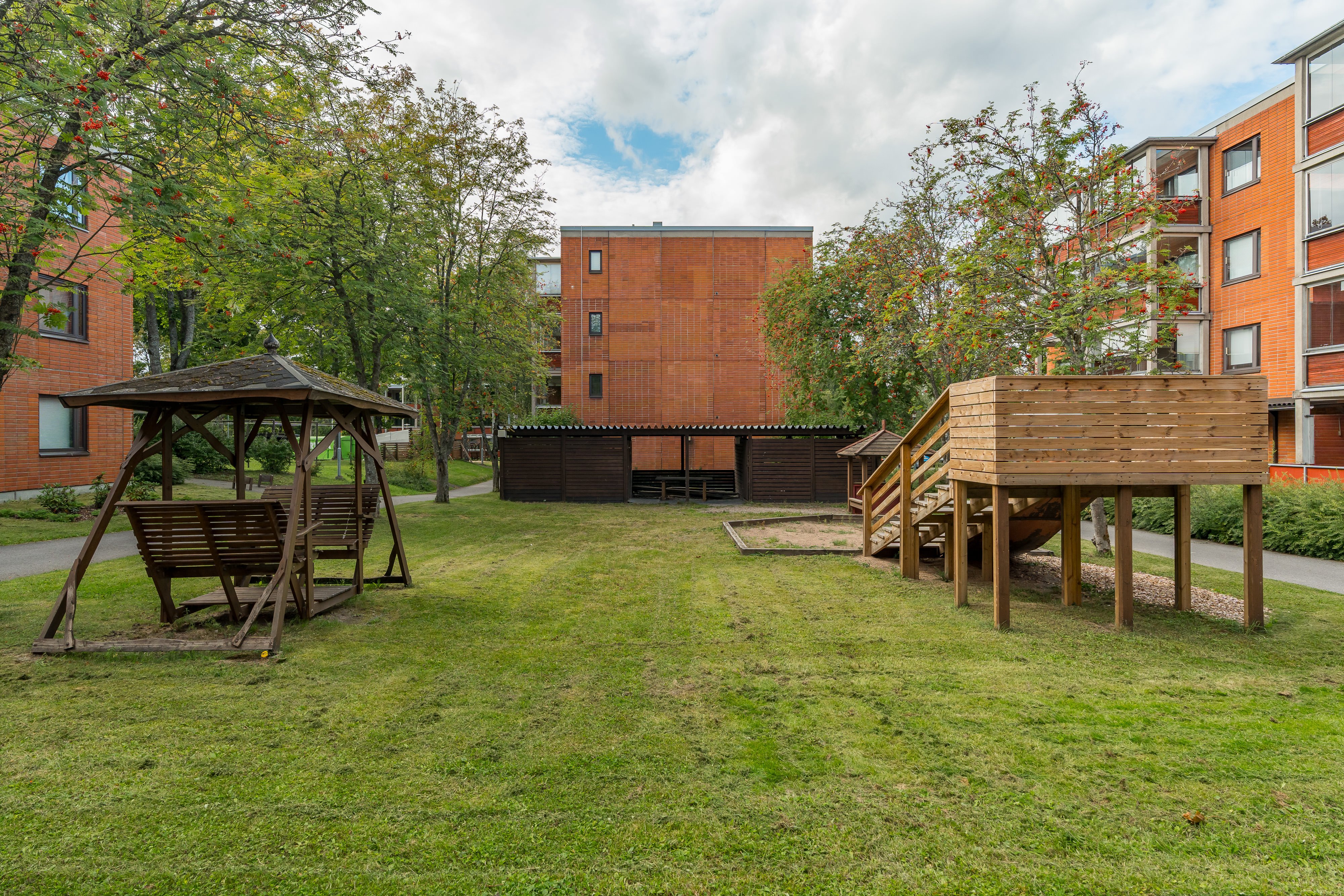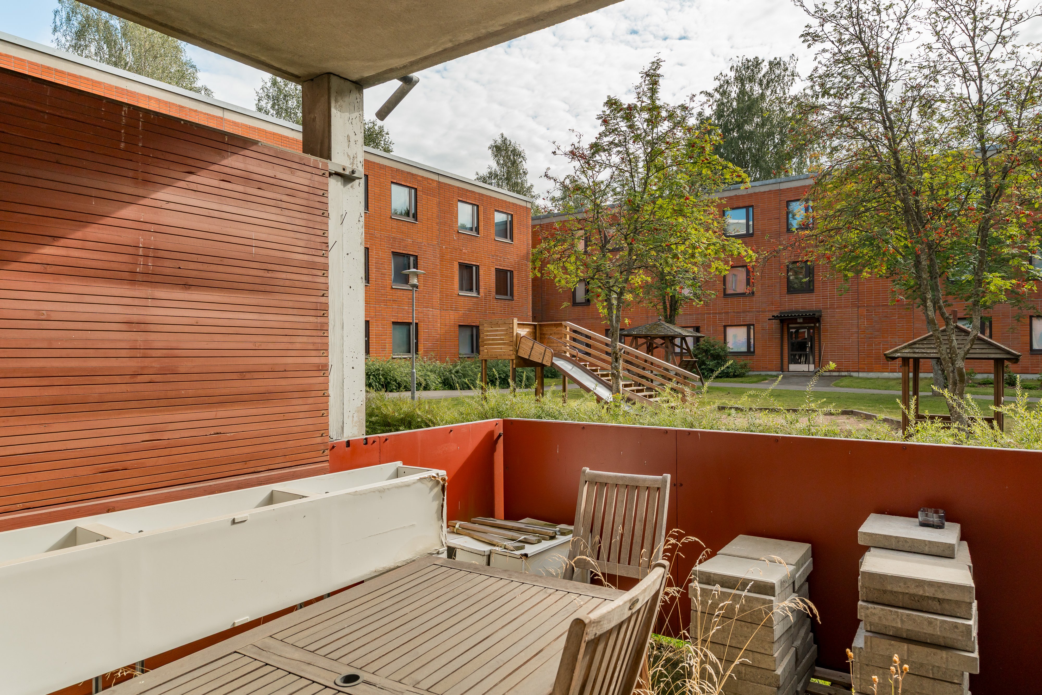 Tällä hetkellä vuokratun asunnon ominaisuuksiin kuuluu oma terassipiha sekä vastikään remontoitu saunallinen kylpyhuone. Kodikasta tunnelmaa lisää erillinen keittiö sekä puupaneelin käyttö katon ja makuuhuoneen seinän osalta.