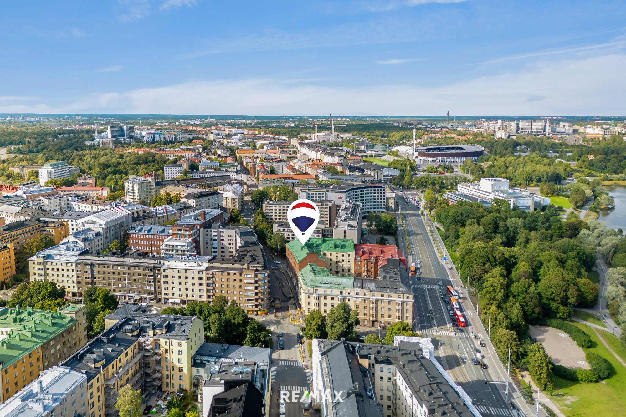 Sijainti on erinomainen! Töölön kattavat arjen palvelut, kahvilat, ravintolat ja kivijalkaliikkeet ovat lähellä. Finlandia-talo sekä Ooppera ja Töölönlahden tarjoamat upeat ulkoilualueet ovat vieressä. Bussi- ja raitiovaunupysäkit sijaitsevat korttelin takana ja keskustan rientoihin sekä juna-asemalle kävelee noin kymmenessä minuutissa.