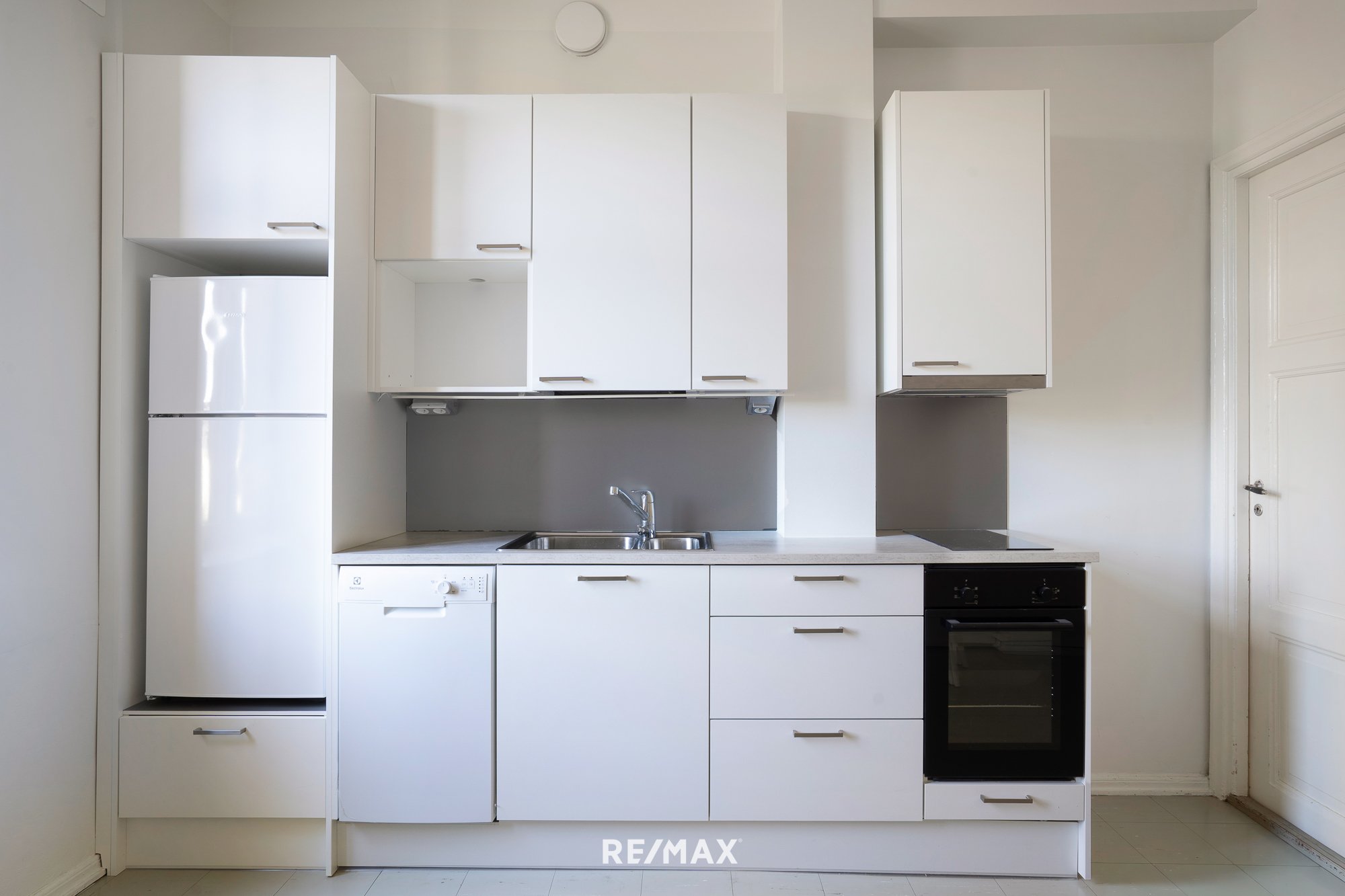 Hissitalon viidennessä kerroksessa sijaitseva koti pitää sisällään hyvän kokoisen olohuoneen ja tilavan makuuhuoneen. Erillisen keittiön kalusteet ja kodinkoneet on uusittu vastikään valmistuneen putkiremontin yhteydessä. Saneerauksessa uusittiin myös kylpyhuone sekä erillinen wc. Kodissa on viihdytty pitkään ja muilta osin pinnat voivat kaivata jo päivitystä.