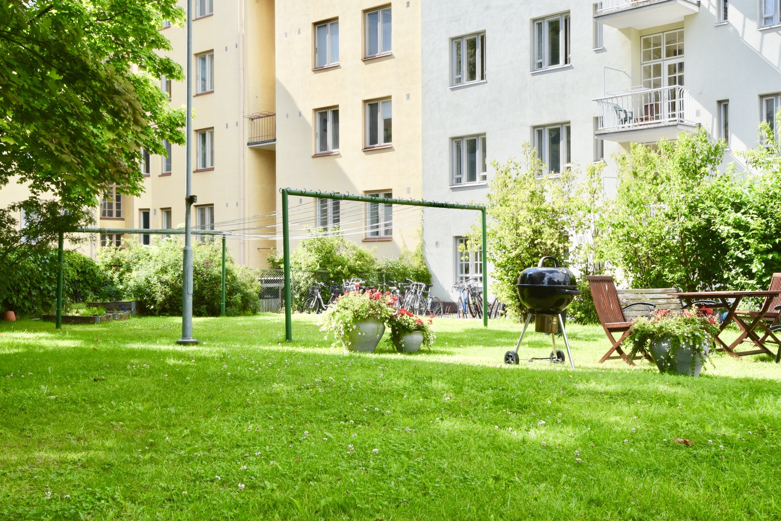 Hyvällä sijainnilla Töölössä, pienellä ja rauhallisella poikkikadulla. Kaikki palvelut kävelyetäisyyden päässä.
